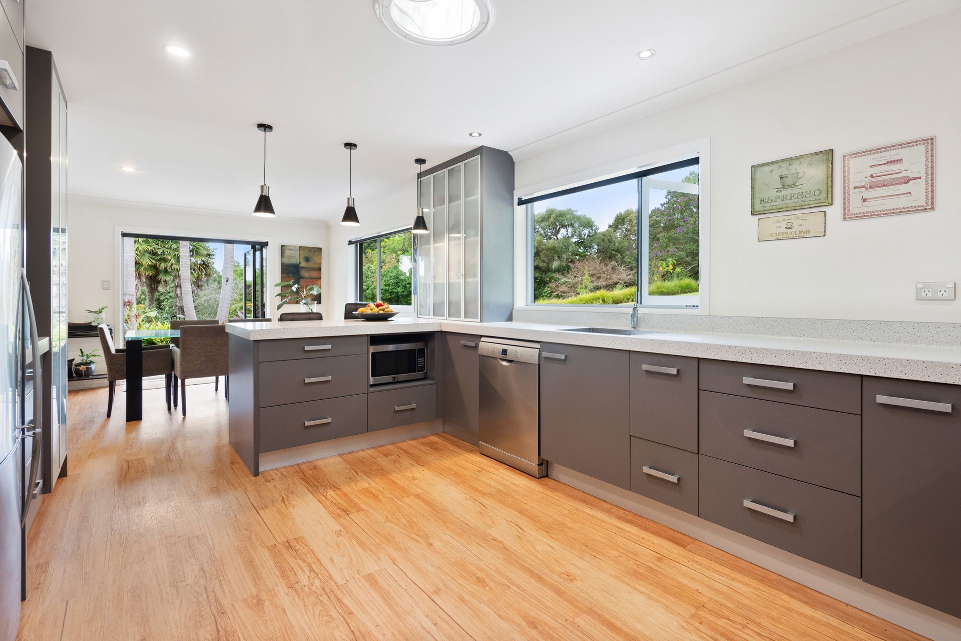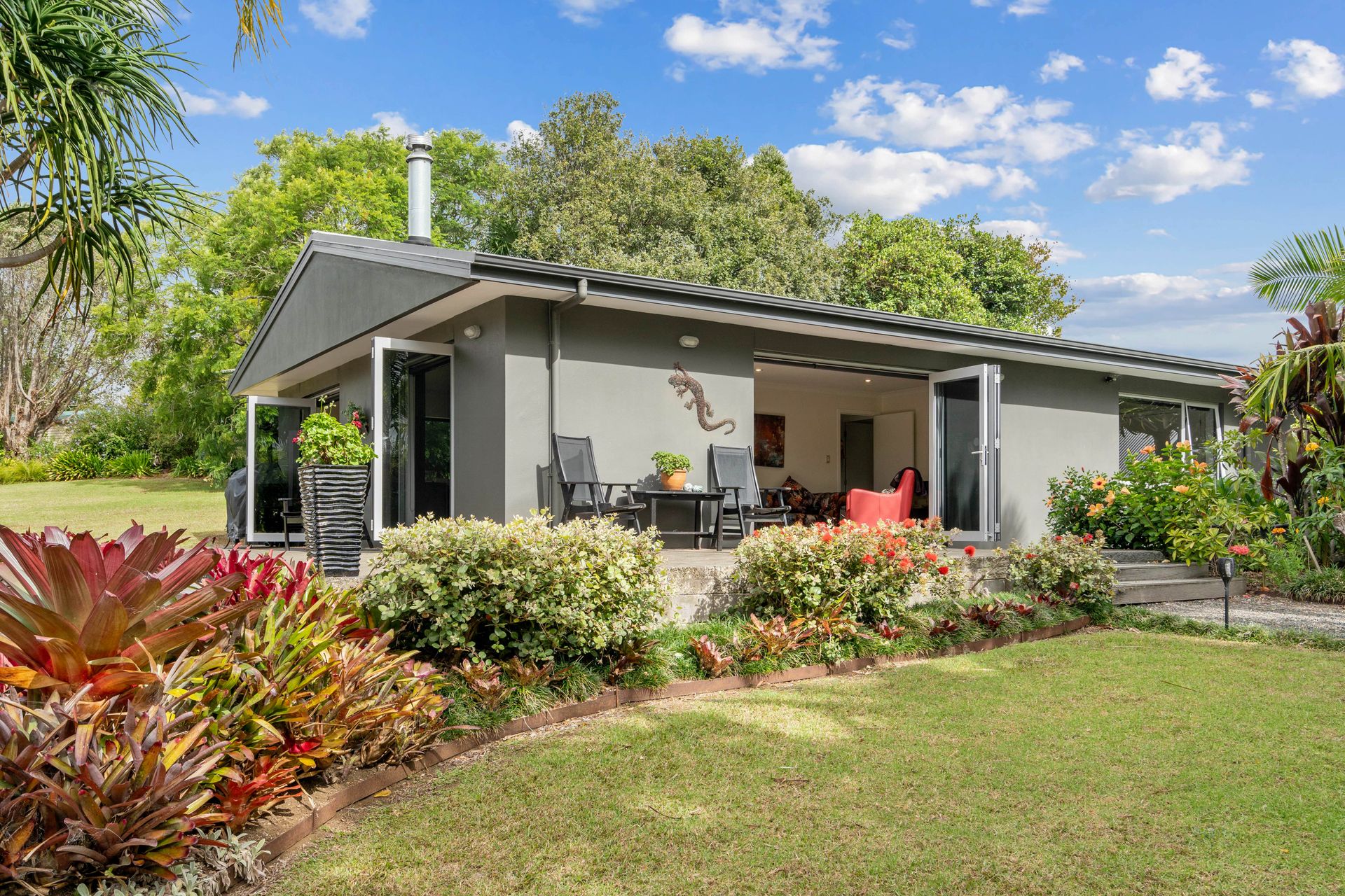 The home has been renovated and redecorated to create a modern, stylish, and very comfortable home. Gone is the older brick-look, replaced by a stylish dark plaster finish. The kitchen is a delight with a Smeg oven and an extra-wide Smeg cooktop! The open plan dining/living area is spacious with bifold doors opening out onto your private lawn and deck, creating great indoor-outdoor living.
