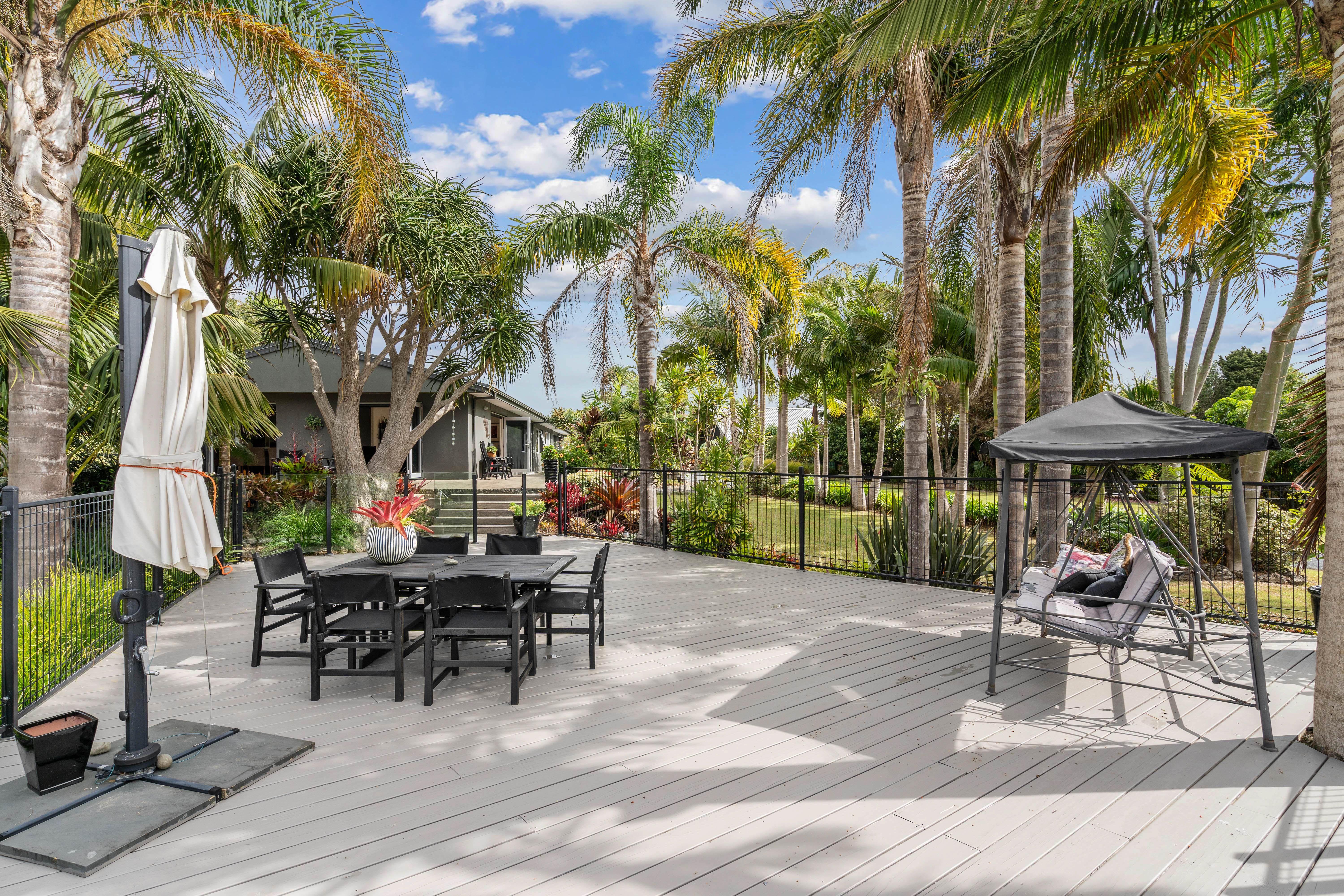 Outside, thoughtfully designed gardens, boundary plantings, and an easy-care lawn provide definition while still creating a sense of space. These are complimented by a huge, fenced, area of decking that captures the Bay of Islands sun. This area had previously enclosed a swimming pool and has appropriate fencing, so could be converted back to that purpose (subject to consent).