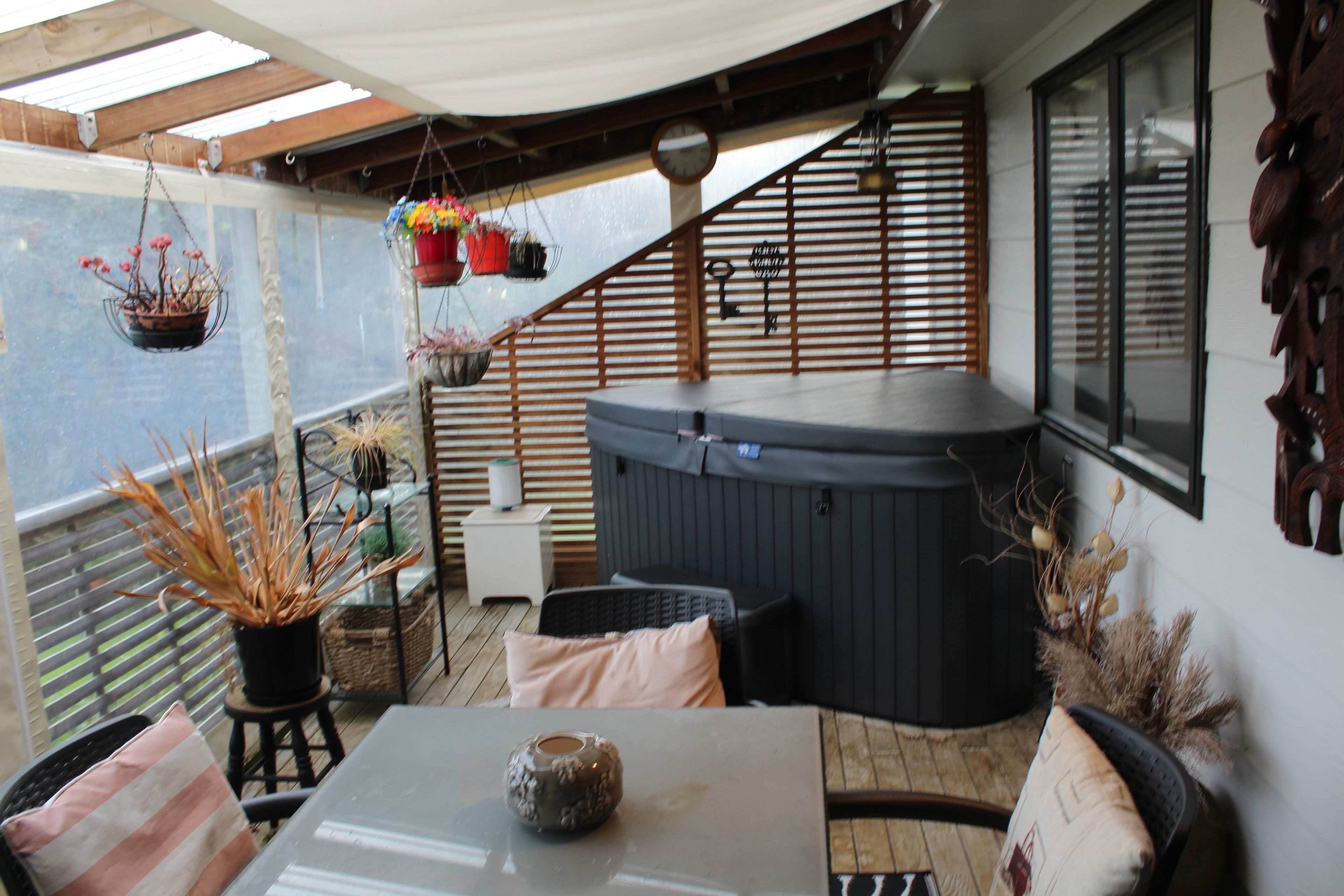 Split level living, a delightful spa room with a peaceful ambiance overlooking an equally serene space of neighboring lush rolling green pasture. 1/2 share in 1.066 ha.