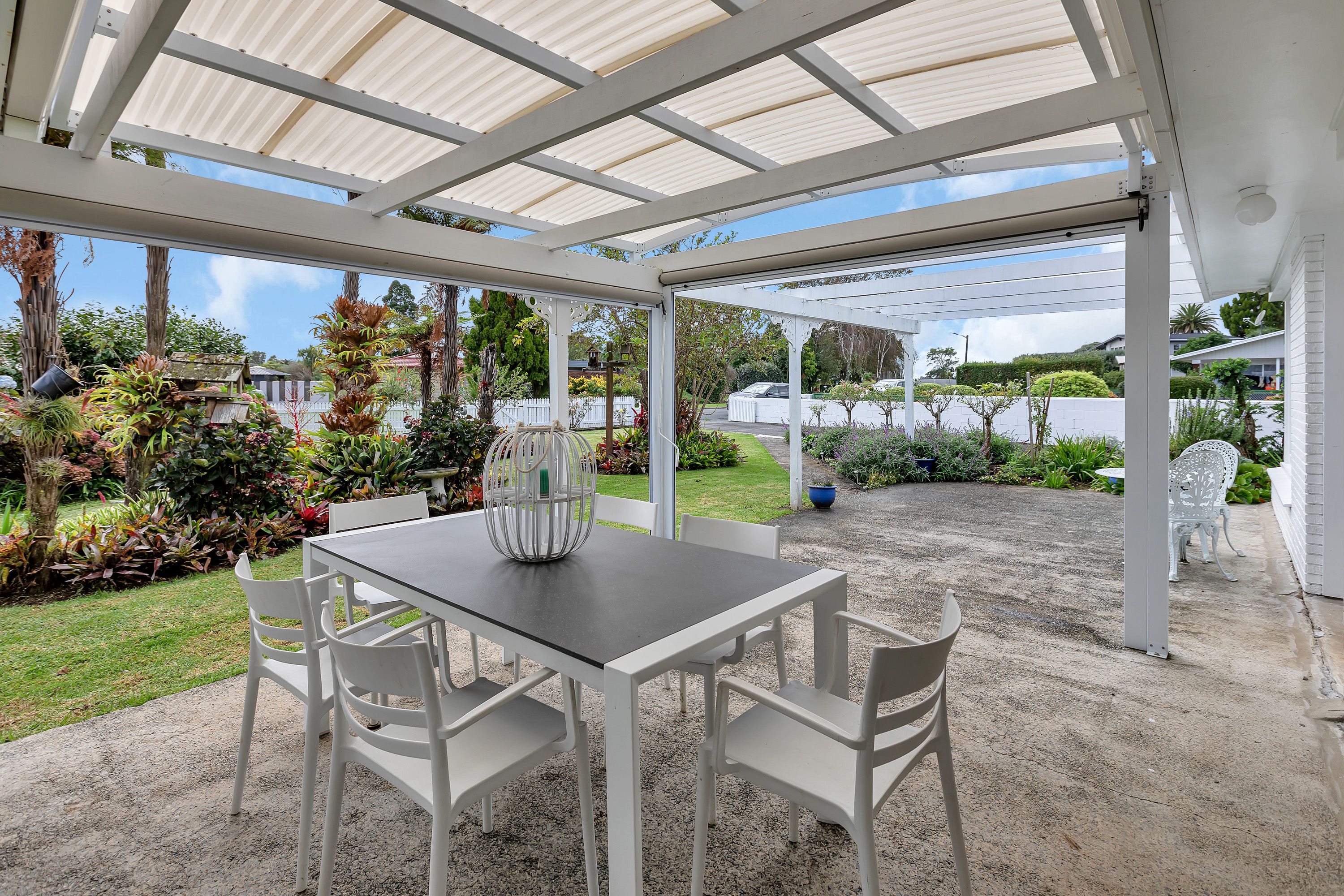 A covered carport offers convenient sheltered access from the car to indoors.