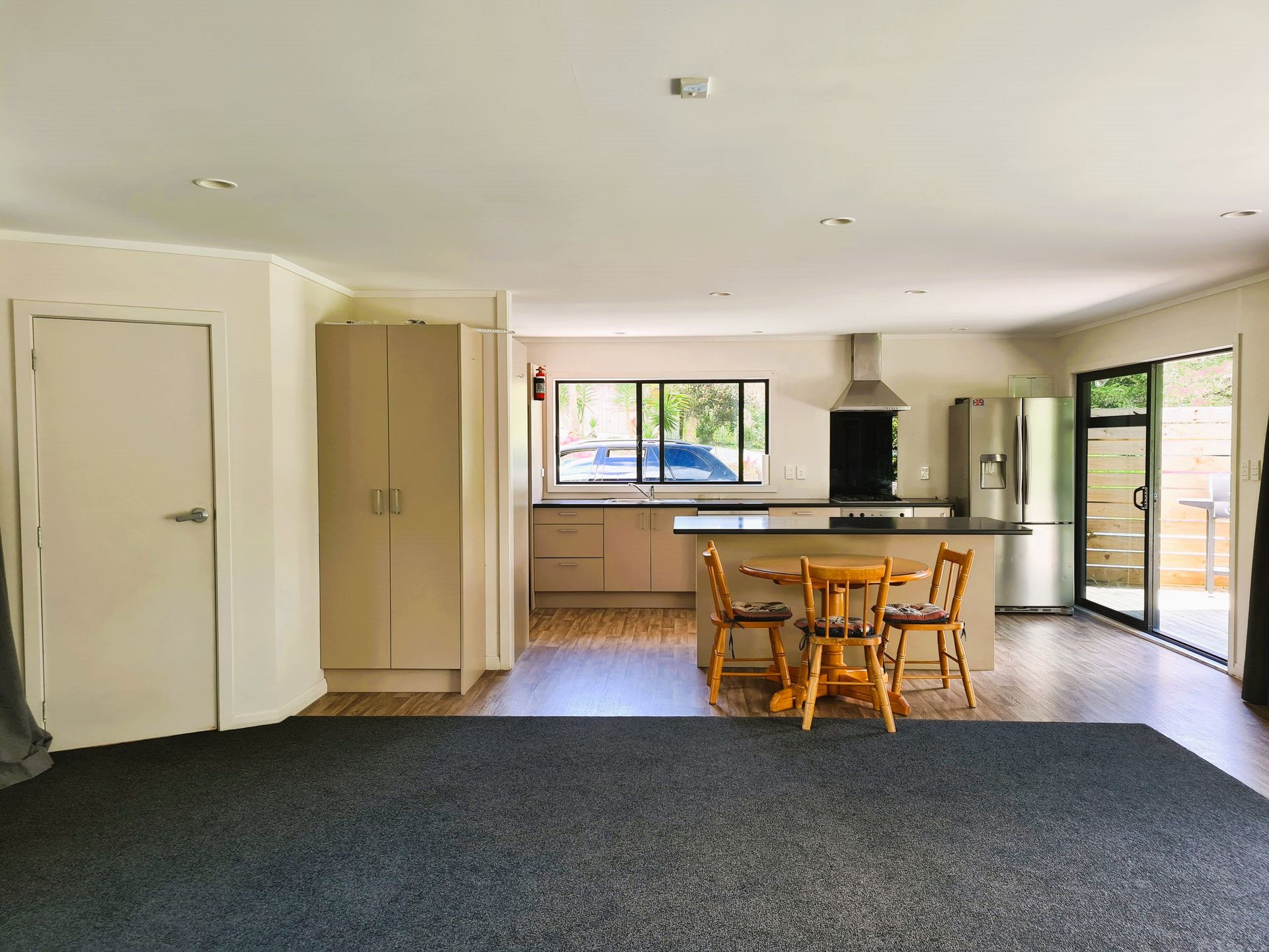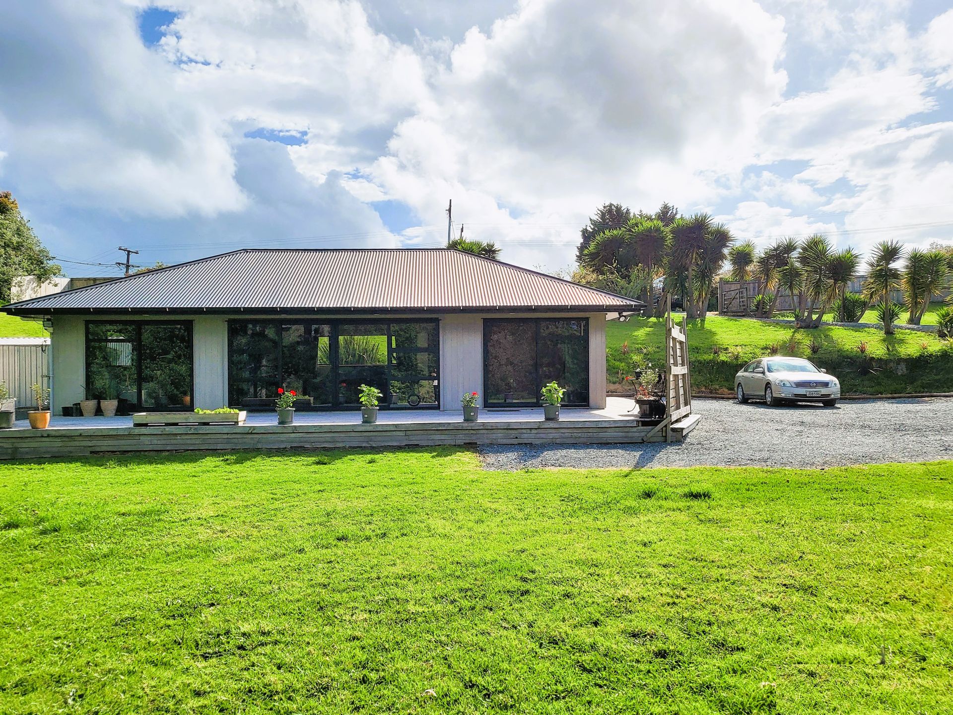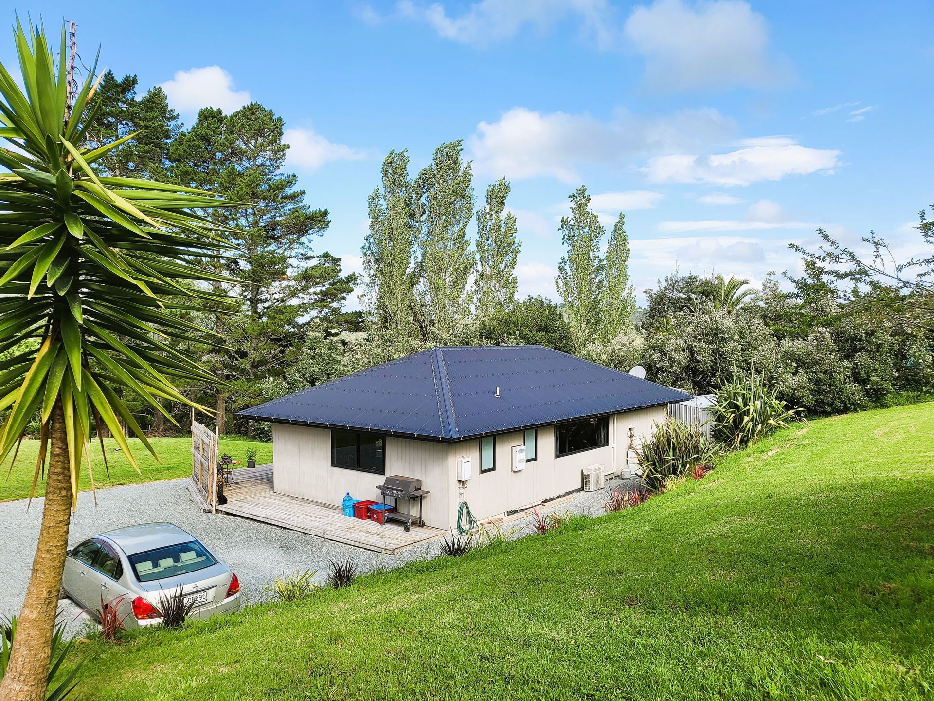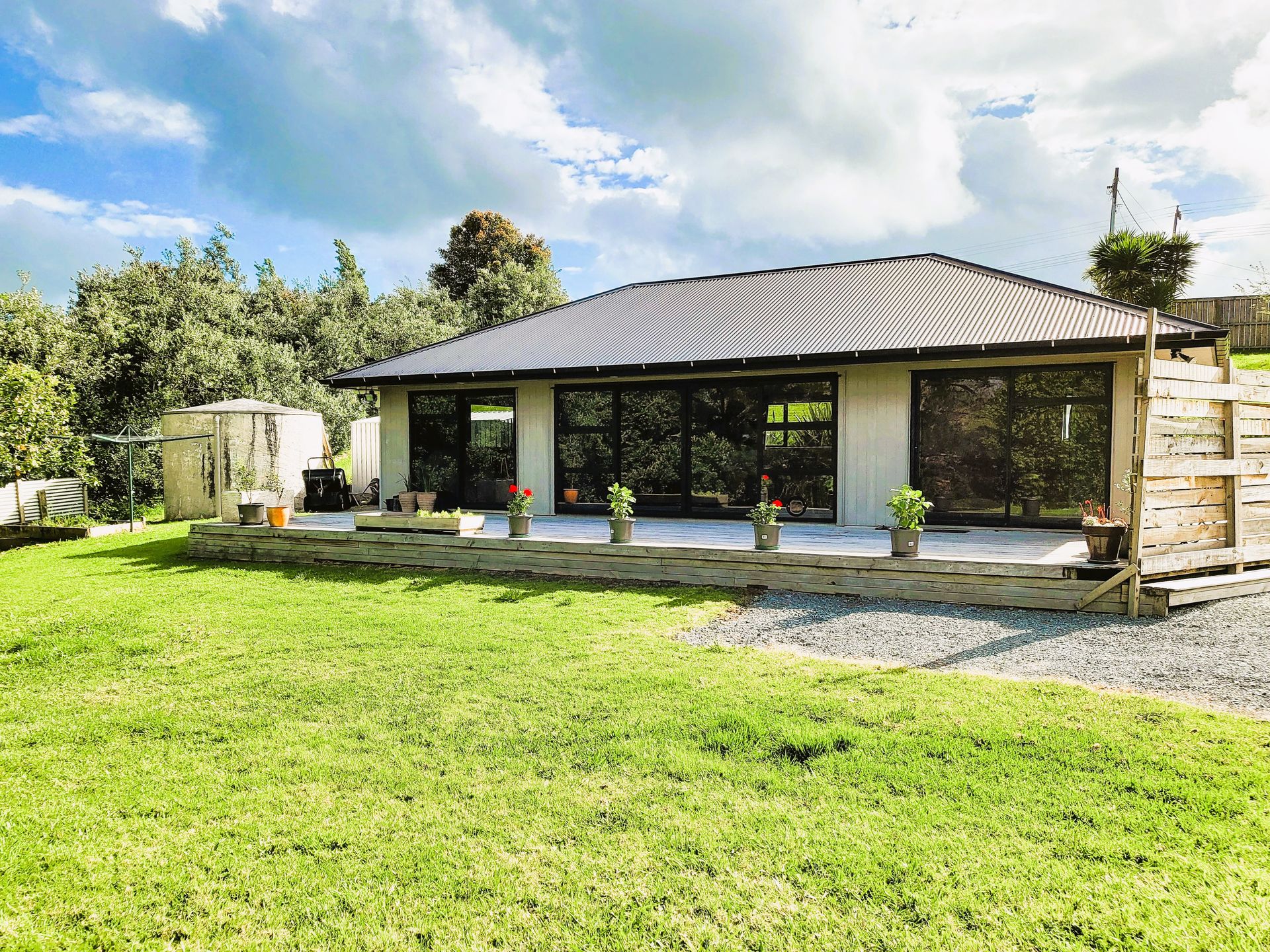 Here's a kickstart to something more. An attractive, warm and modern quarters with spacious open plan living. The layout is a little quirky though quite functional. One bedroom so far, there is space to extend for more rooms and improve the layout. Features stylish tinted double glazing and insulation supports heat pump warming. Gas cooking and hot water. A presentable, private and fenced 3311 sqm section. There is a sizeable flat area for a building of your choosing - maybe a big shed? or enjoy as is. A large garden shed for storage and water is via a concrete water tank.