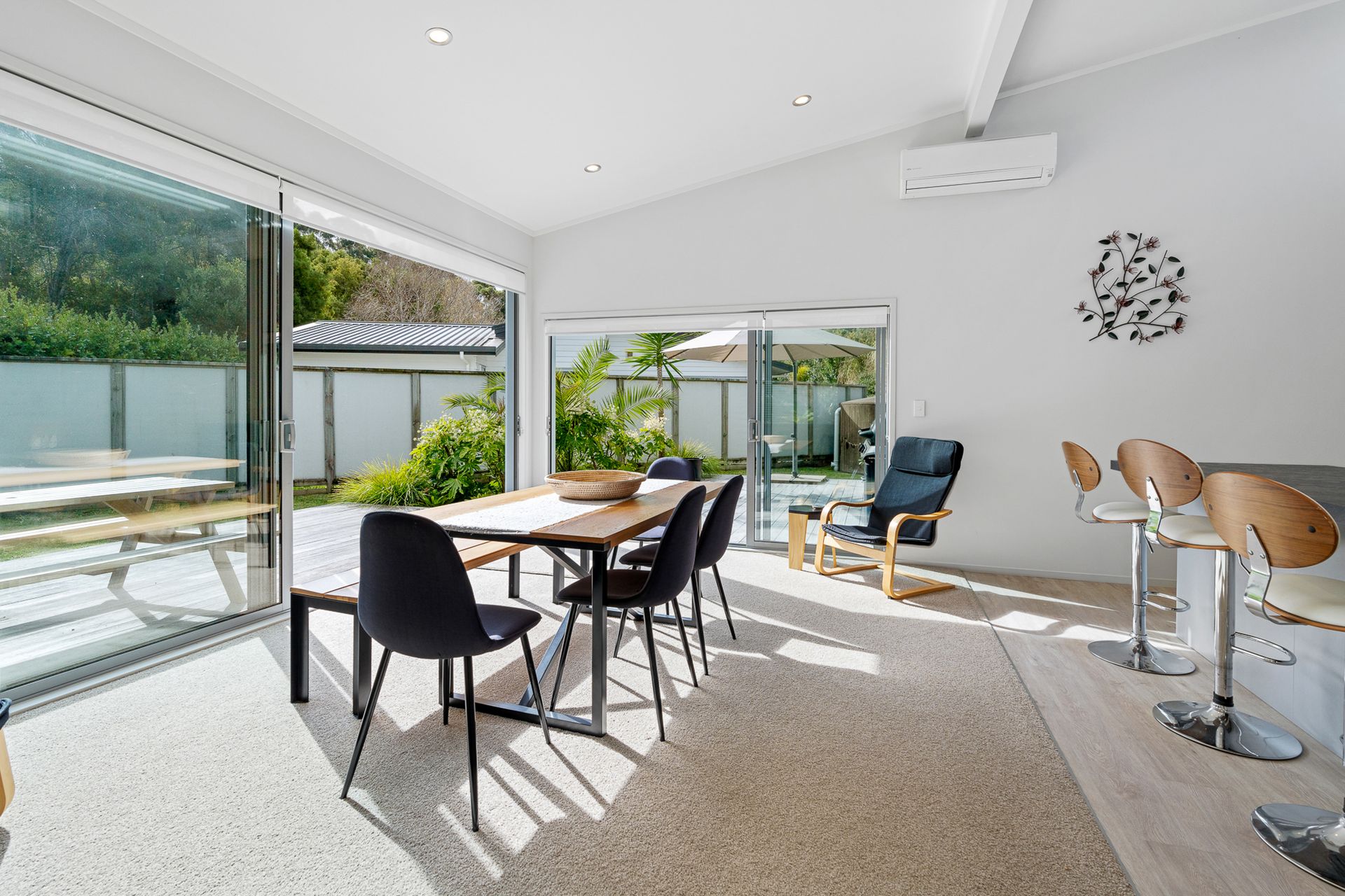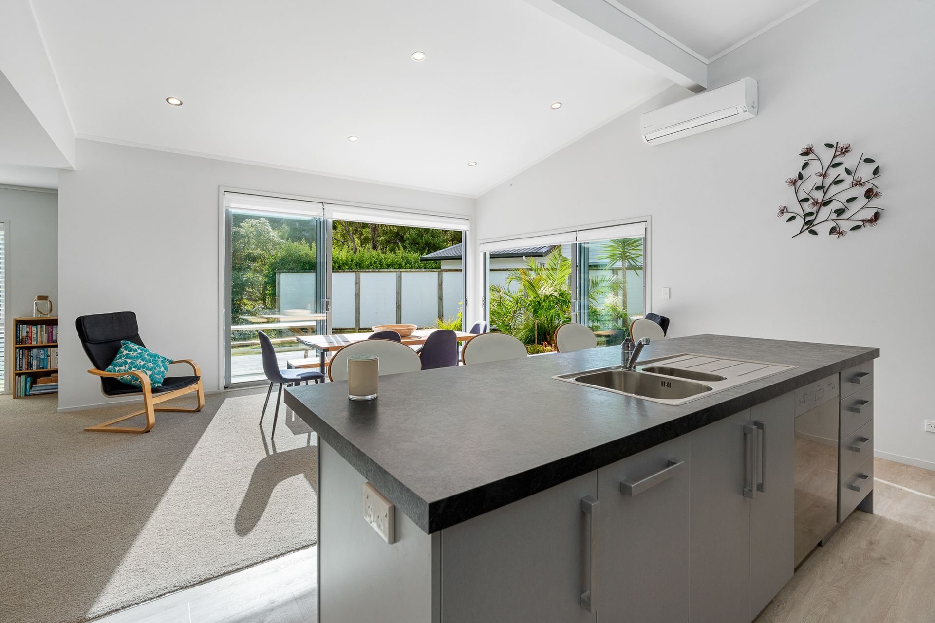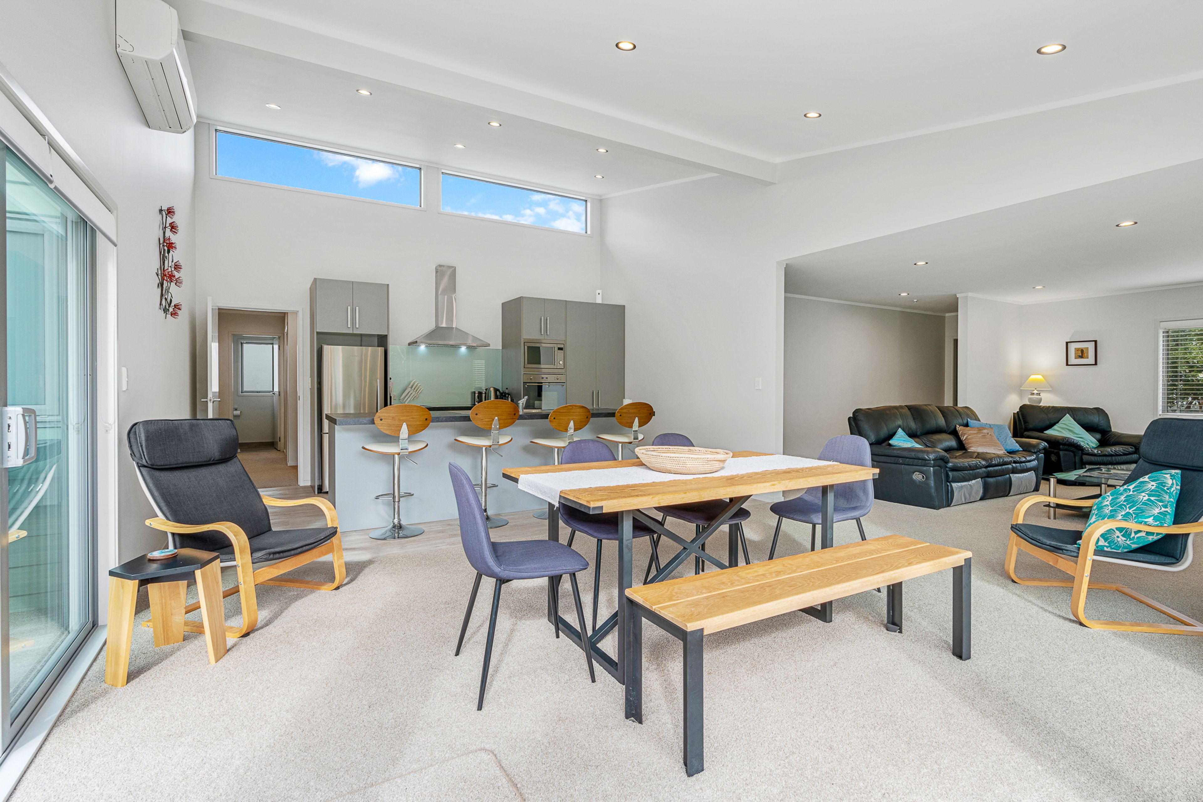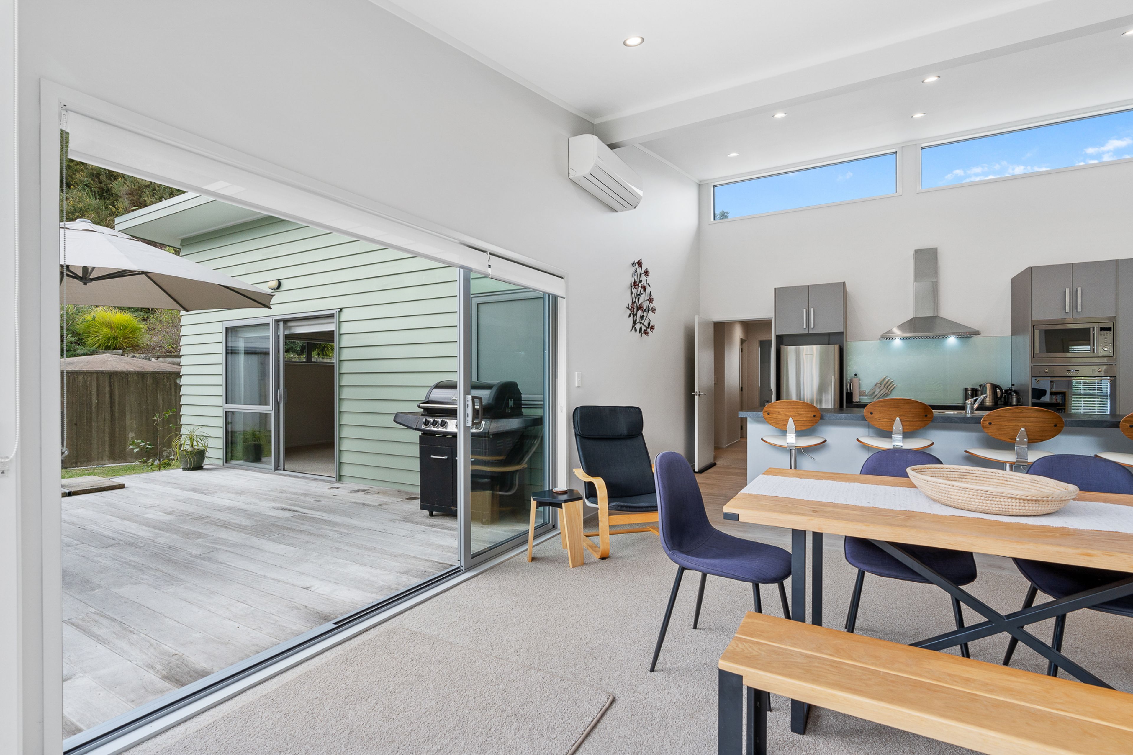 The spacious living and dining area is drenched in natural light, effortlessly flowing onto a north-facing deck-ideal for entertaining or simply unwinding while enjoying the gentle sounds of native birds.