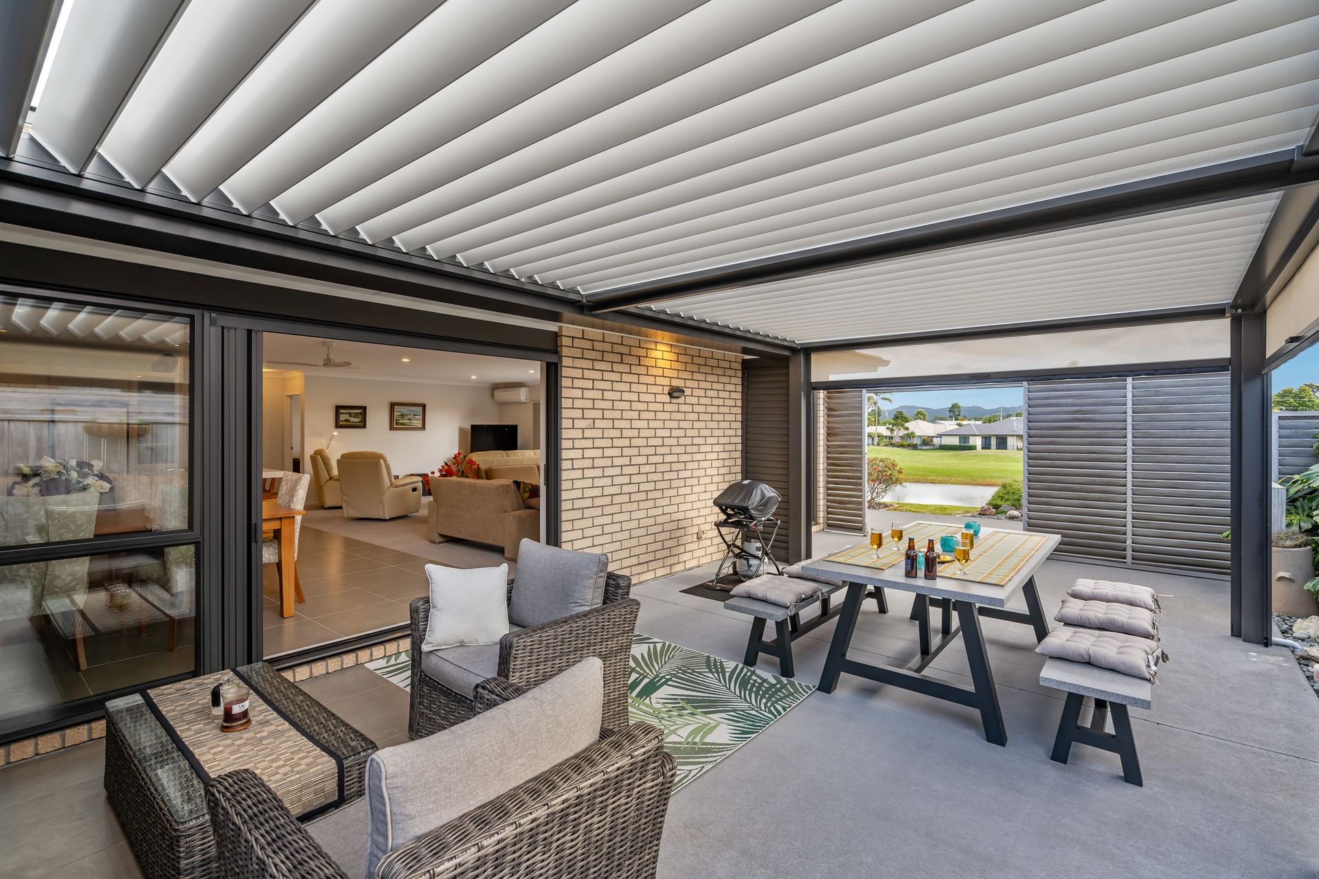 Admiration for the scenery and ambience can be enjoyed under an impressive high-spec alfresco area worth over $45k - complete with a remote-controlled Louvretec system overhead, with its curtain sides. This perfect tribute to outdoor living truly captures the essence of Northland living.