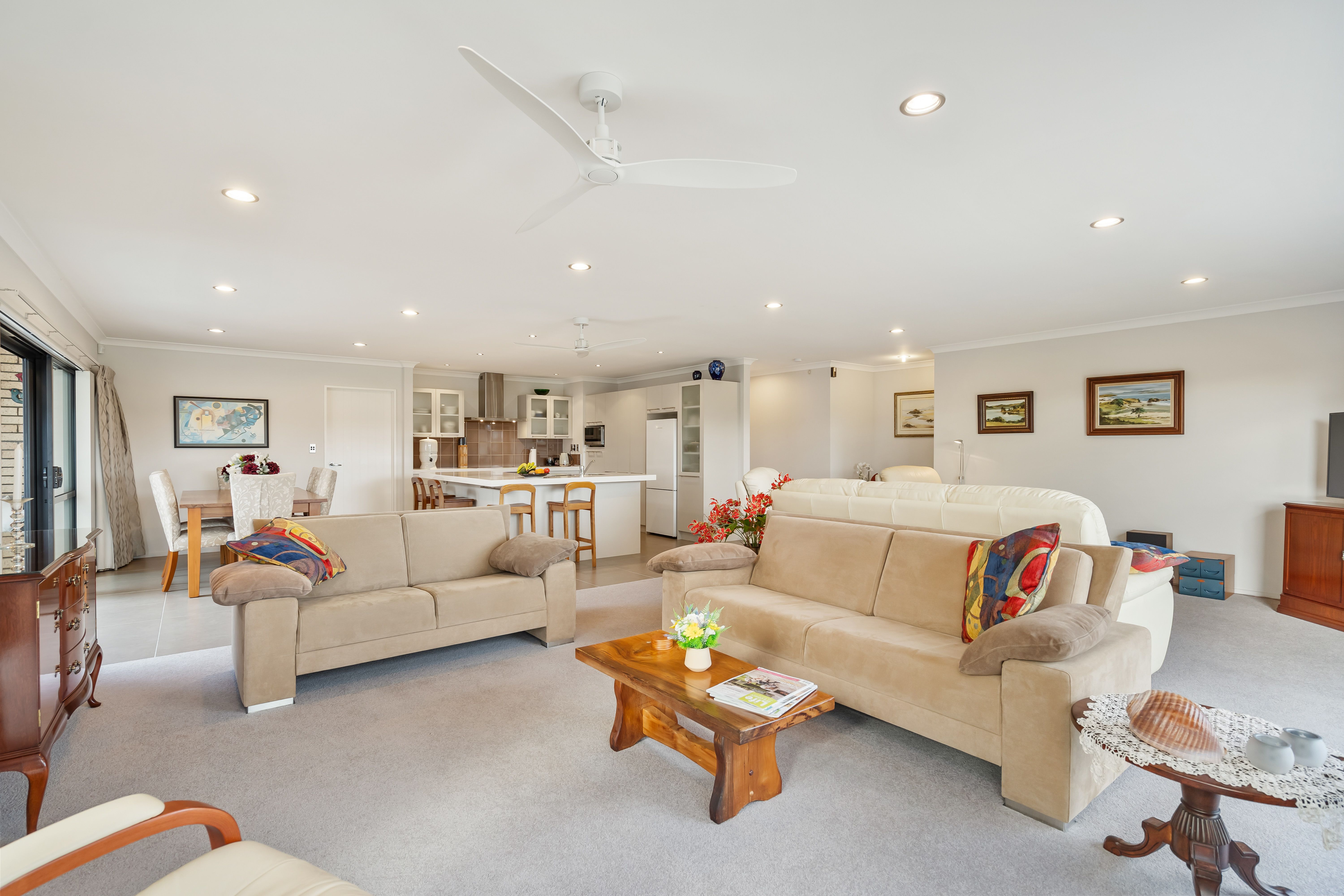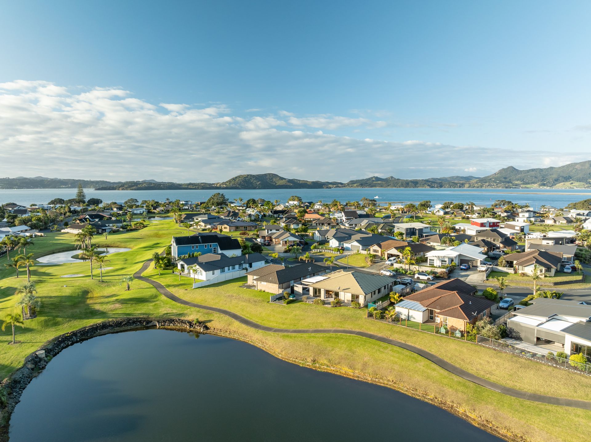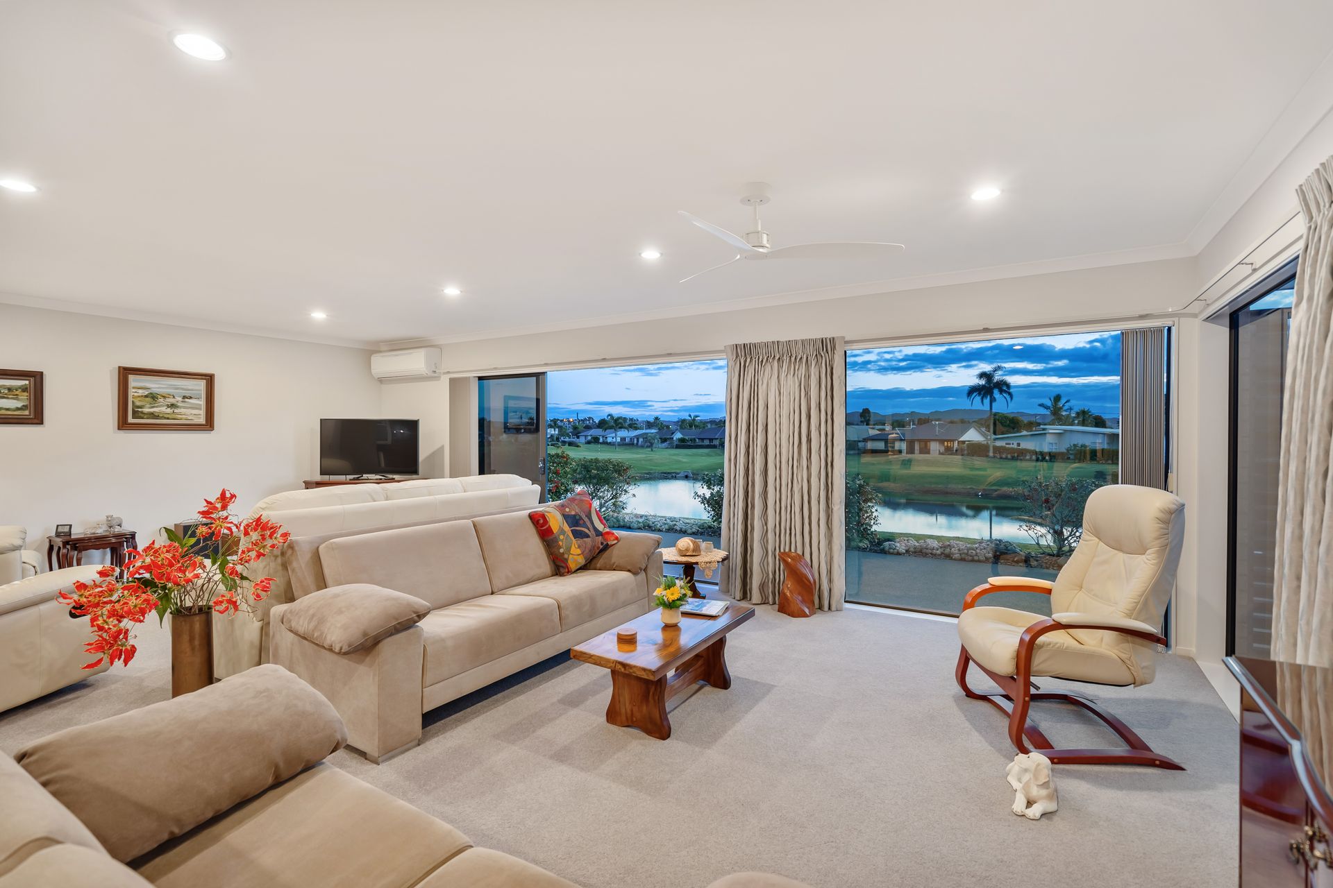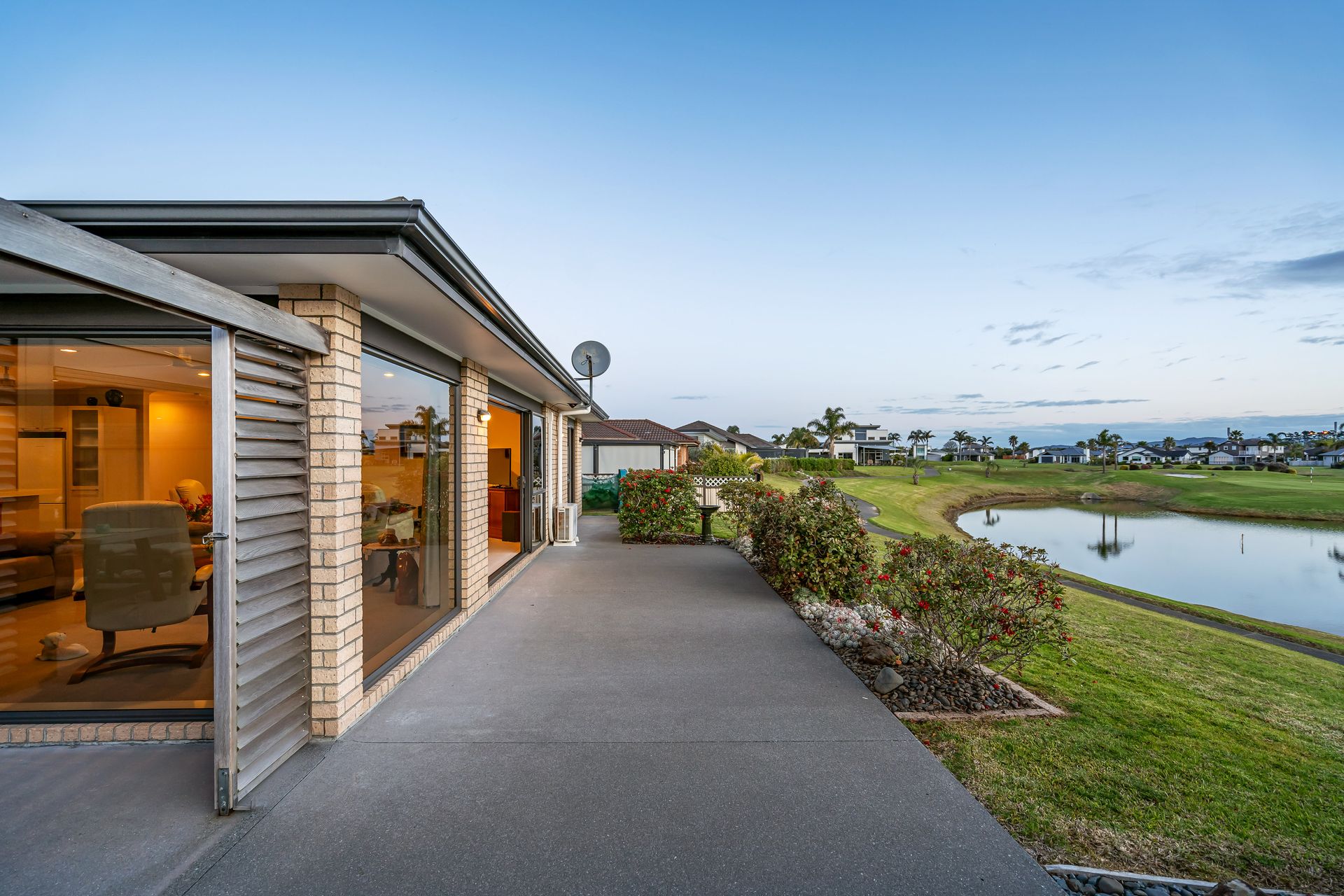 Step into Ngatiti and be greeted by the breathtaking open living space that offers an expansive view over the picturesque golf course, complete with lakes and lush bush-clad hills. The golden hour at this location is truly spectacular; the sunsets are a veritable feast for the eyes.