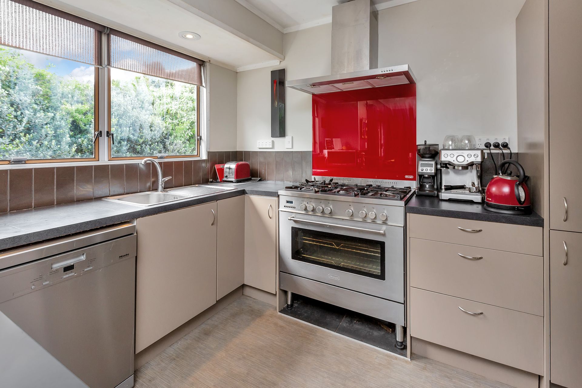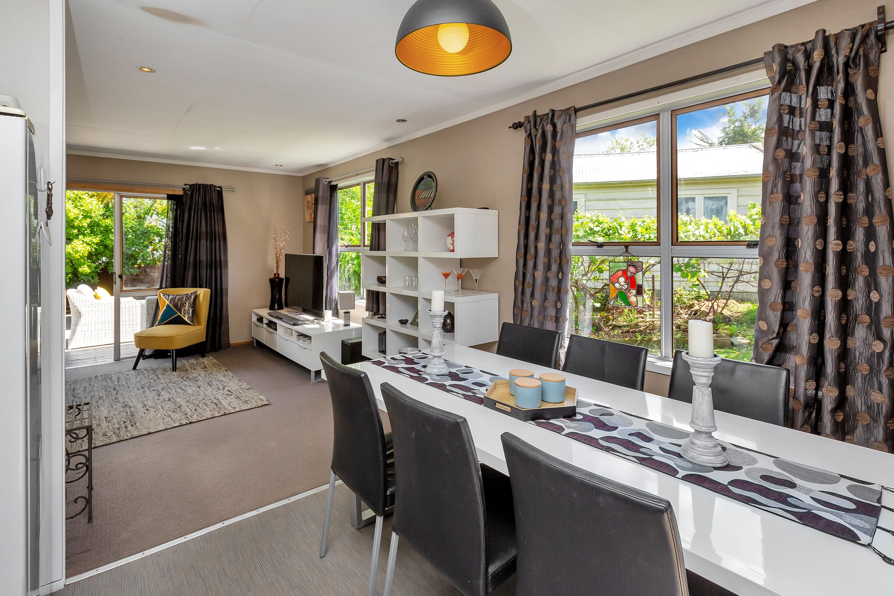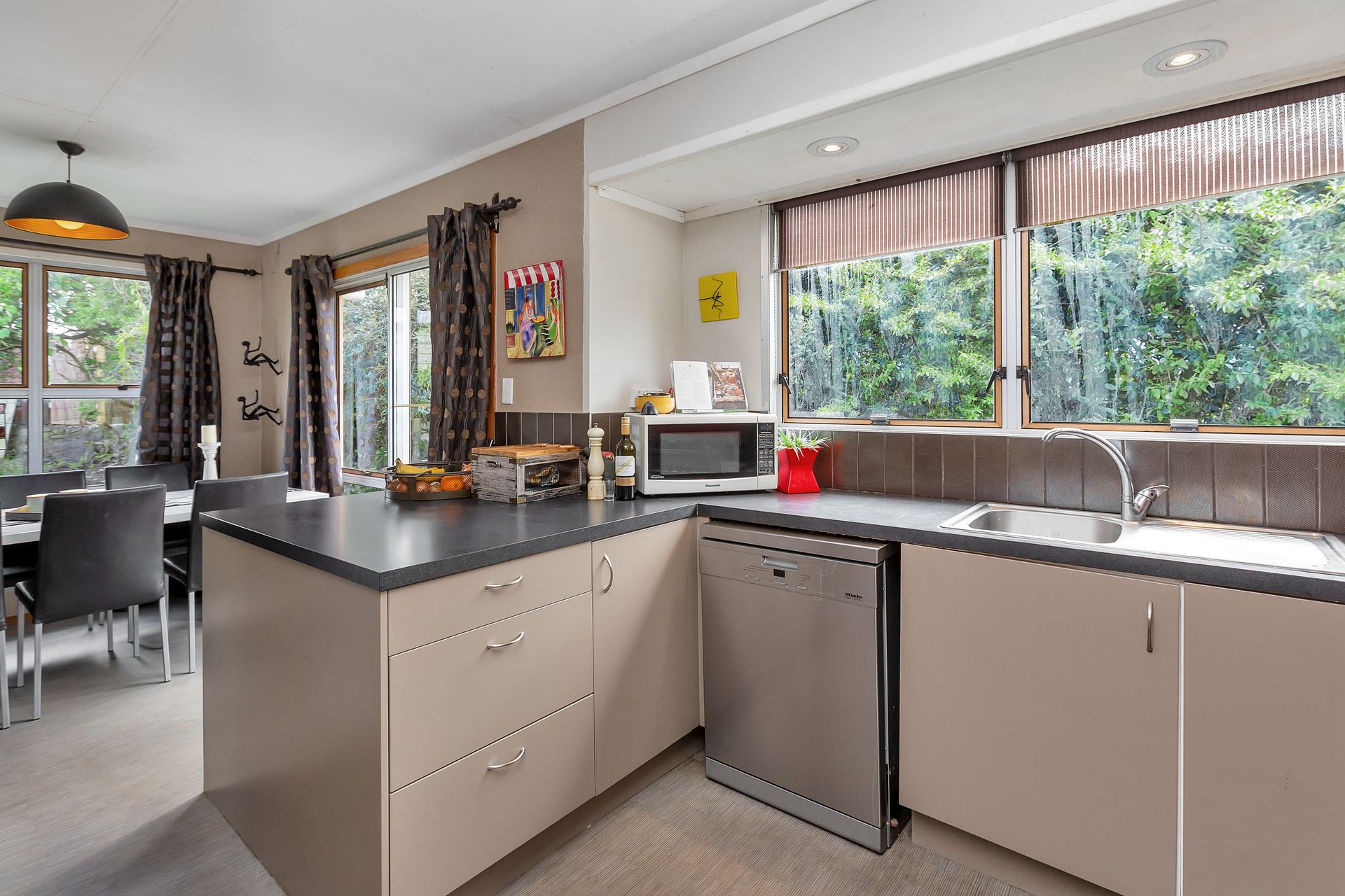 The lounge and dining, with decks either side extending the living zones, form the heart of the home. The modern kitchen is functional and stylish.