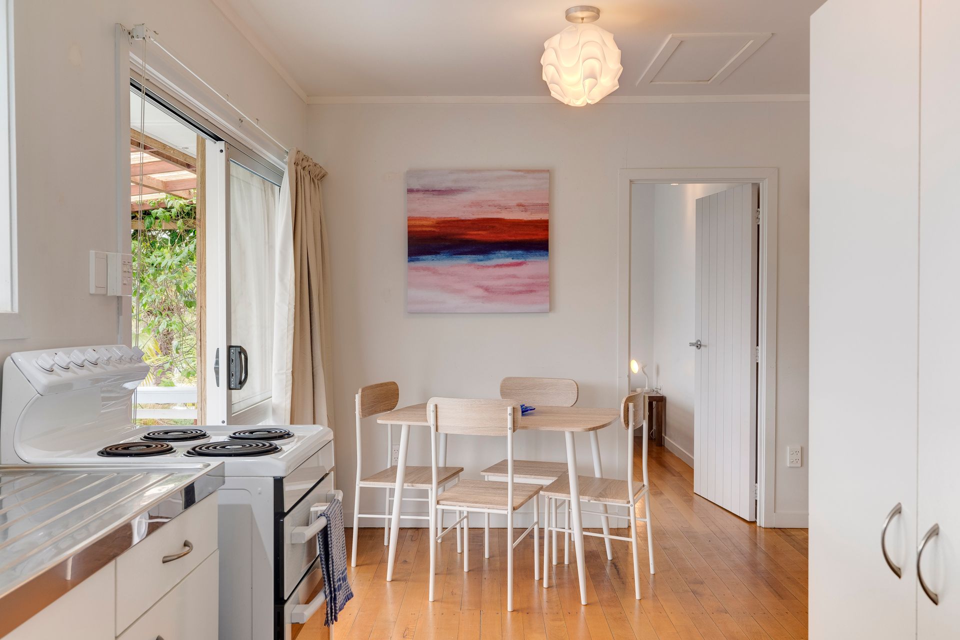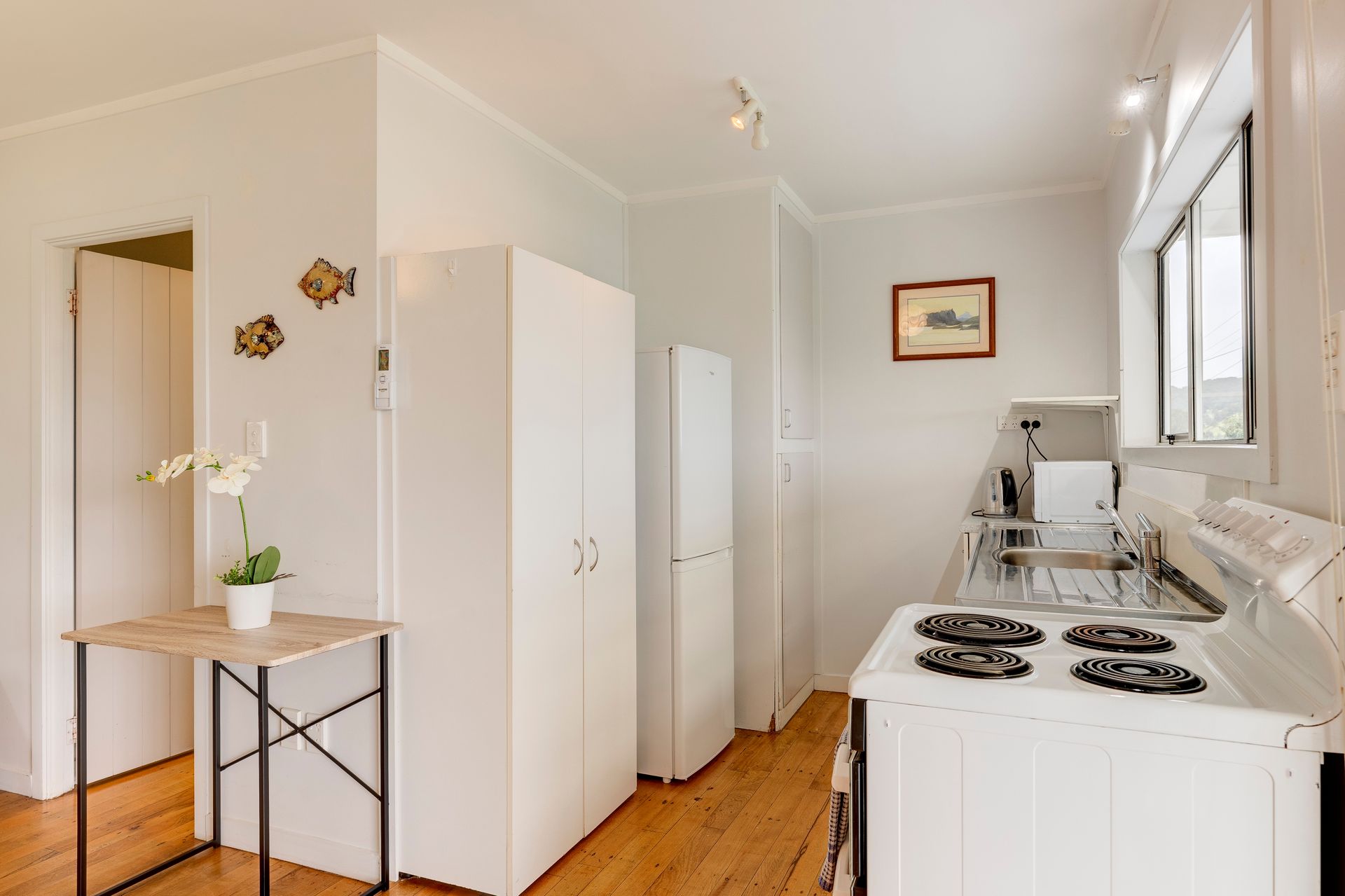 The delightful kitchen features excellent water views where you can enjoy watching the bird life in the mangroves and the ever-changing harbour.