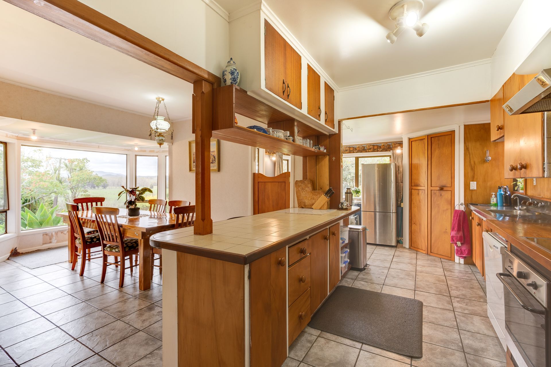Set back from the road and surrounded by mature gardens this spacious family home has everything you need. Farm style Kauri kitchen and dining is the hub of the home with views over endless rural pastures, the lounge is diverse with fire for winter and ranch slider out to the deck for summer.