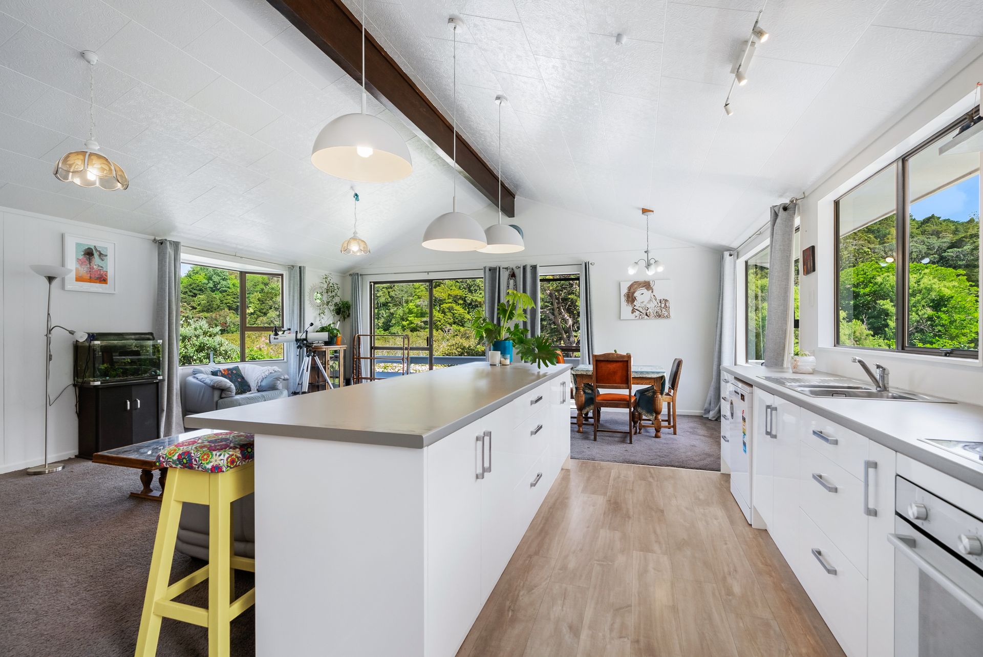 Relaxed and gorgeous to live in, this recently refreshed 1980's two level home is a coastal paradise amid the Parua Bay village, enjoying a little seclusion from the city, fresh air, greenscapes and time on the water without having to travel.