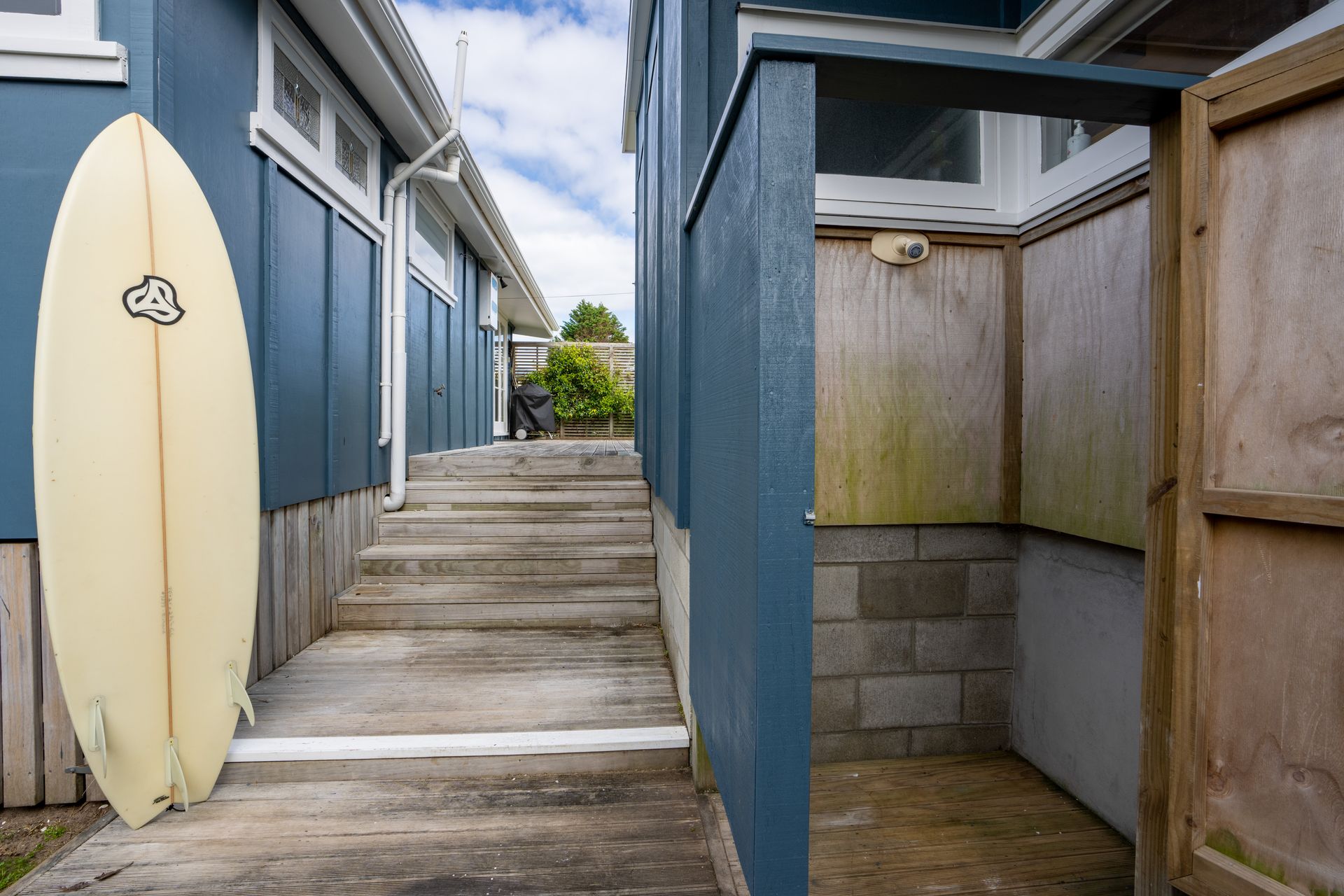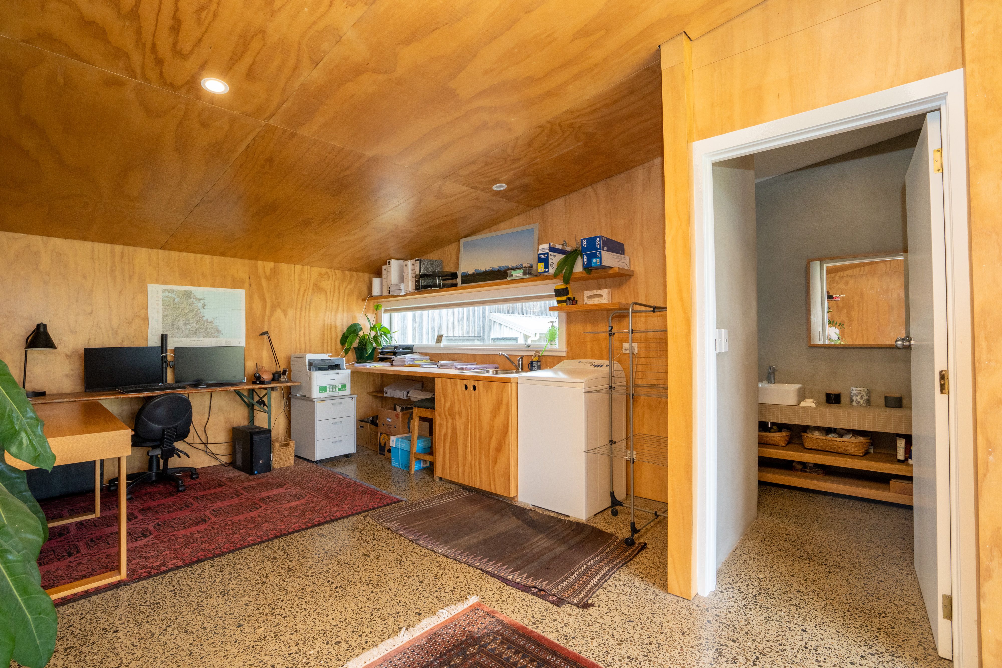 No need to drag salt and sand through the house after playing in the water, there is an outside shower and a second toilet and shower conveniently located in the new garage studio. Featuring polished concrete with under floor heating, this garage studio makes a great office or second living space and provides ample room for additional accommodation.