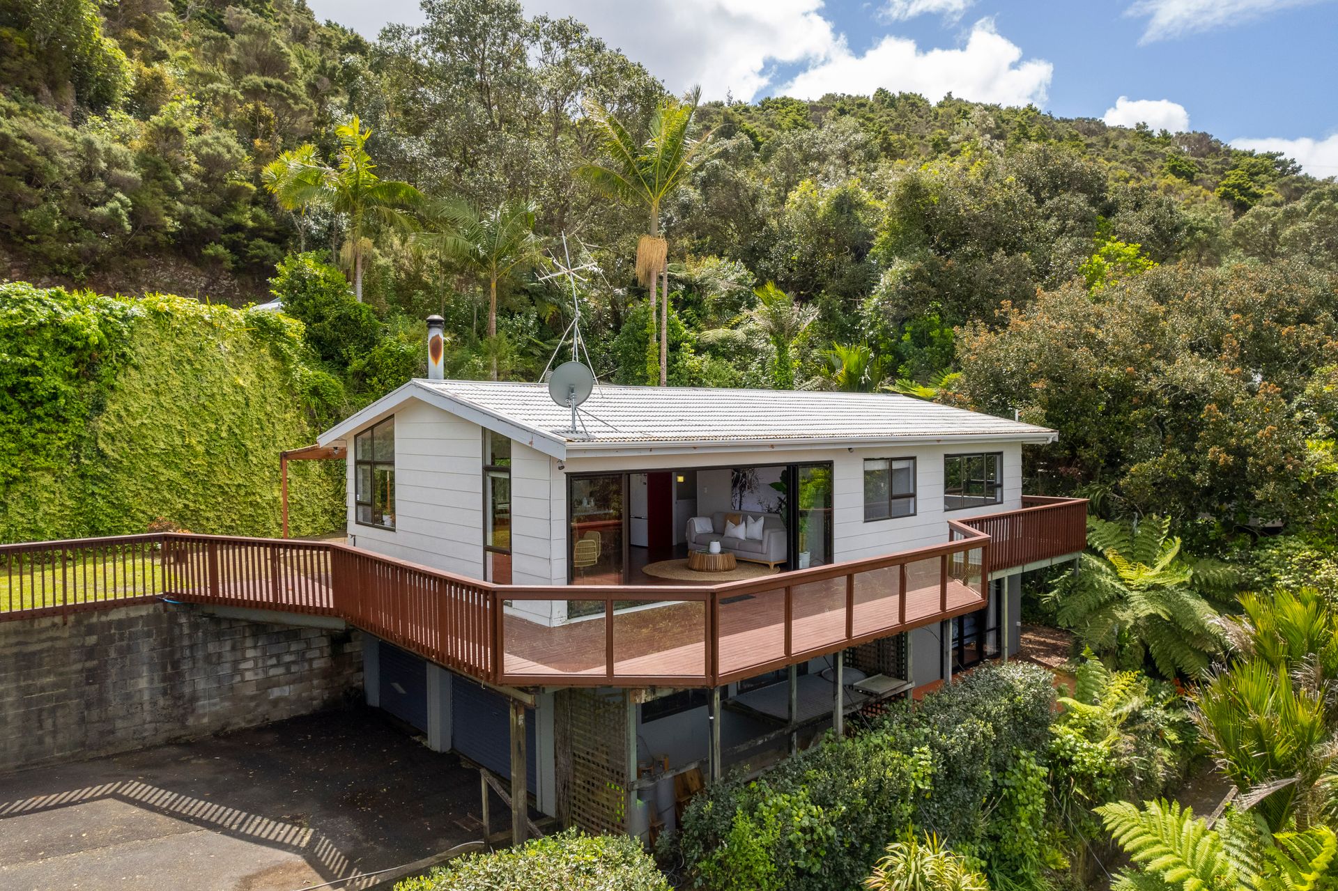 For your daily exercise, venture from the main home along a well-constructed pathway, with solid steps and a handrail, down to the converted boatshed on the waterfront.
