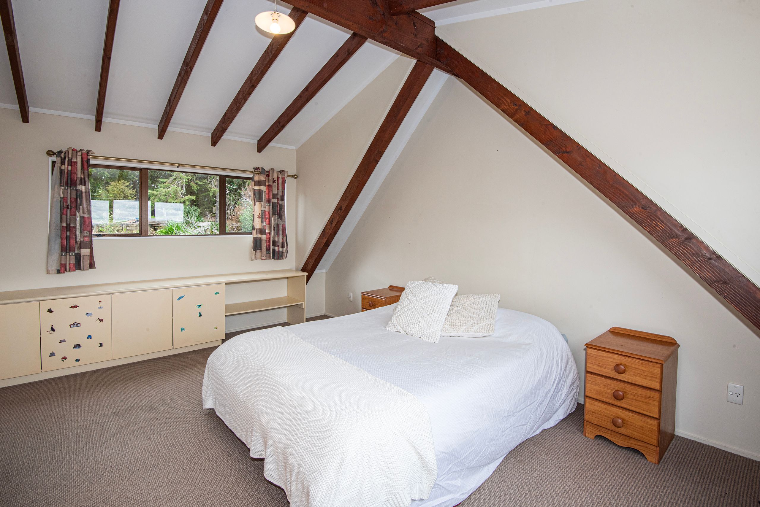 Nestled at the end of the road, on just over 8 acres, you will find this woodsy looking home that blends in with the natural landscape. The setting is peaceful and private, and handily positioned just 11 km to Te Kamo Village. Offering three bedrooms, with one upstairs and two downstairs. The bathroom is down in the main area, but there is a generous space off the upstairs bedroom that would make the perfect ensuite for the master bedroom.