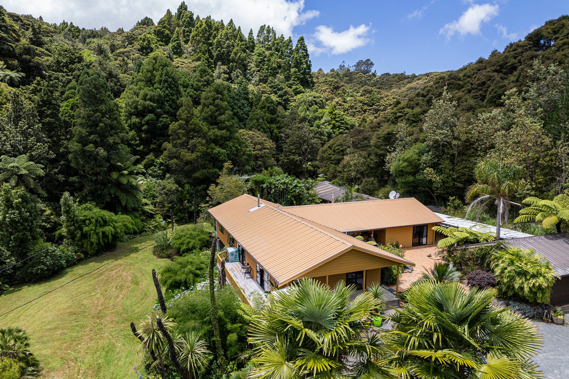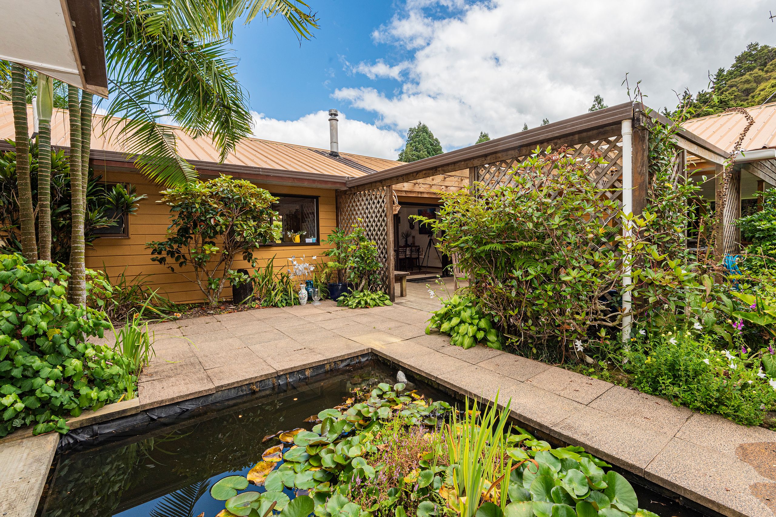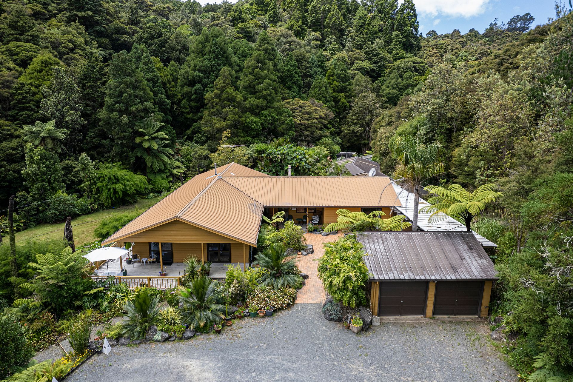 Home base is positioned in a private sheltered valley. The charming homestead boasts four spacious bedrooms, two bathrooms, a well appointed chef's kitchen (massive island, loads of bench space and walk in pantry), two living areas and a large laundry. The sleepout has a full ensuite and adjoining workshop. The homestead is surrounded by extensive decking, Japanese inspired ponds and gardens, and seating areas that allow you to enjoy the beautiful Northland sunshine any time of the day. Nestled just behind the sleepout and workshop is an established vege garden and potting shed.