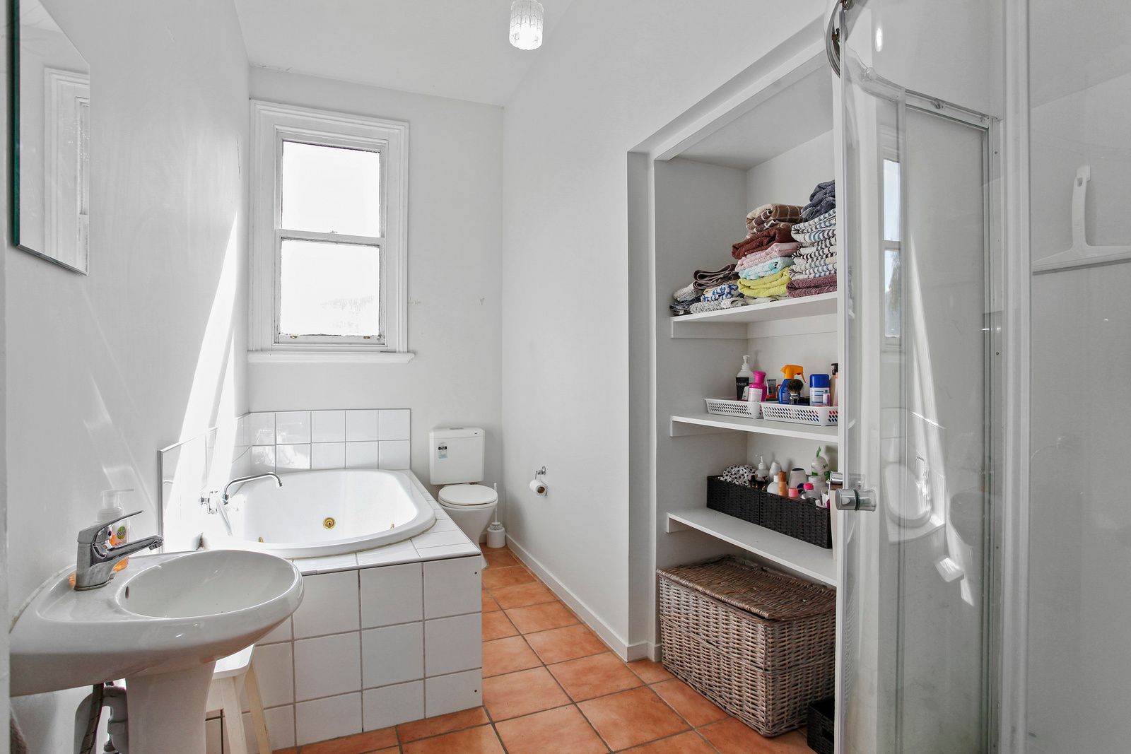 There are three large double bedrooms, two with built in wardrobes, located off the central hallway, as well as a separate living area.