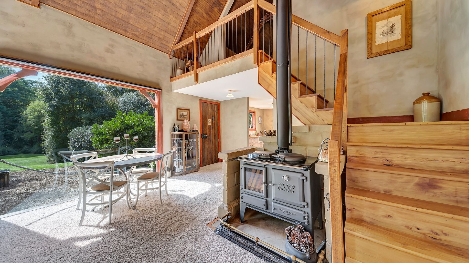 The Esse Ironheart wood stove is a central feature that will provide warmth to the home, an exquisite meal and has the added feature of being a wetback to heat the hot water. With the Esse electric oven in the kitchen you have the benefit of two separate cooking sources.