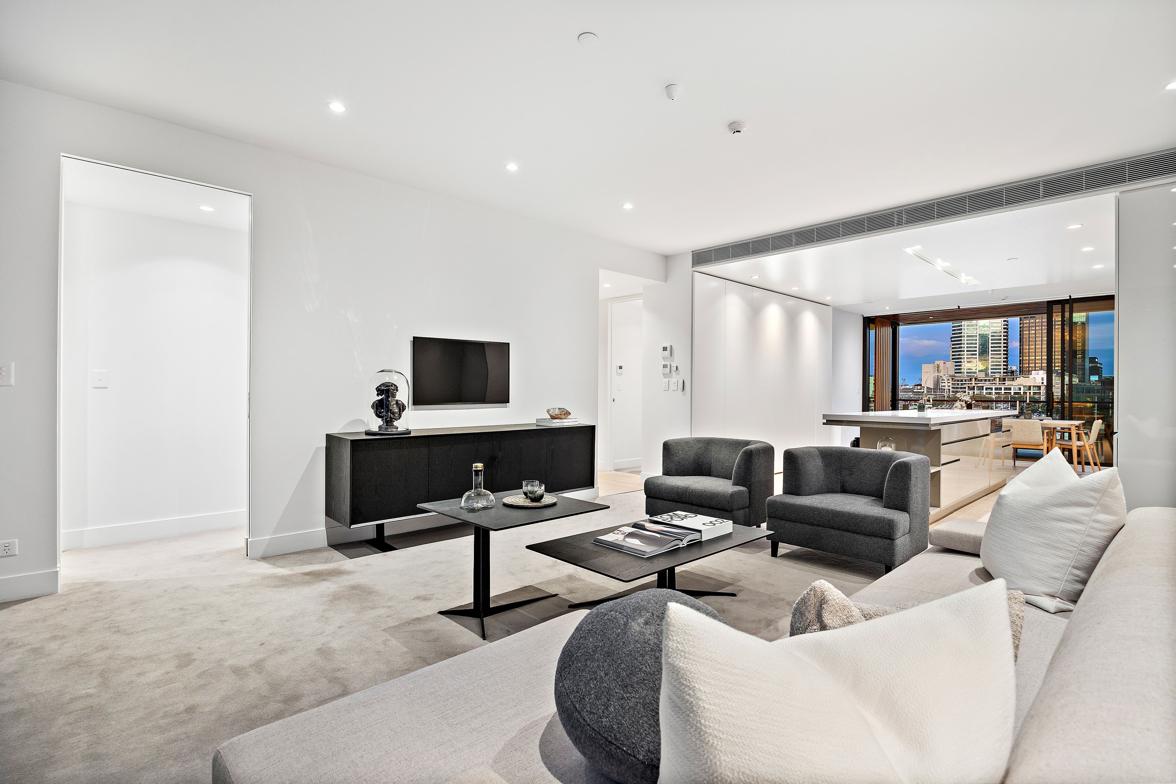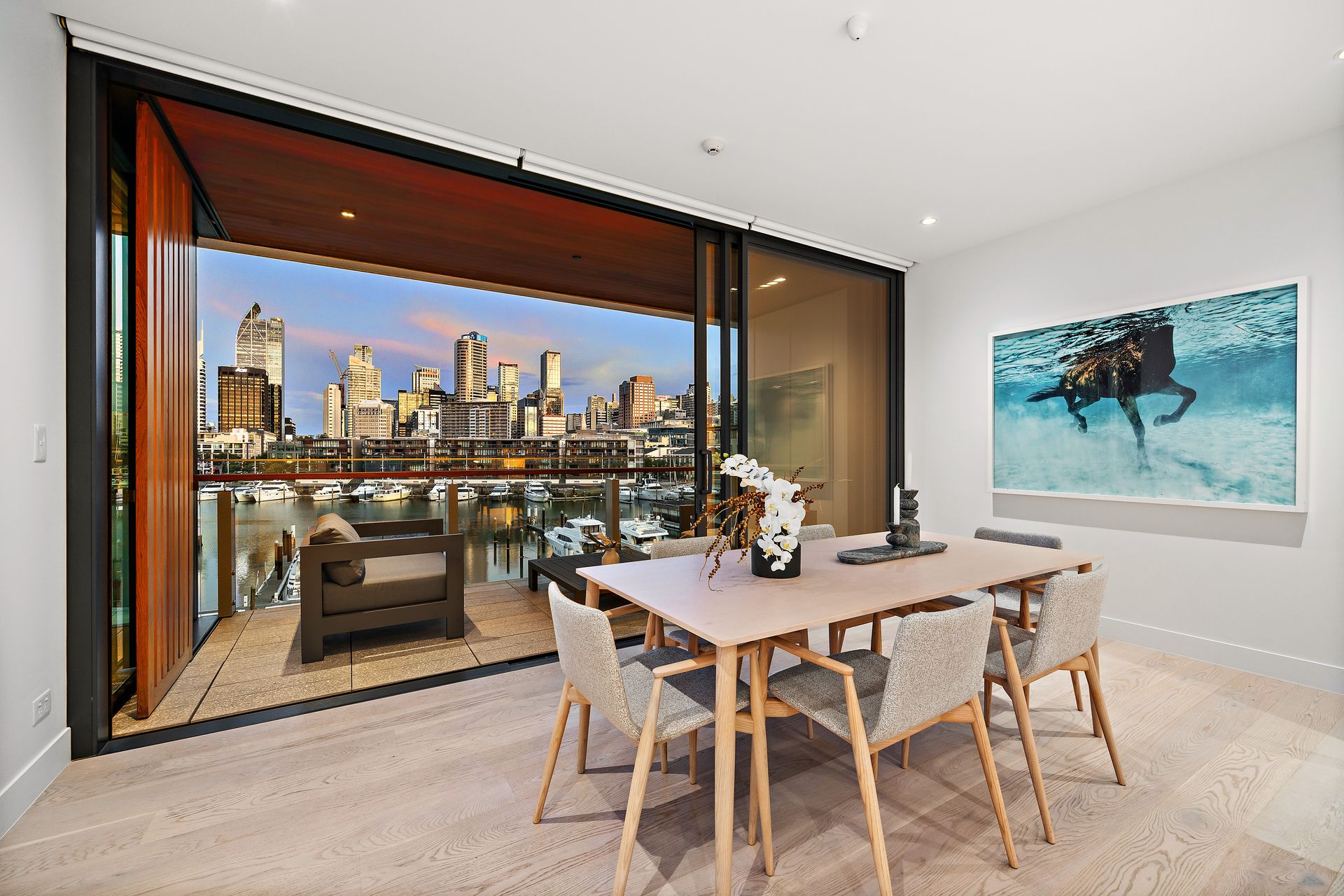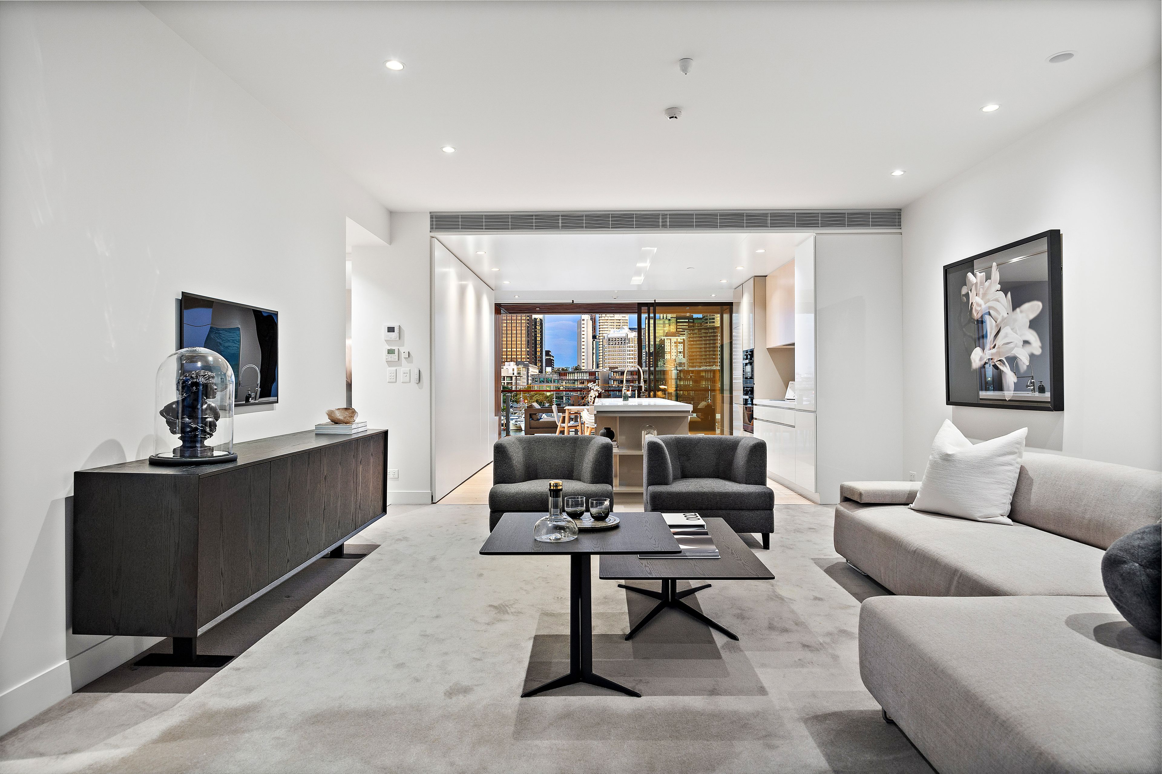 As you enter the apartment, you are greeted by a spacious open-plan living area that has been thoughtfully designed for optimal use of space. The separate dining area invites you to host friends or family over a meal, while the modern kitchen is fully equipped with the latest appliances. The west-facing balcony provides a front-row seat to the stunning harbour views, offering a peaceful retreat at the end of a busy day, while the east-facing balcony offers a second outdoor living area.