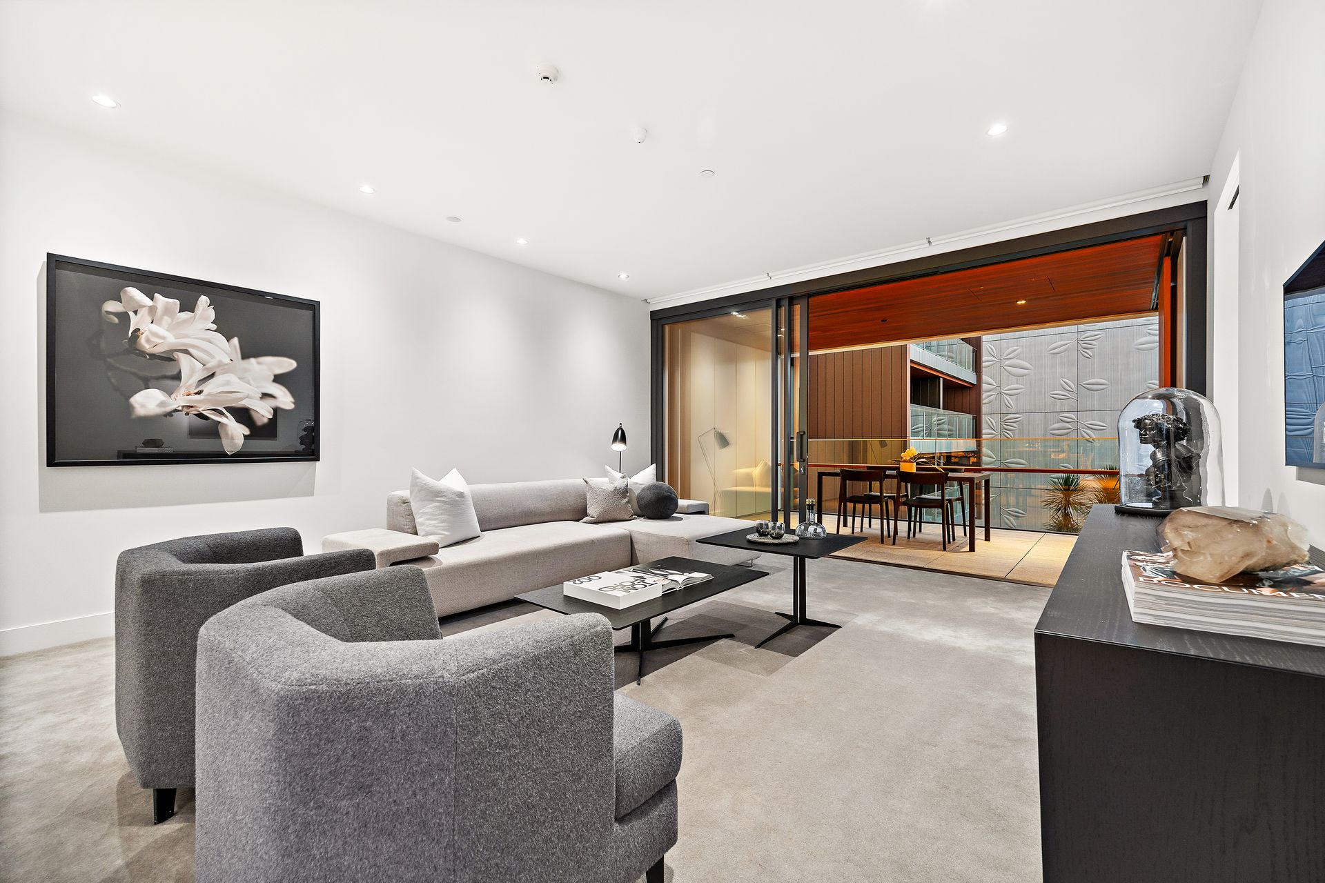 The bedrooms are true havens of comfort and relaxation, each of generous proportions with separate bathrooms, an expansive walk-in wardrobe in the master bedroom, and plenty of natural light with full-length windows.