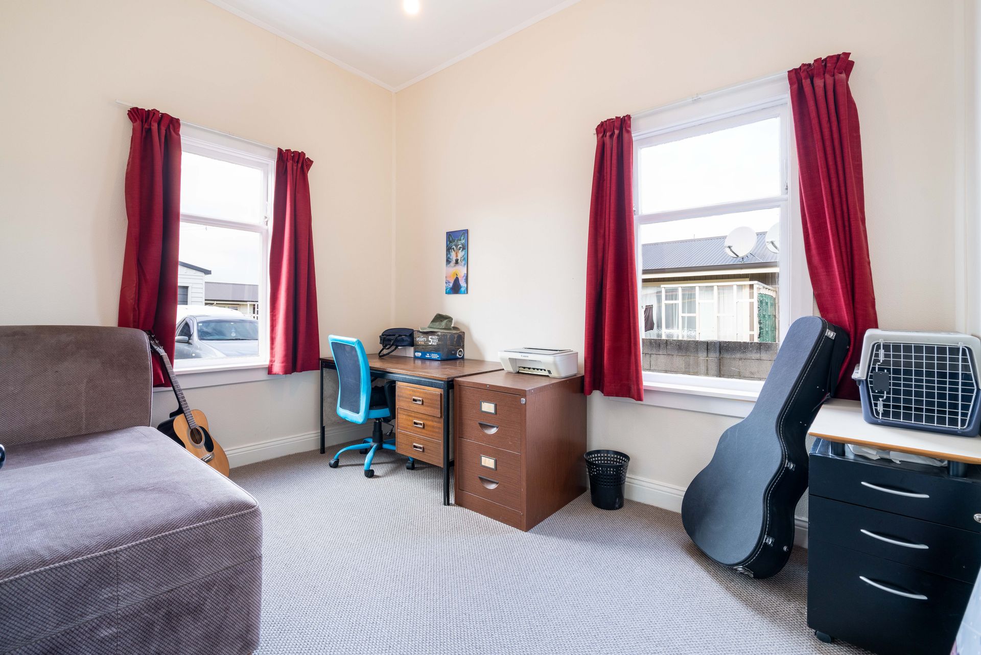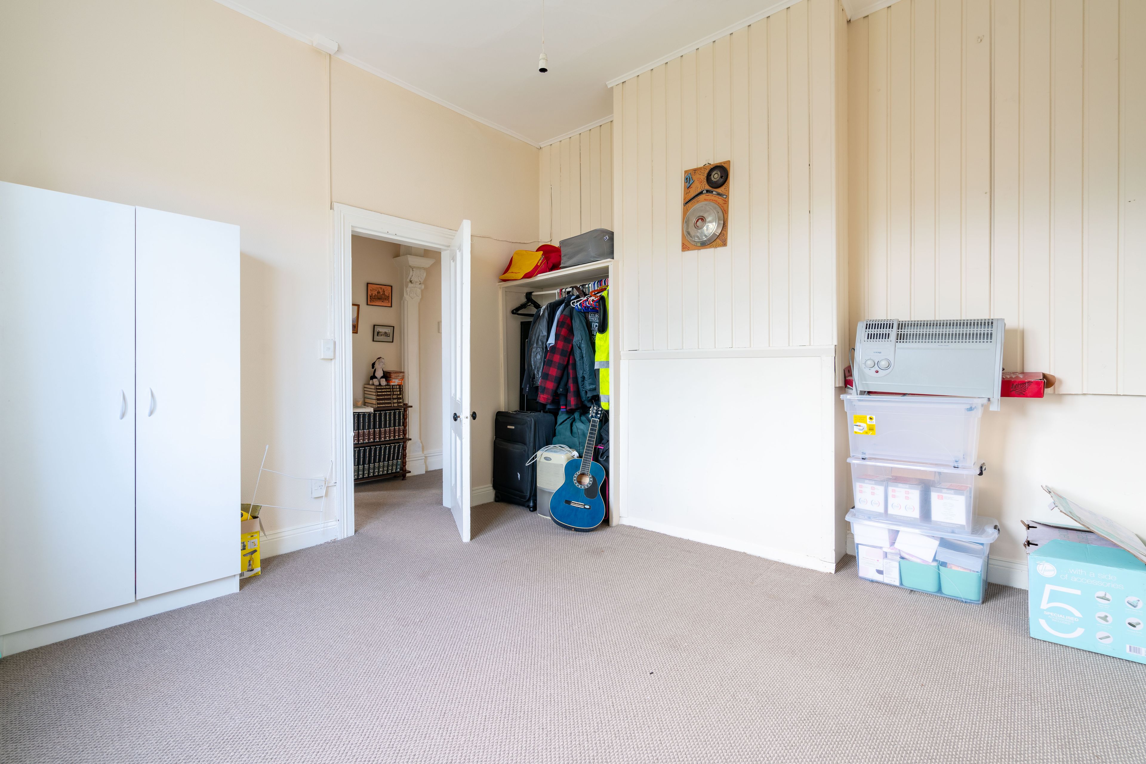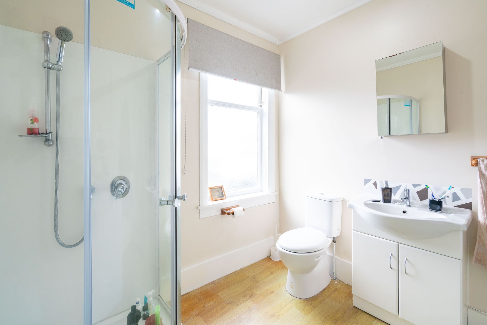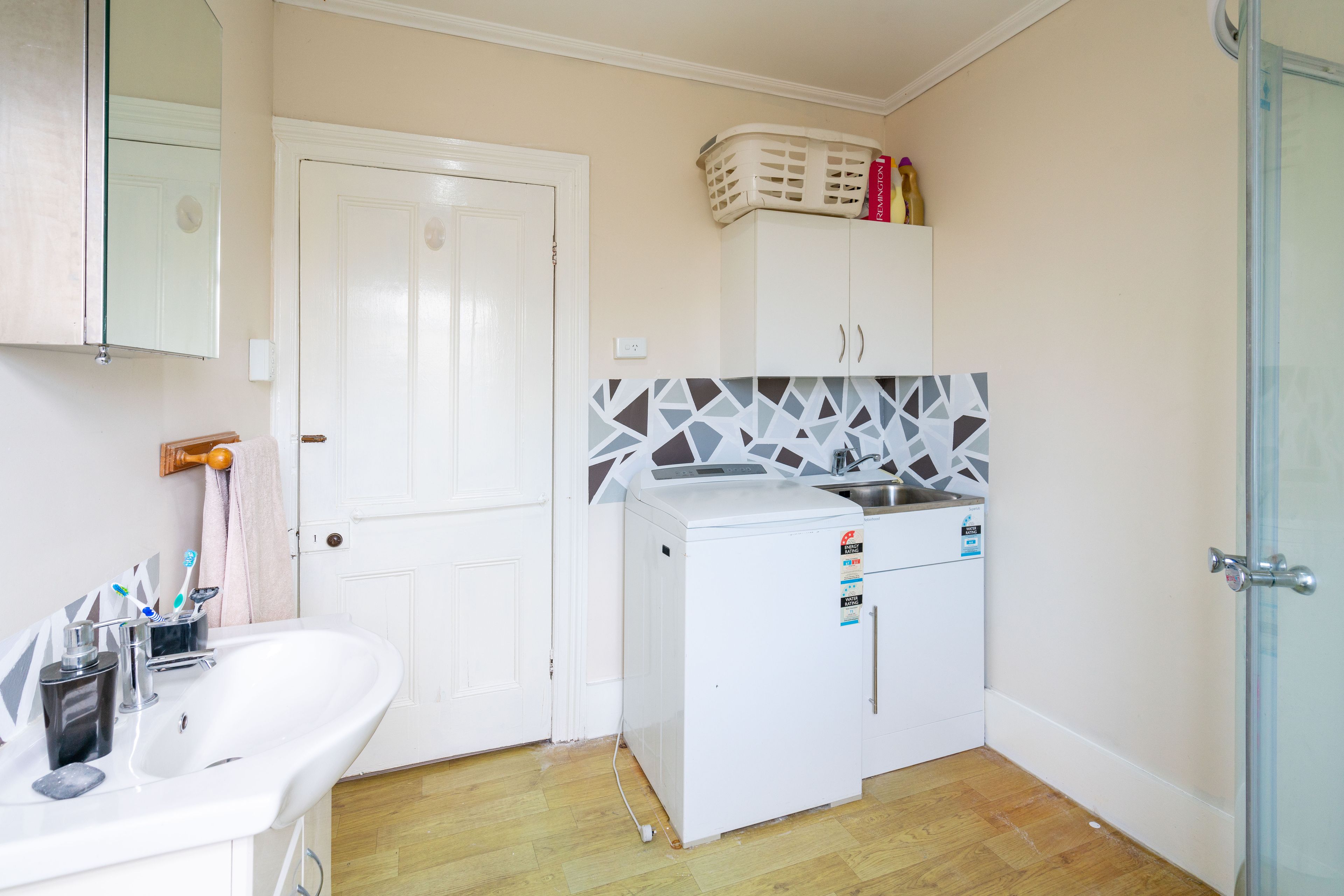 The partially updated interior comprises three bedrooms (2 doubles and 1 single/office) and a combined bathroom and laundry space.