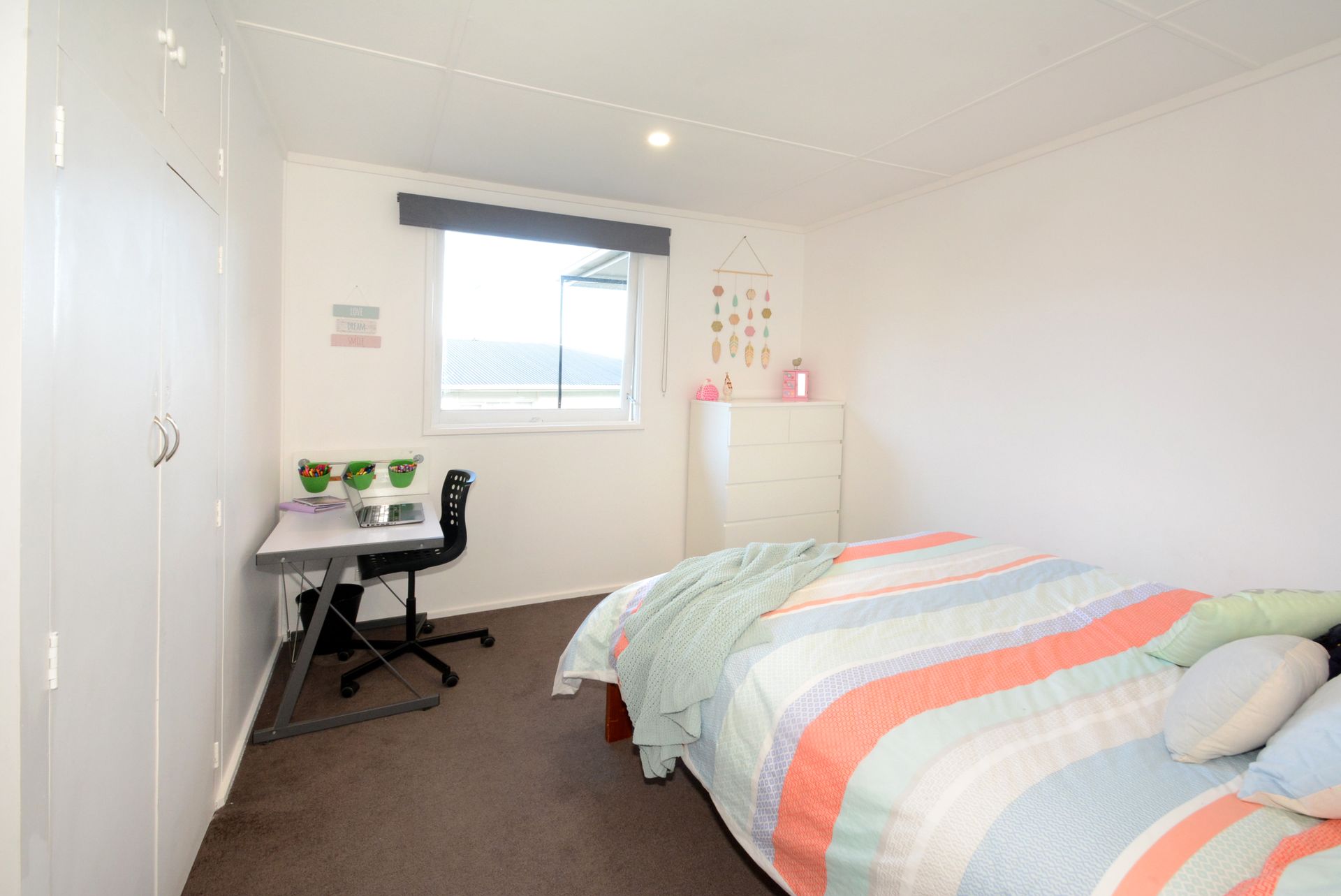 Open plan kitchen-dining-living with great indoor-outdoor flow, four bedrooms, recently renovated bathroom with heated tiled floor and a separate laundry; while downstairs, the rumpus room also provides generous storage and there is an all important workshop for the handyman. Ceiling and underfloor insulation, 2 heatpumps plus panel heaters, ensure this is a warm and cosy home. Re-roofed, re-wired and the exterior and interior painting is newly completed. Close to all levels of schooling and in a sought after sheltered location.