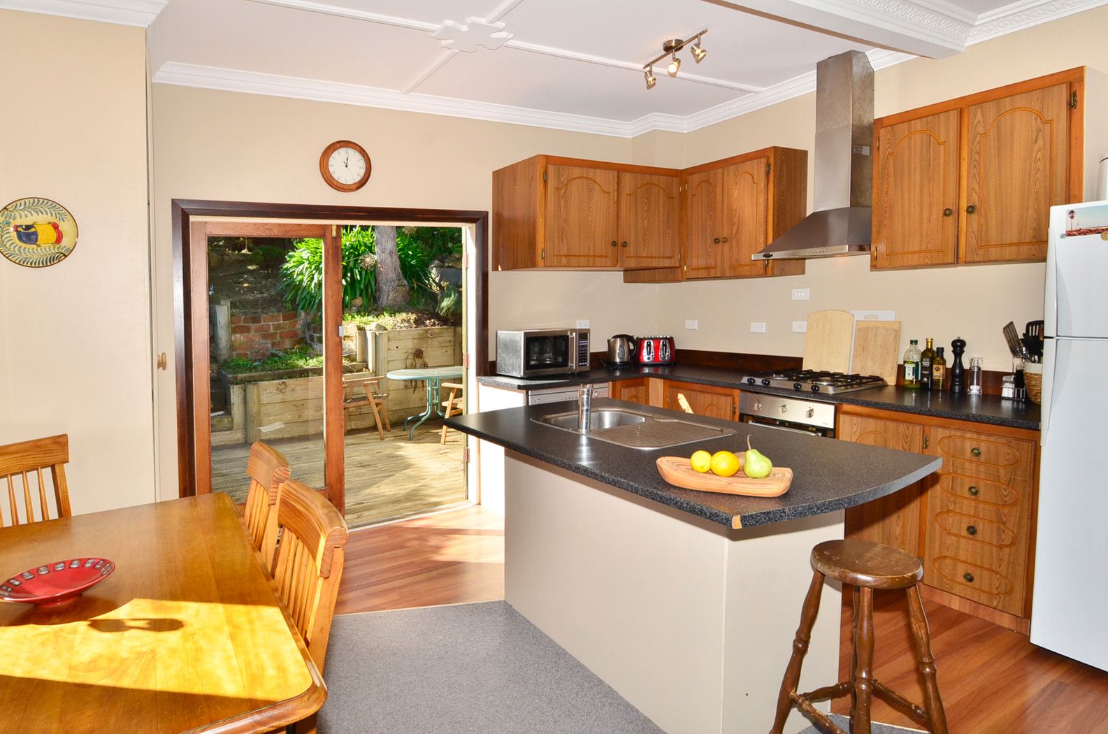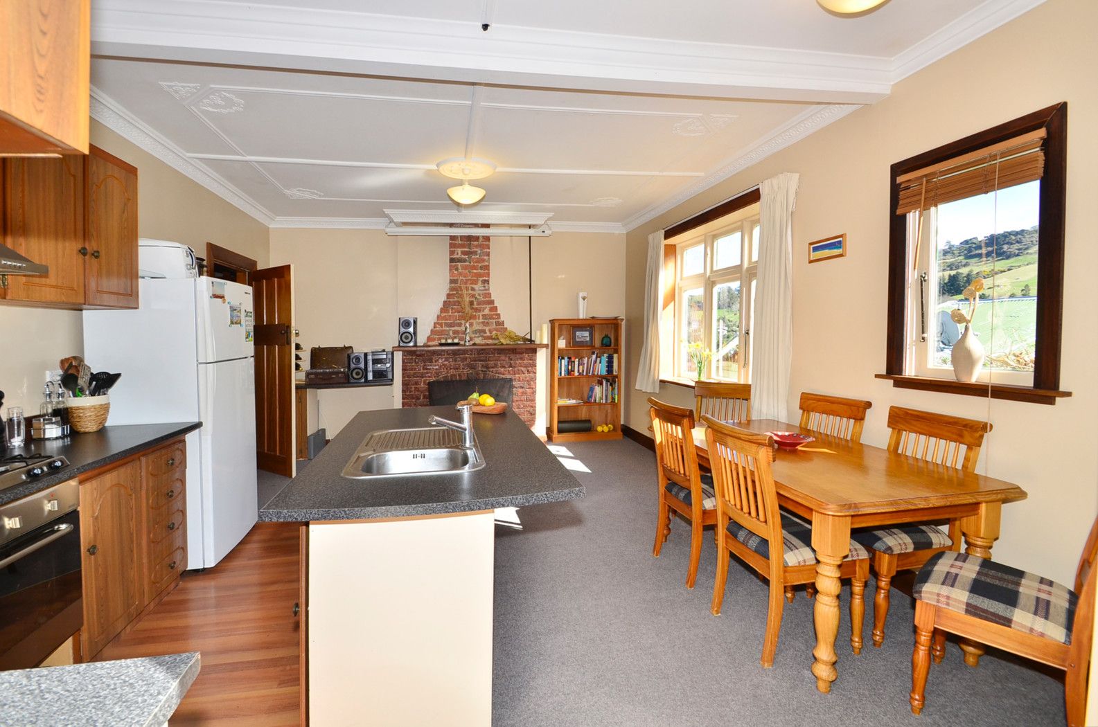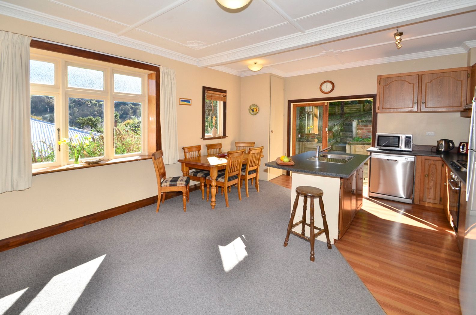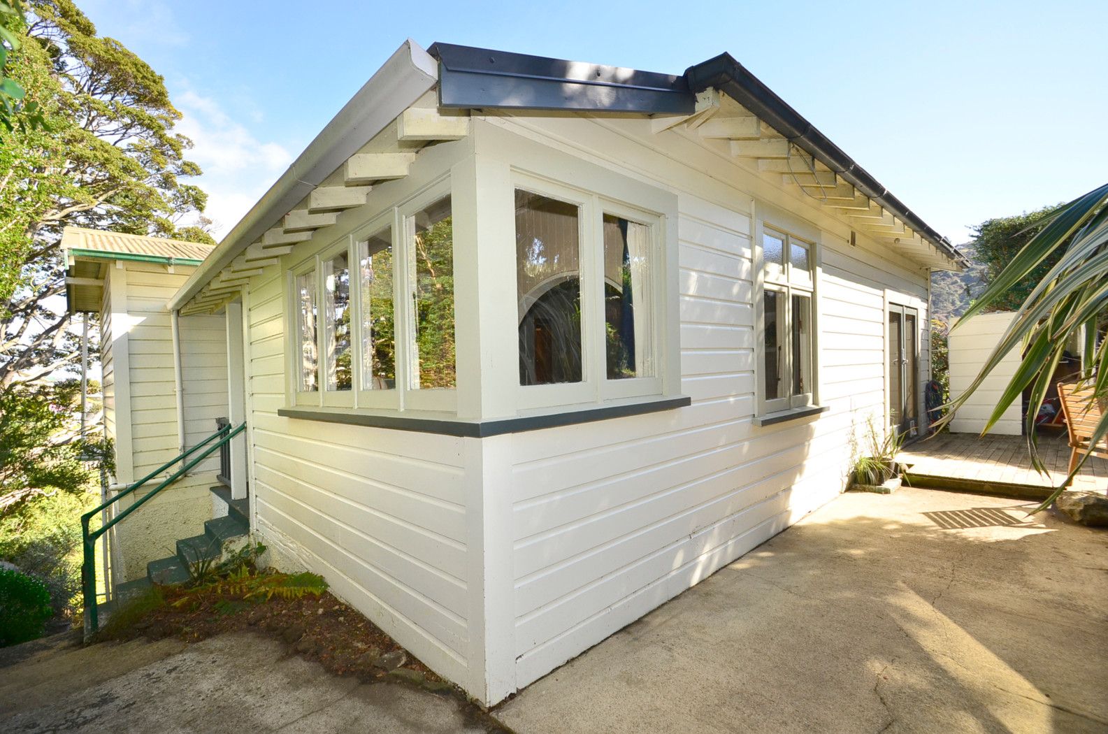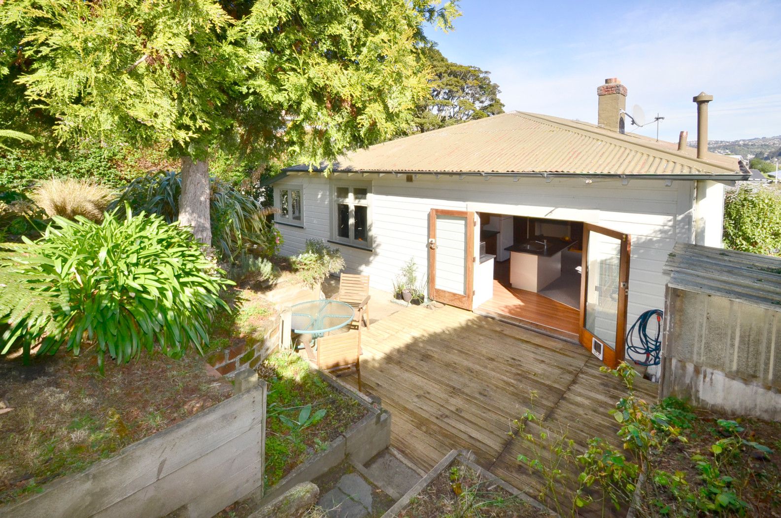 Both double bedrooms have built in wardrobes; one also incorporates the former sunroom as its dressing room. A separate lounge (or 3rd bedroom) is heated by a heat pump and open fire; from here semi rural & bush views right down the valley to the city are yours to enjoy. The spacious open plan living, dining and modern functional kitchen opens out to a decked area perfect for outdoor entertaining with its semi-terraced private garden backdrop. The well designed rear section has resulted in garden rooms for recreational use as well as productive gardening.