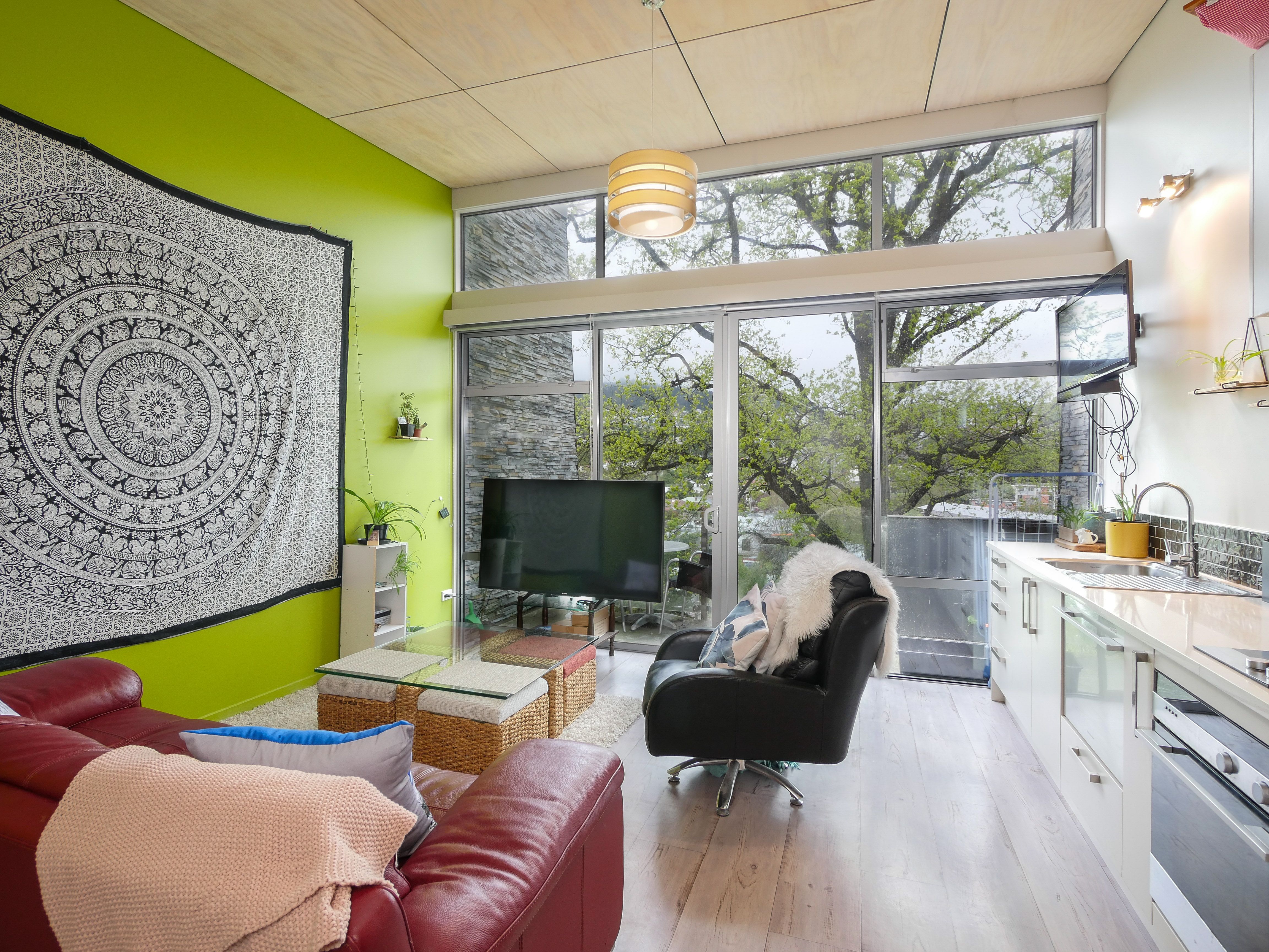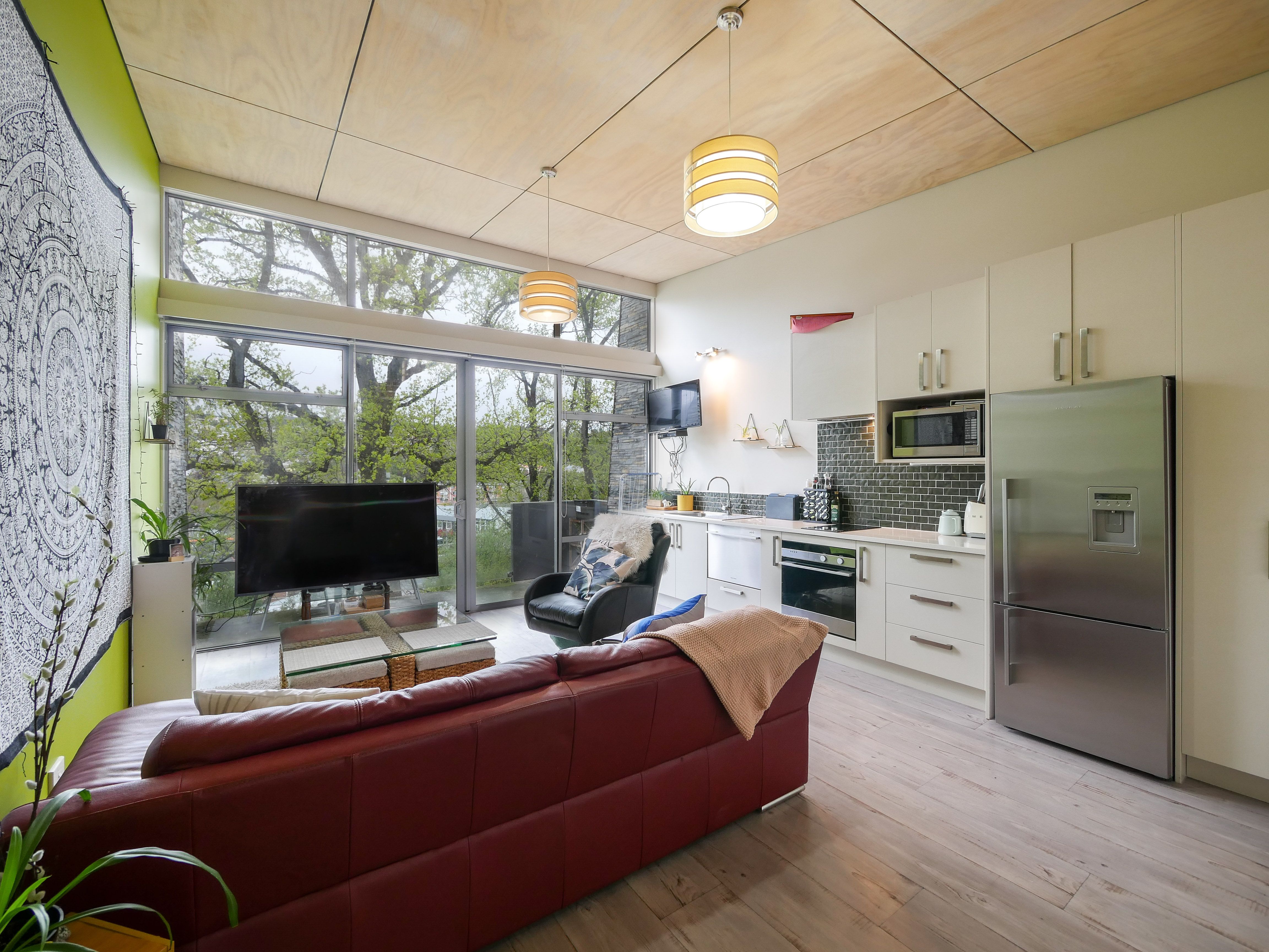 Floor to ceiling windows flood the kitchen-living room with light and provide enjoyment of a lovely, treed outlook. These mature trees not only provide privacy inside, but also when alfresco dining on the sheltered balcony.