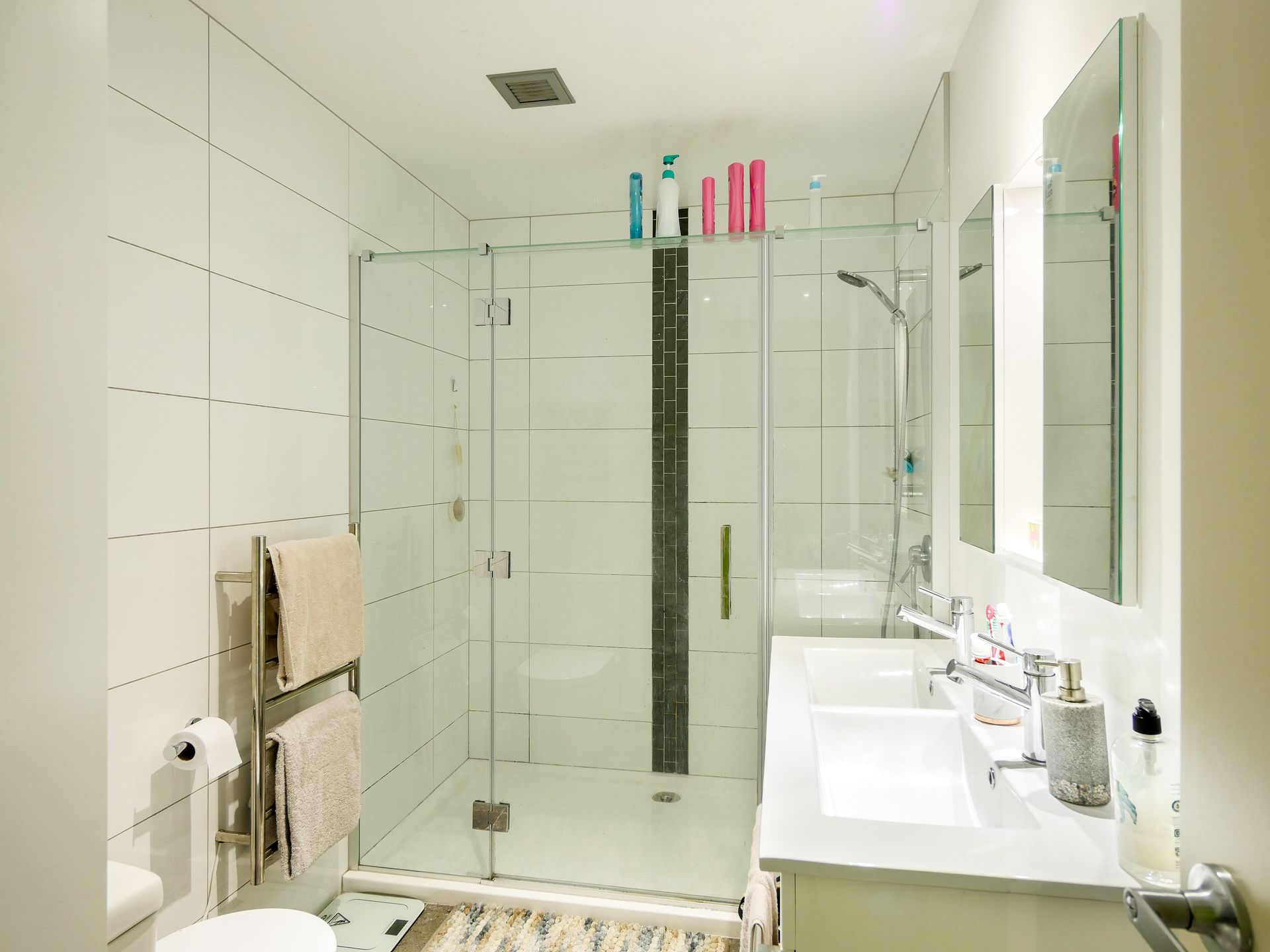 Fully furnished, double-glazed, underfloor heating, an office nook, a spacious bathroom with double-basins and a large bedroom with storage. A reserved off-street parking space is included in the sale of this apartment.