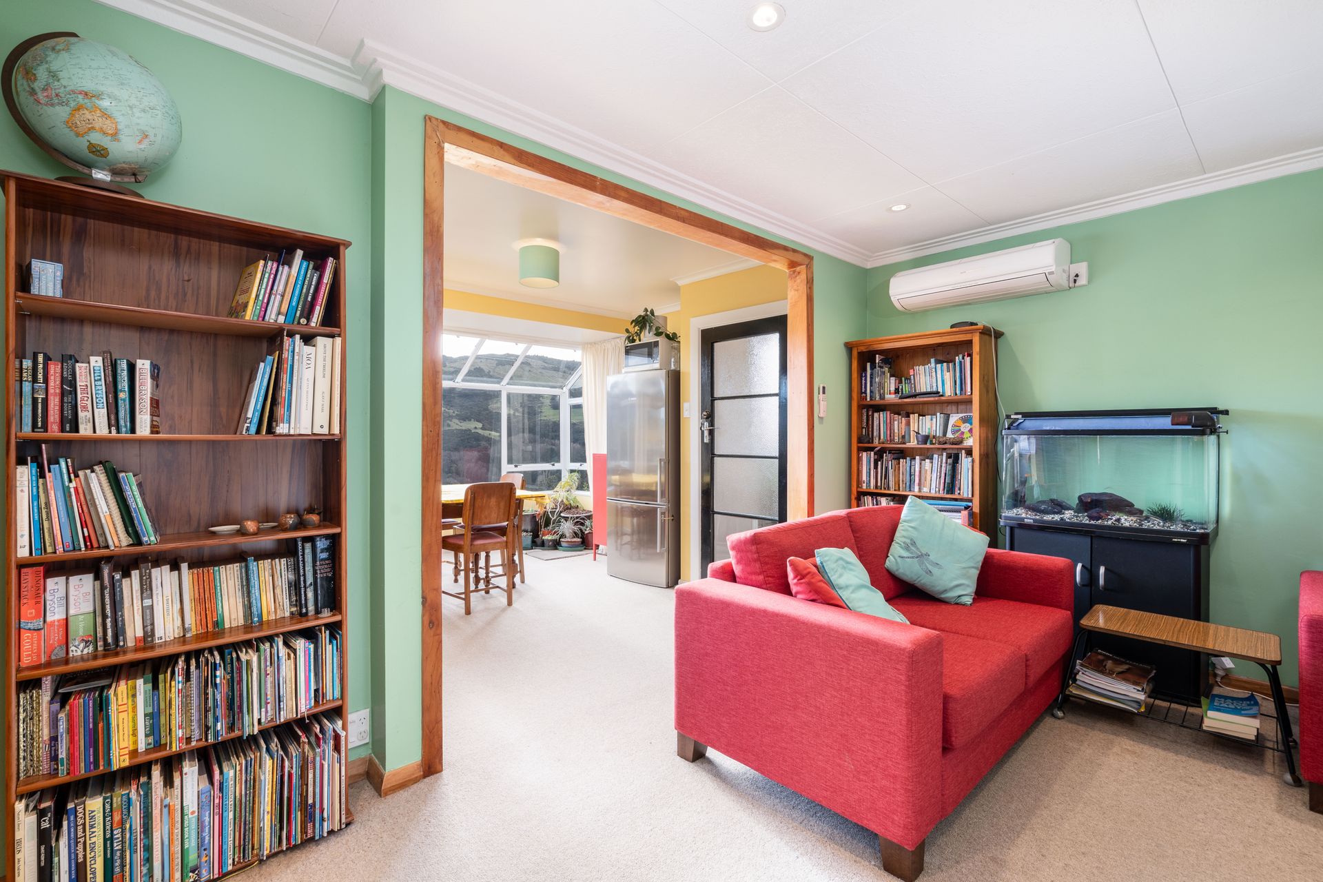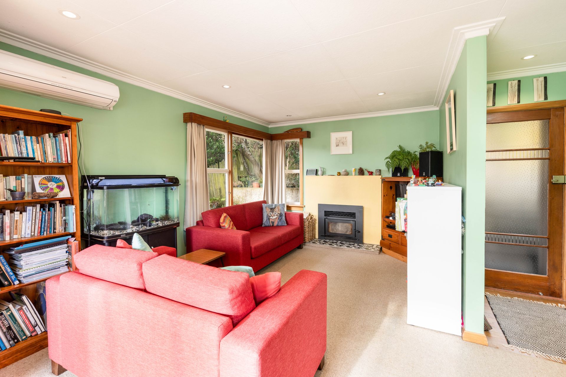 Open plan living with a choice of heating options - wood burner or heatpump.