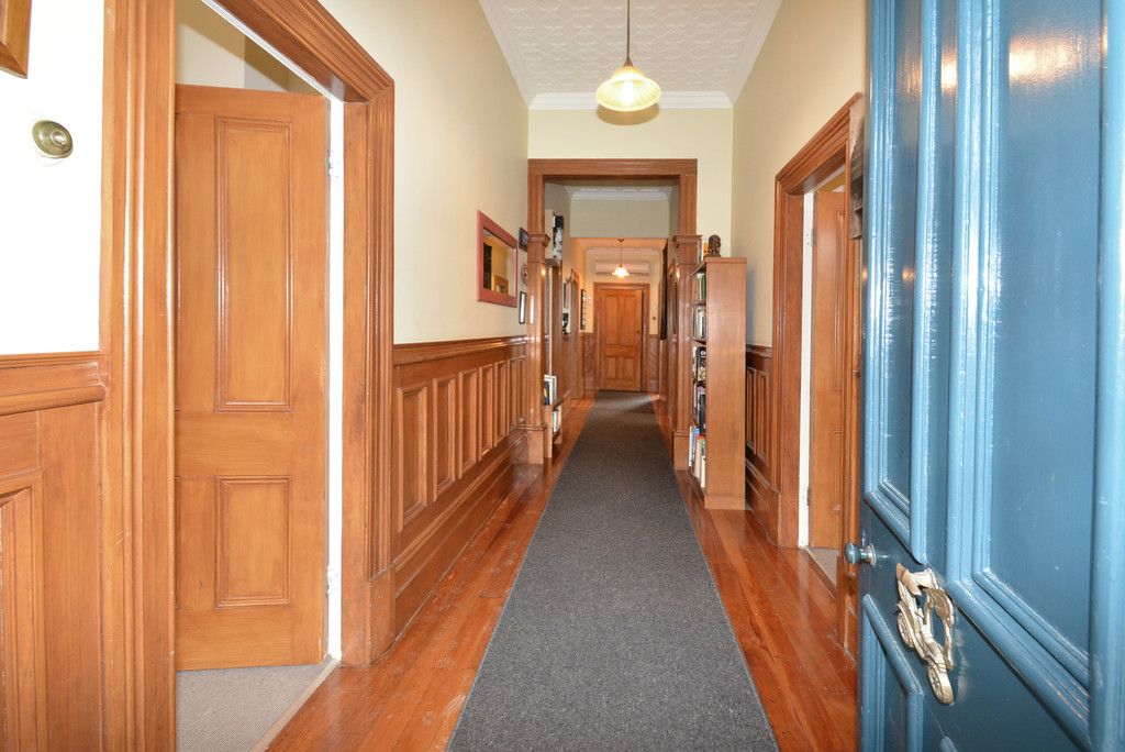 Character lovers will be drawn by the array of original features which have been retained in this generously proportioned turn of the century villa. From your first glimpse of the white picket front fence and rolled roof verandah extending around two sides of the house, you will be impatient to discover what lies within. The wide paneled hallway is a foretaste of the beautiful rimu which has been used extensively throughout the house, along with pressed tin ceilings and large, feature bay windows. Meeting the requirements of modern day living, it provides good flow of kitchen-