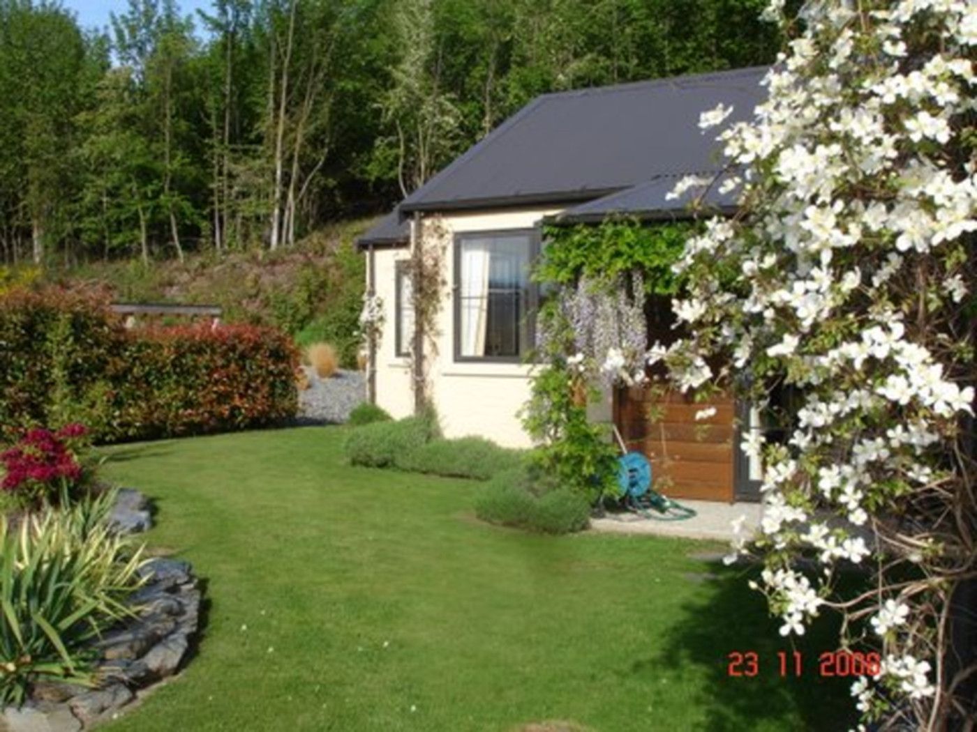 Out doors is sheltered and is bordered by reserve for extra privacy.