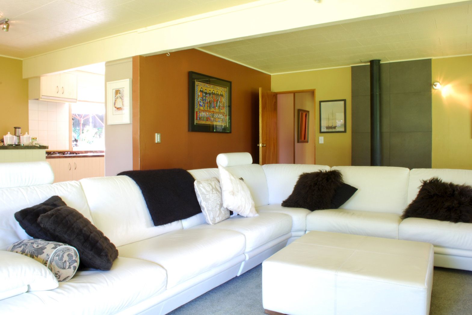 The double storey home contains four bedrooms with three bathrooms and a fifth bedroom and ensuite above the garage. The separate formal lounge/reading room offers stunning views with an open fire to keep you warm on those cold winter nights. The open plan lounge/dining area and kitchen offer loads of space and is heated by a heat pump and Yunca multi burner. There is a separate laundry and storage area to accommodate those country provisions.