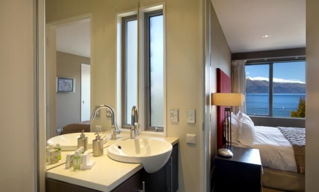 Garaging with a large owners lockup storage cupboard and equipped with a gas fire and under-floor heating, perfect for the winter months, and a large spacious balcony to enjoy the stunning views of Queenstown Bay and Gardens, Lake Wakatipu and the Remarkables.