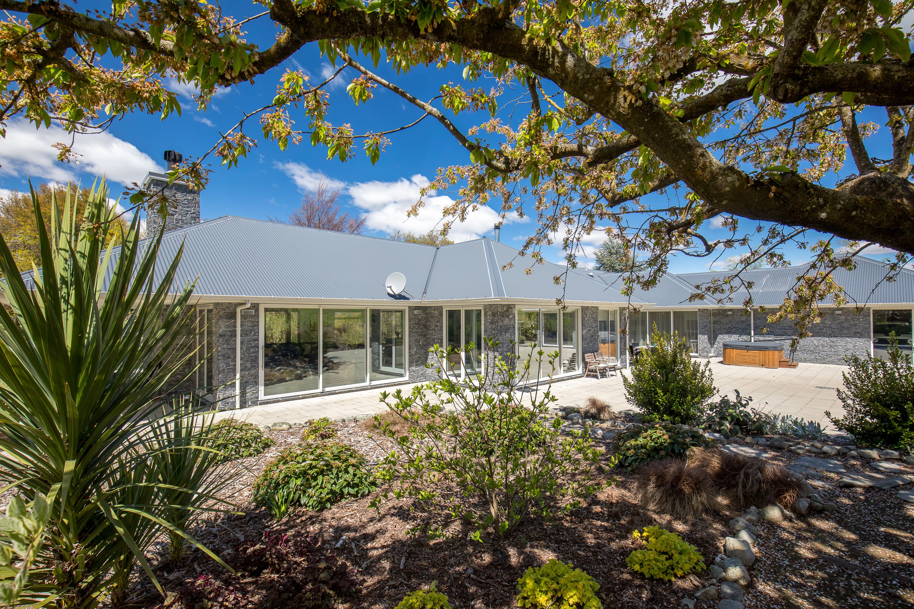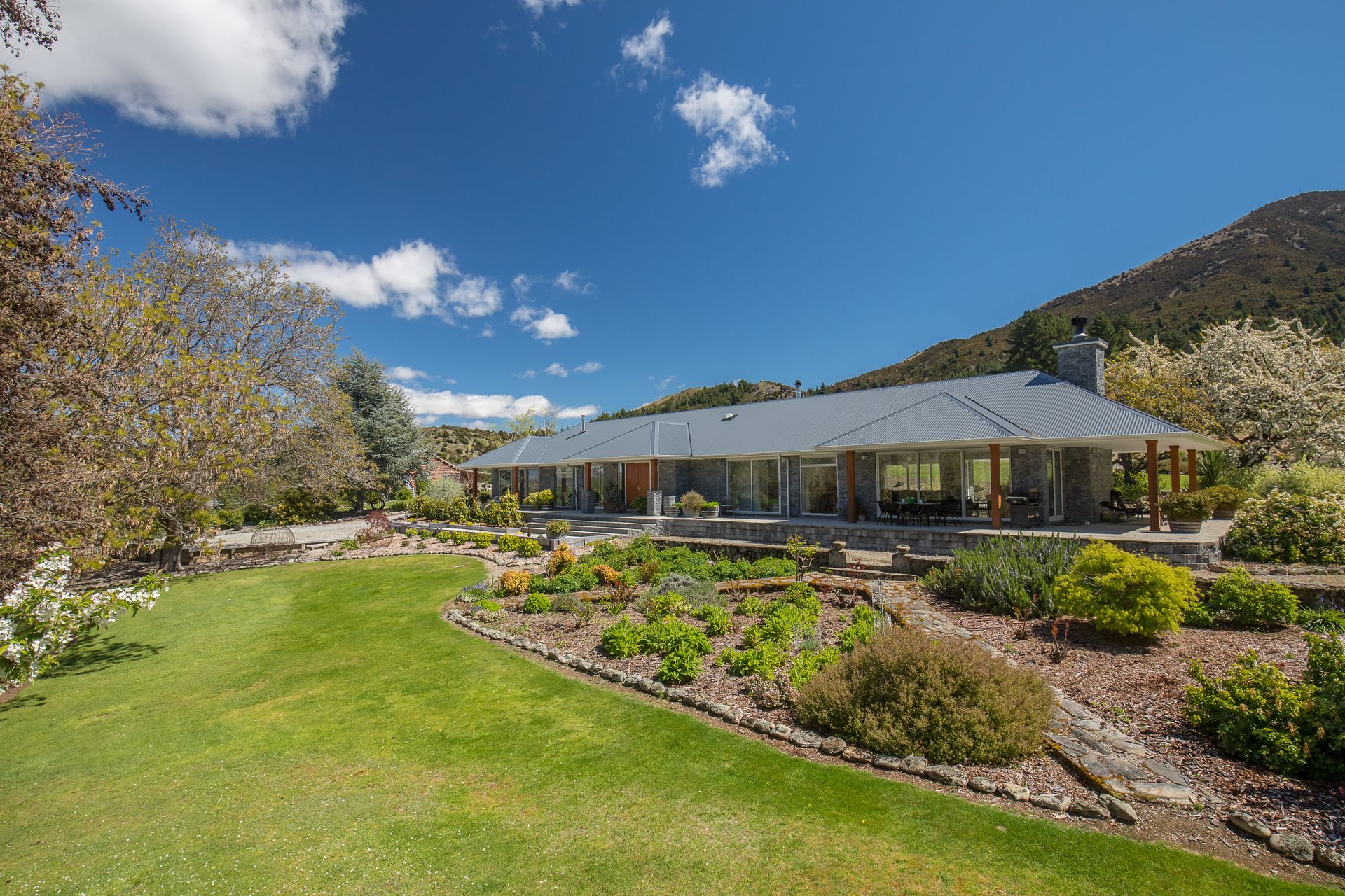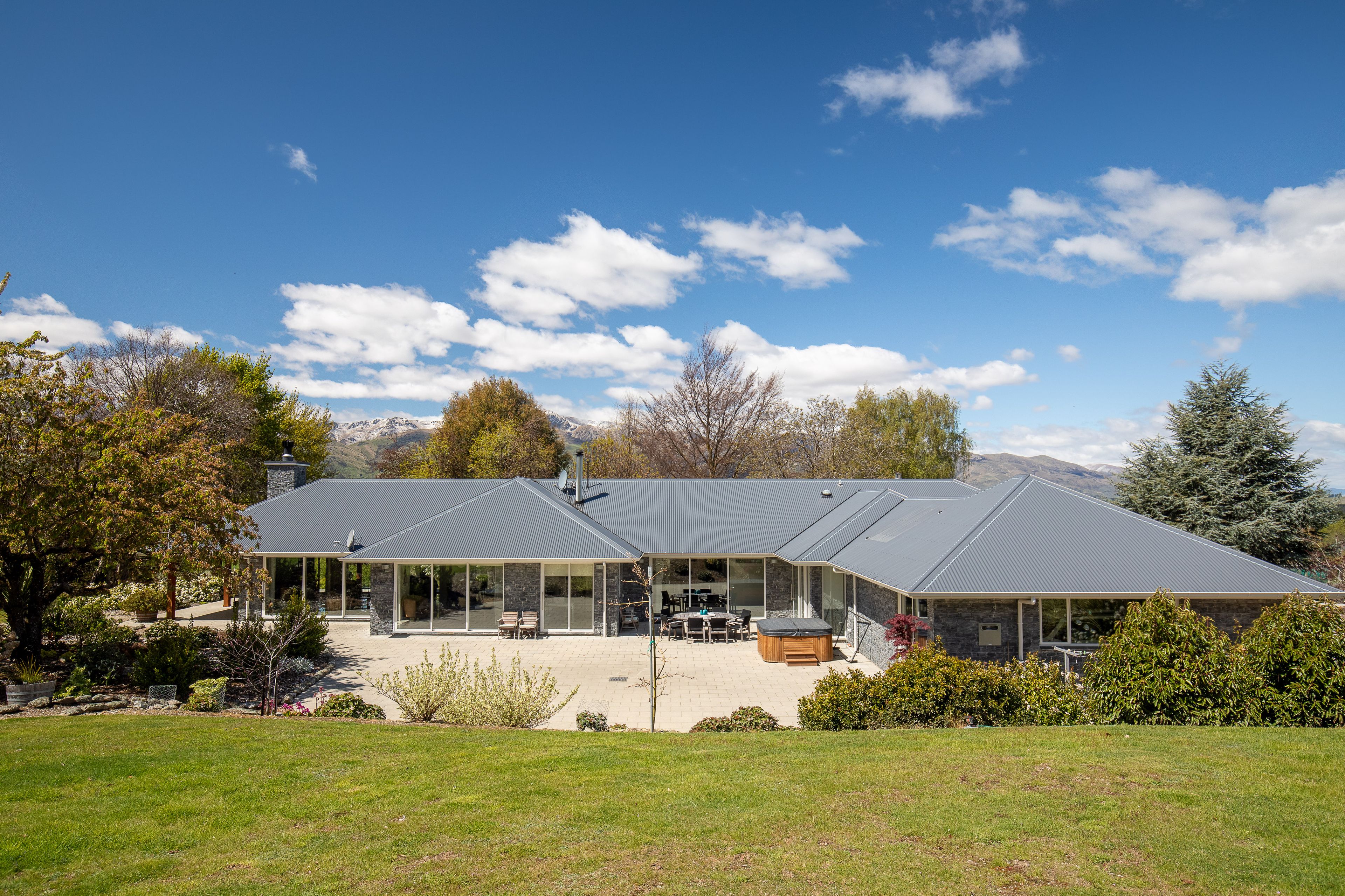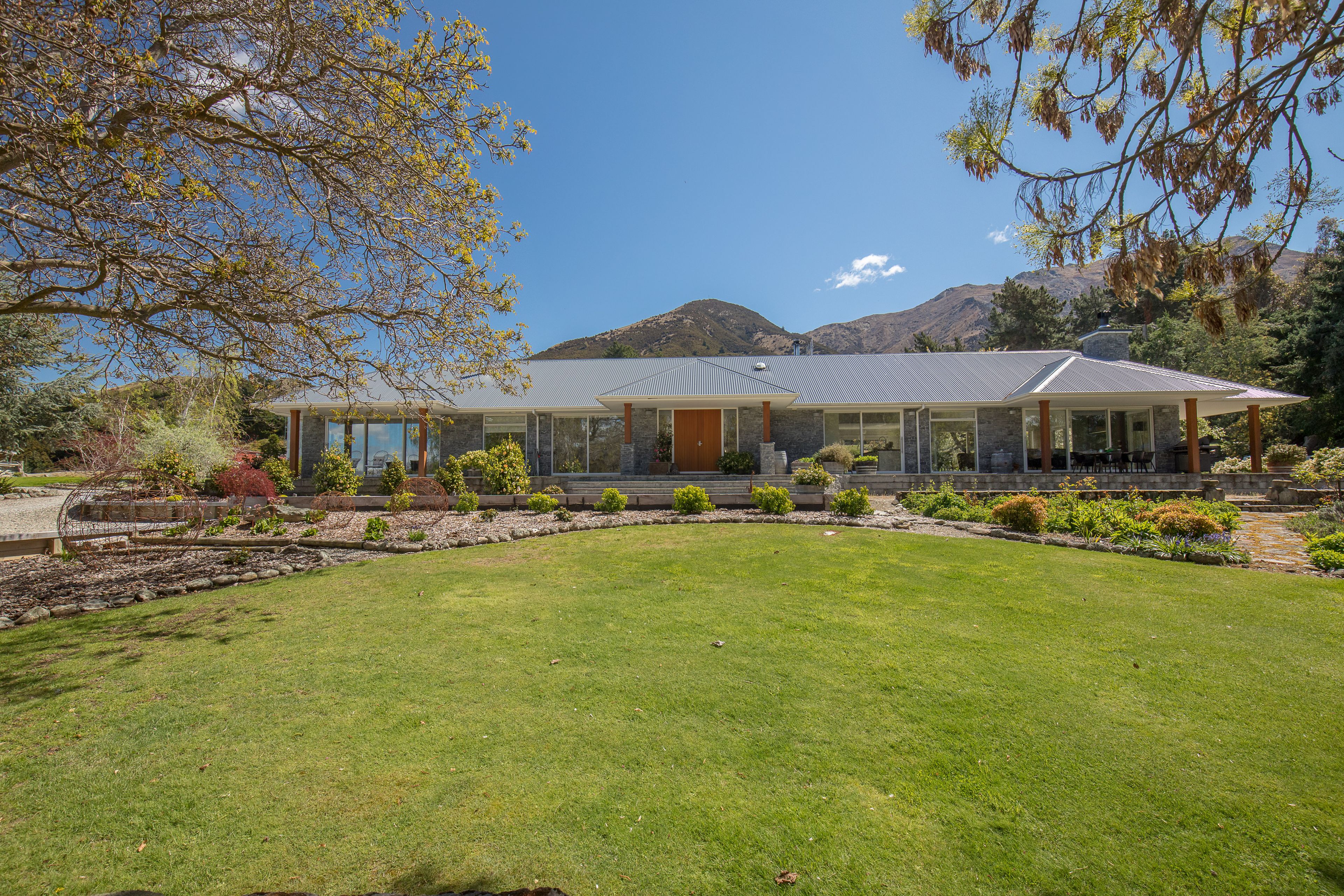 Established grounds, mature trees and approx 2.6ha of land surround this stunning sprawling 10 year old home - situated near to Lake Hawea. Enter into the tiled entrance way that flows into the spacious open plan living areas with floor to ceiling windows that open to outdoor patios and the gorgeous gardens and a rural and mountainous backdrop.