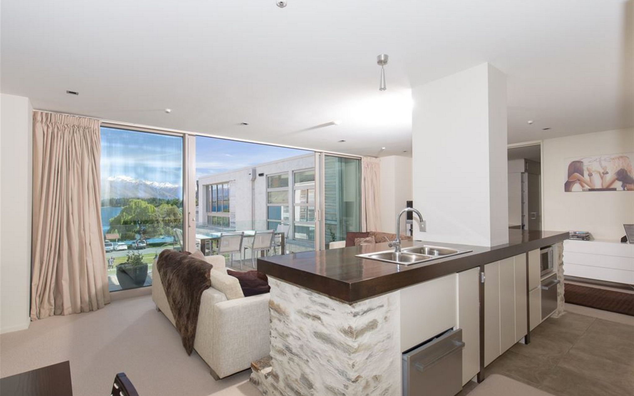 A picture perfect view of the lake greets you as you enter this luxurious lakefront apartment with a modest Capital Value of $750 000.