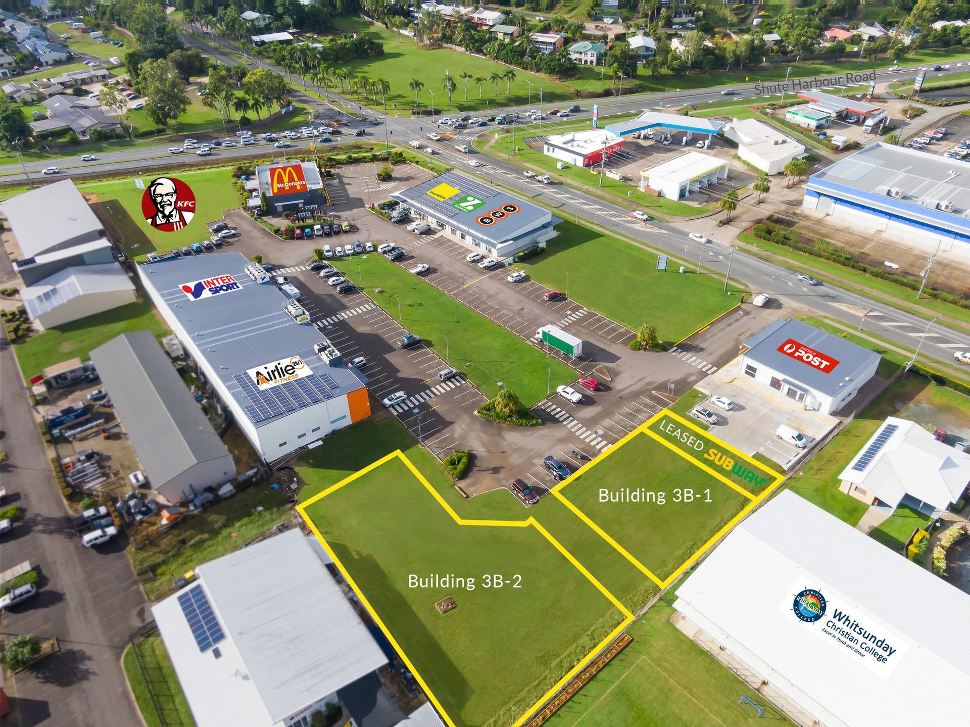 * Position your business alongside Subway (under construction), McDonald's, KFC, Australia Post, BWS, Zambrero, Ray White, Intersport, Airlie Fitness & much more