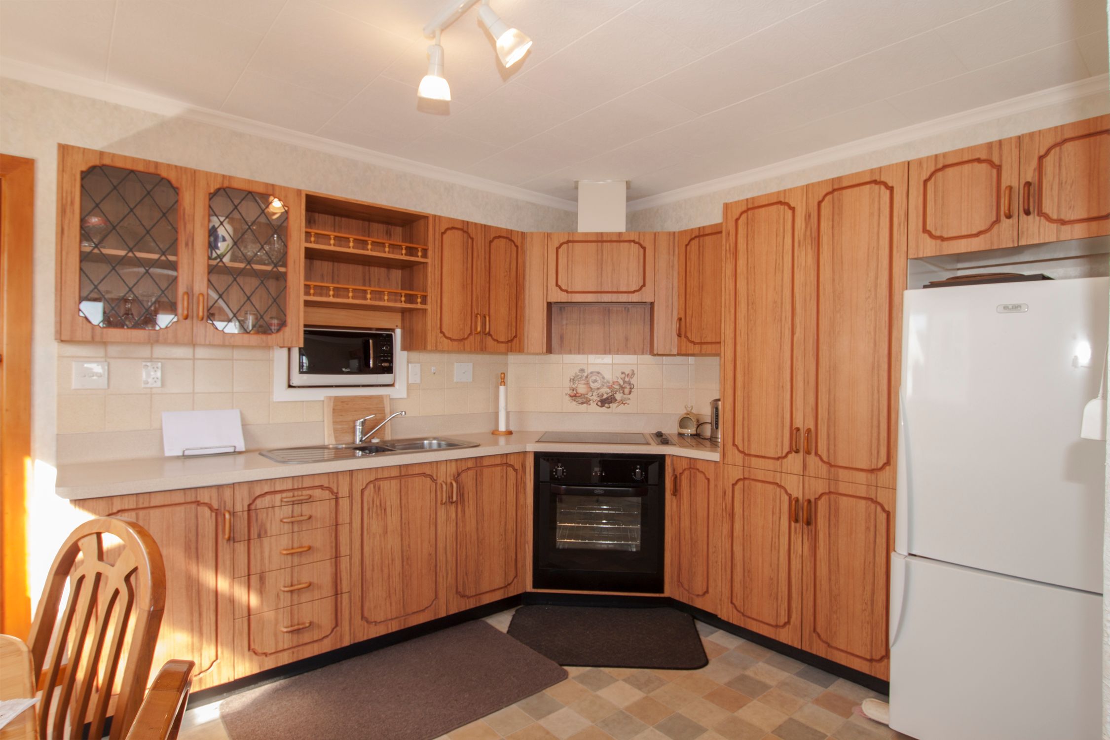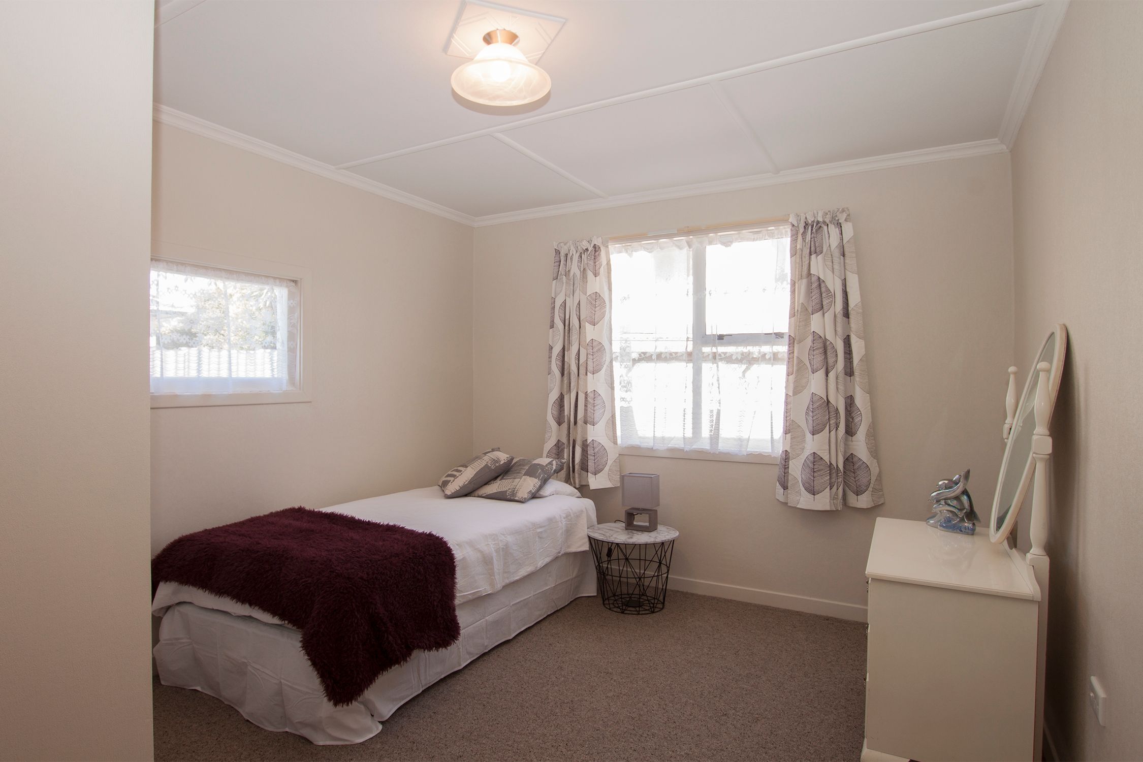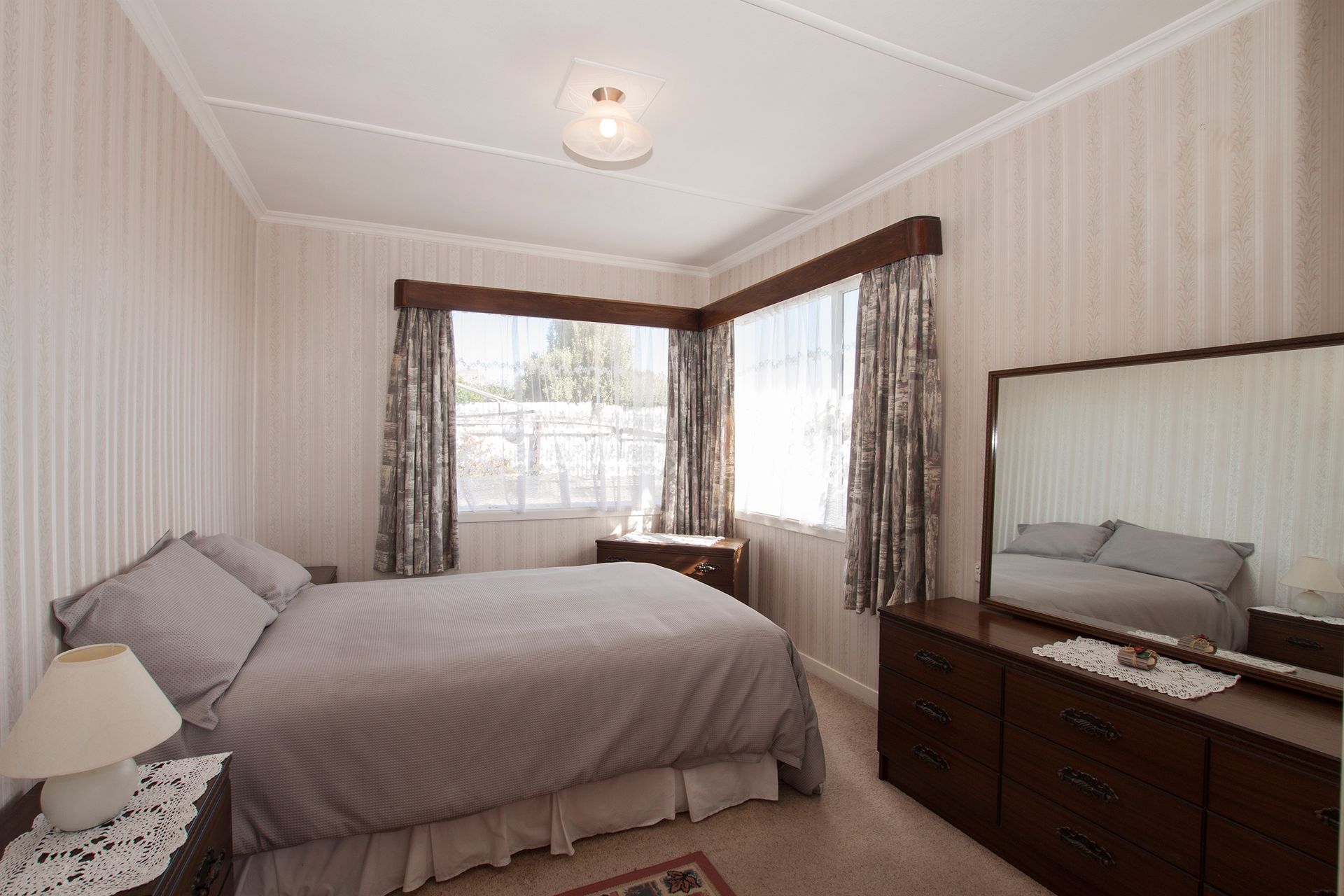 The three bedrooms are a good size all with wardrobes, the drapes and wallpaper are in great condition and they have new carpet. The lounge is a good size and faces North out over the harbour and the views are great, there is a heat pump and burner and also has a ceiling fan to circulate the heat.