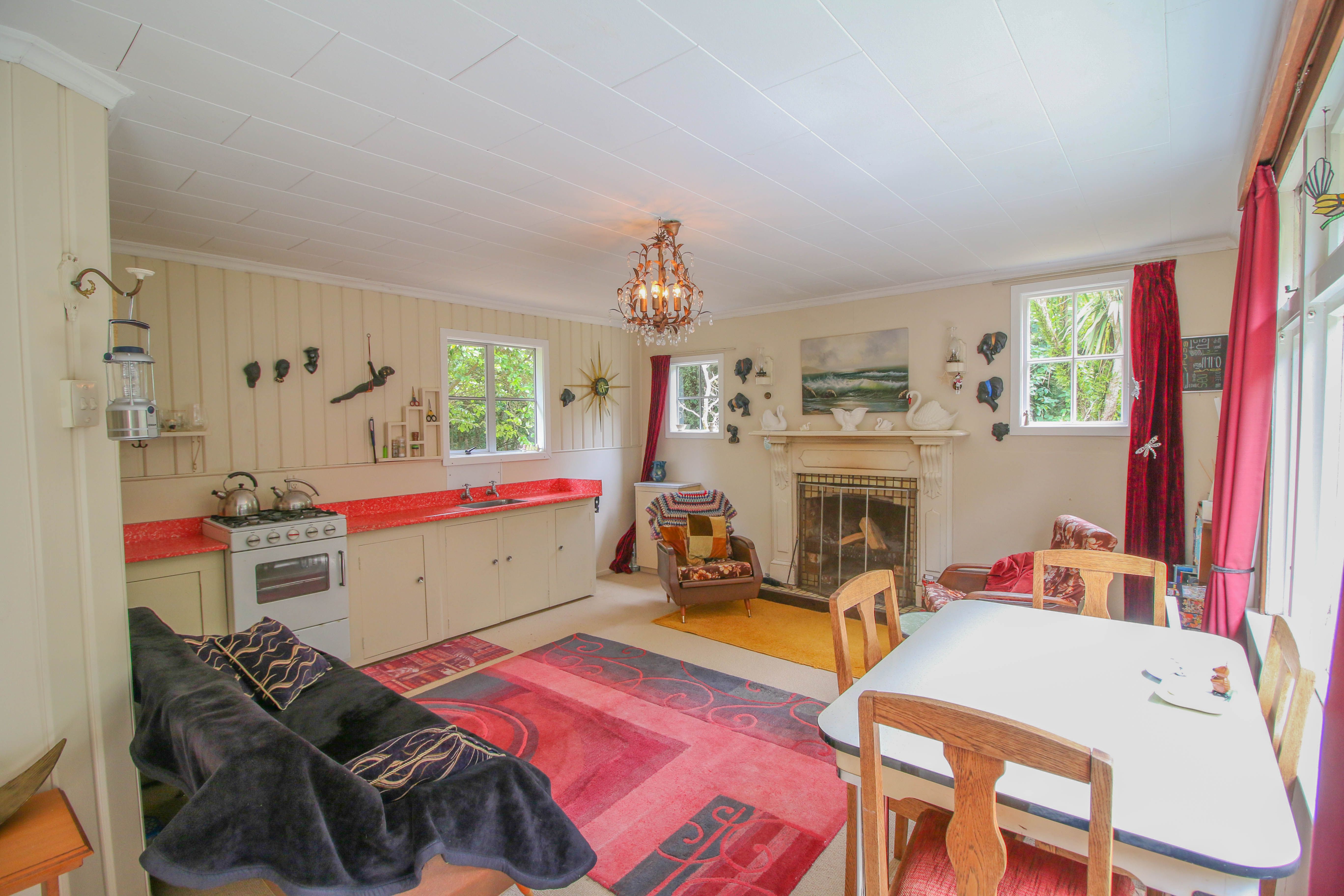 Gas cooking and hot water and a generator for power - you are really off-grid here, and there is a long drop toilet as well. The land is Invercargill City Council Leasehold so you would be unable to secure a mortgage over it.