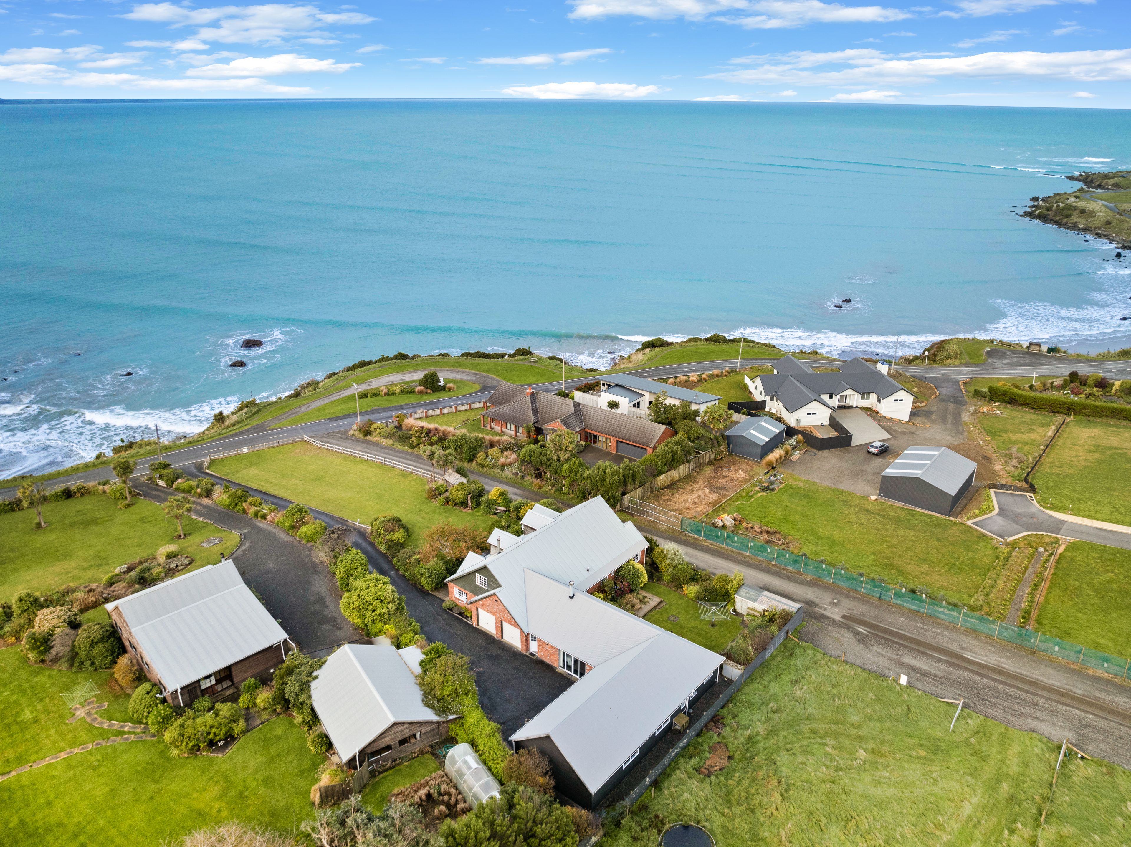 In the main home, there are five bedrooms, one downstairs and four upstairs, two toilets and a large bathroom, plus unobstructed ocean views from the bedrooms. The kitchen is a chef's dream, well-appointed with a butcher's block and open-plan design that seamlessly flows into the dining area, offering stunning views of the bay. The home boasts two spacious living areas. The formal living area exudes beach elegance, while the second large living area features a cozy woodman's burner and heat transfer system. Both open to a sunny North-facing patio area. Tucked away off the second living area, there's a cozy nook ideal for a kids' playroom or a tranquil hideaway office space.