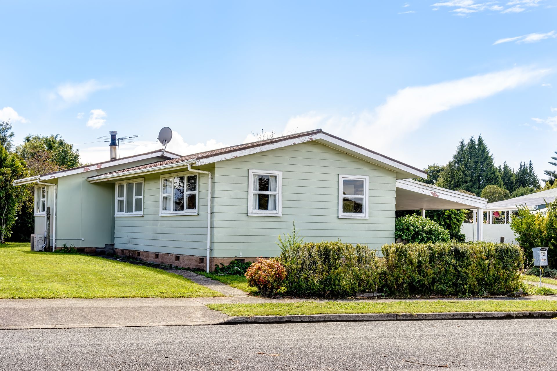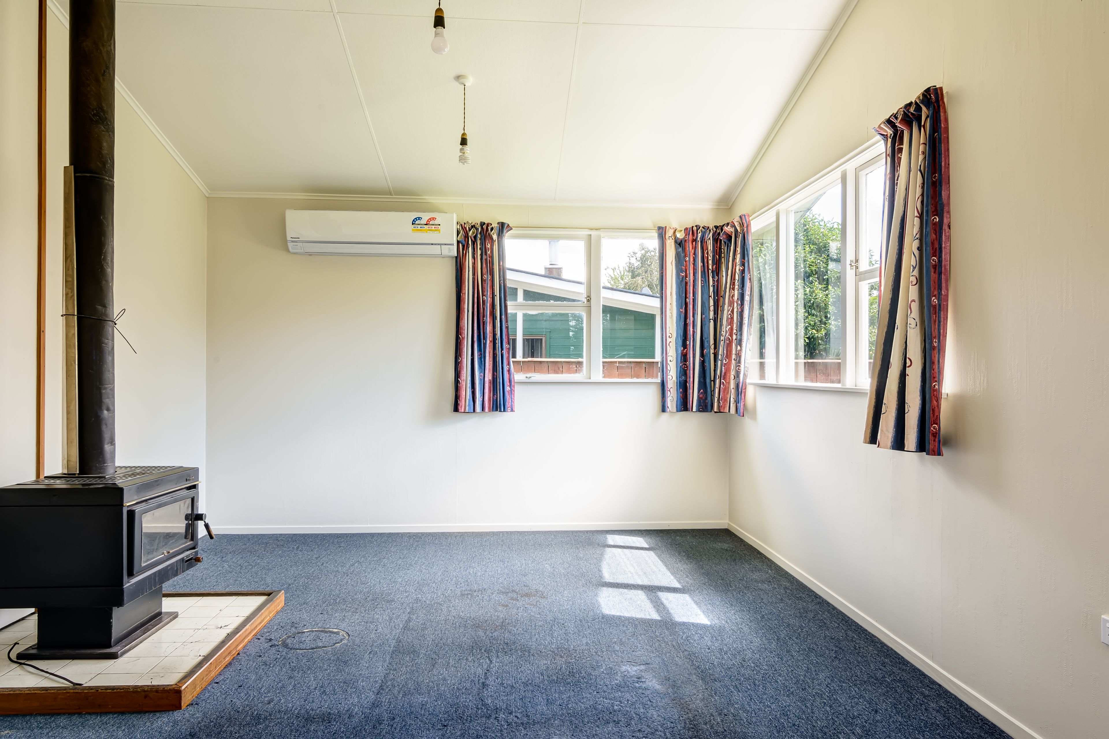 The 100m2 floor plan features 3 bedrooms, separate bath & toilet, galley kitchen, dining and lounge with log-burner plus heat-pump - move in and start living while you plan the renovations.
