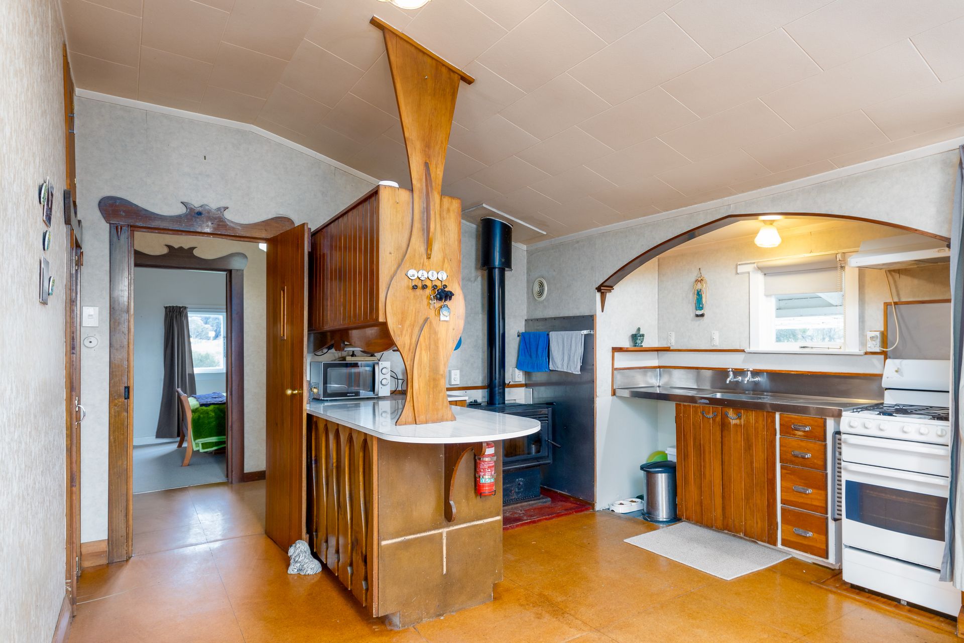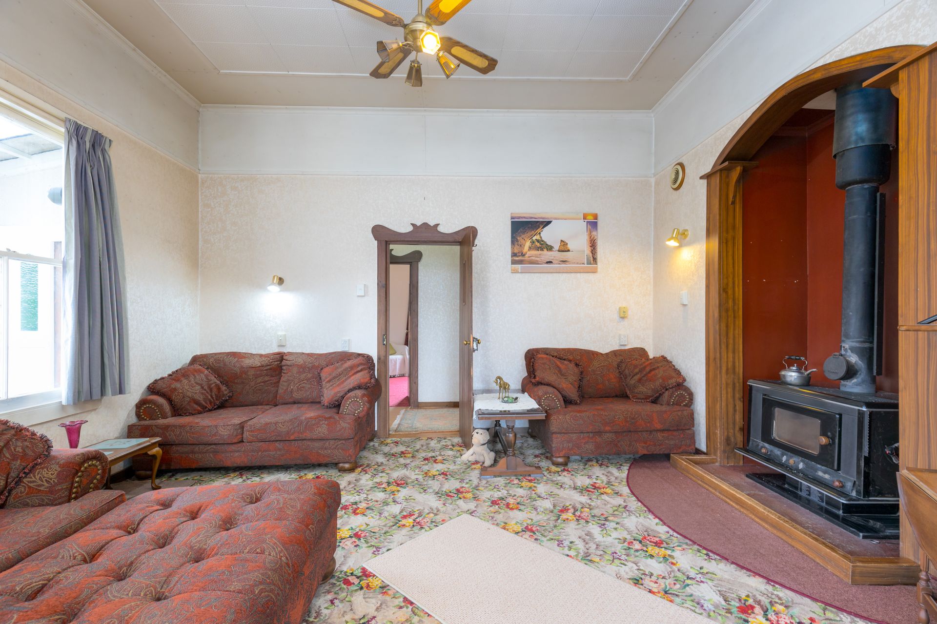 In the main home you'll have three bedrooms all coming off the hallway, a big lounge with a huge fire to keep you toasty warm on those chilly evenings, while in the morning relax in the sunroom soaking up all that morning sunshine. Kitchen is open plan with dining also having a diesel heater to accommodate you with extra heating, there is no chance of the chills in this home. One main bathroom with a modern shower.