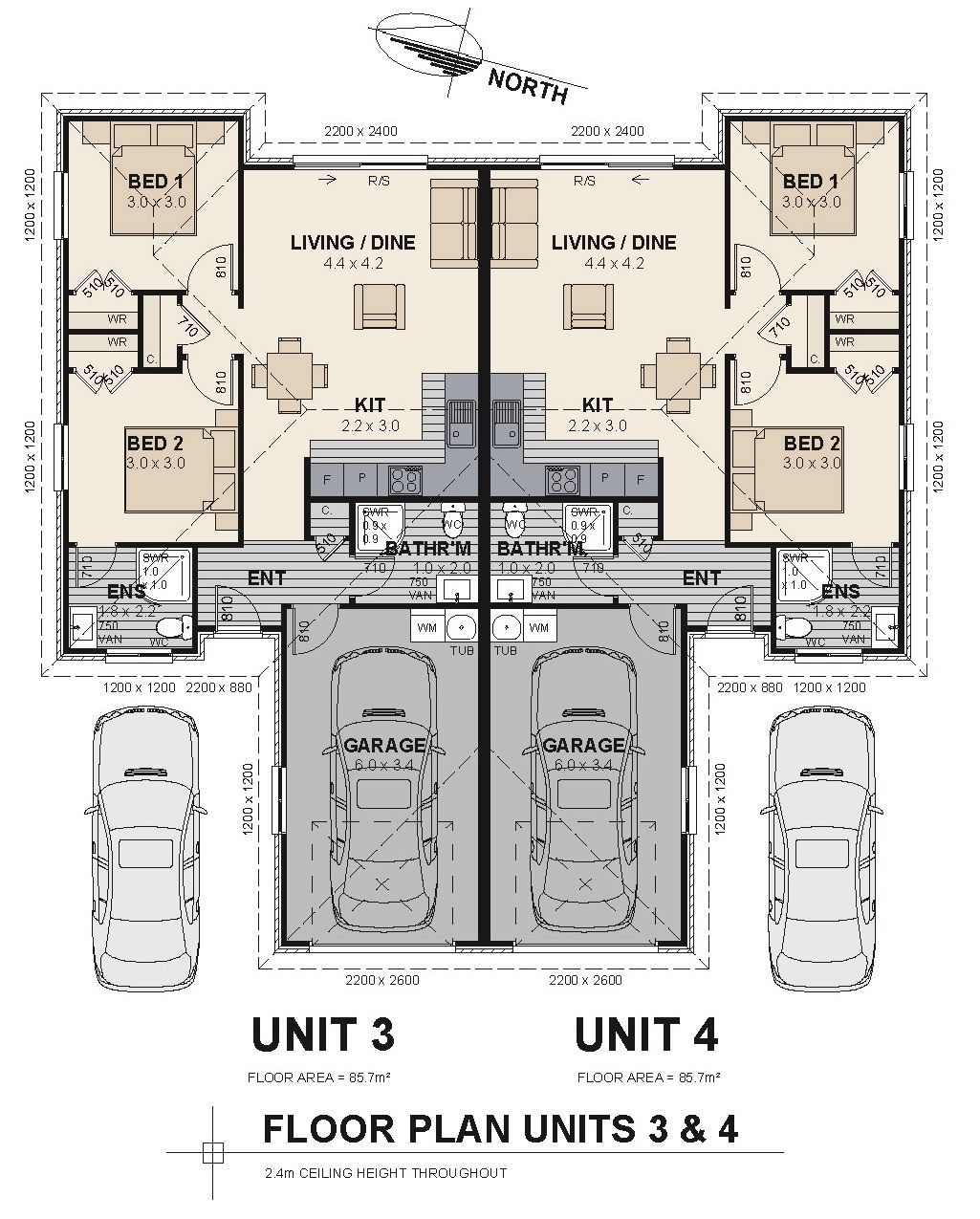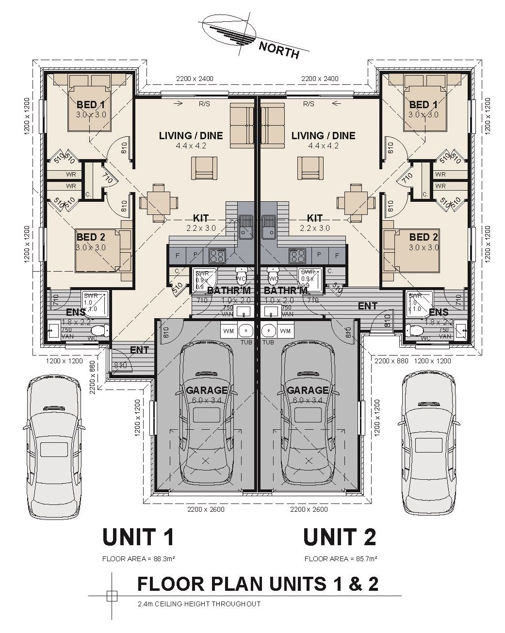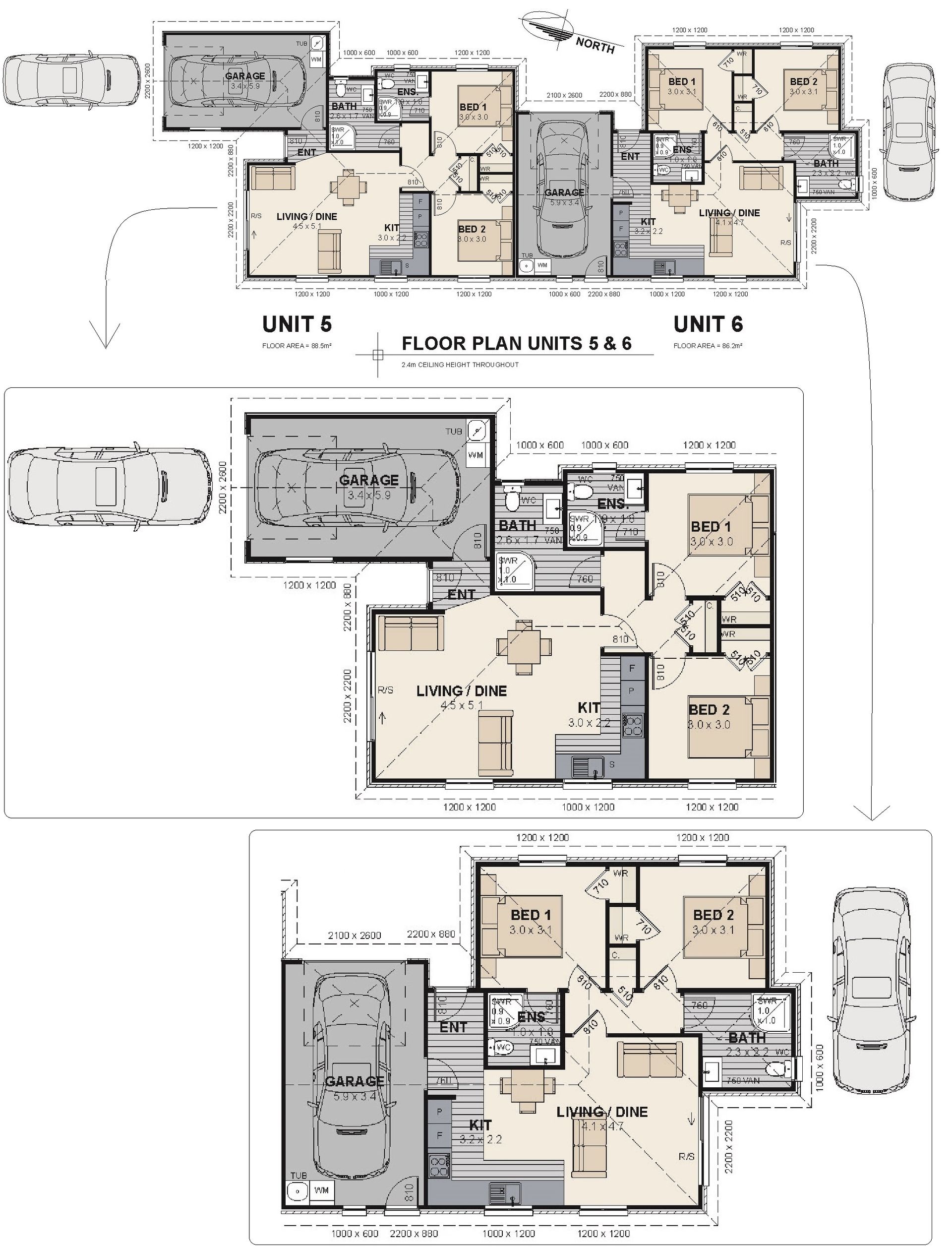 - Two bedroom two bathroom townhouses + single garage and 1 additional car park)