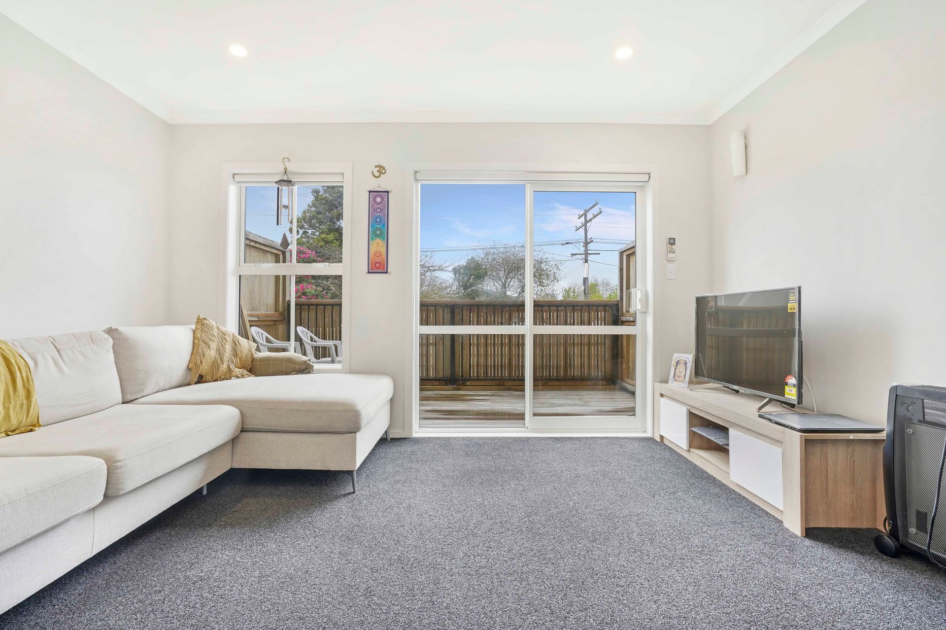 Not only this, the home comes furnished (optional) with 2 double beds, bedside tables, microwave, Fridge, Dining Table with 6 chairs, TV and TV stand, a couch which can be converted into a double bed, washing machine and a vacuum cleaner. Decking off the downstairs lounge can be used for private entertainment area or relaxing with a cup of tea in the afternoon.