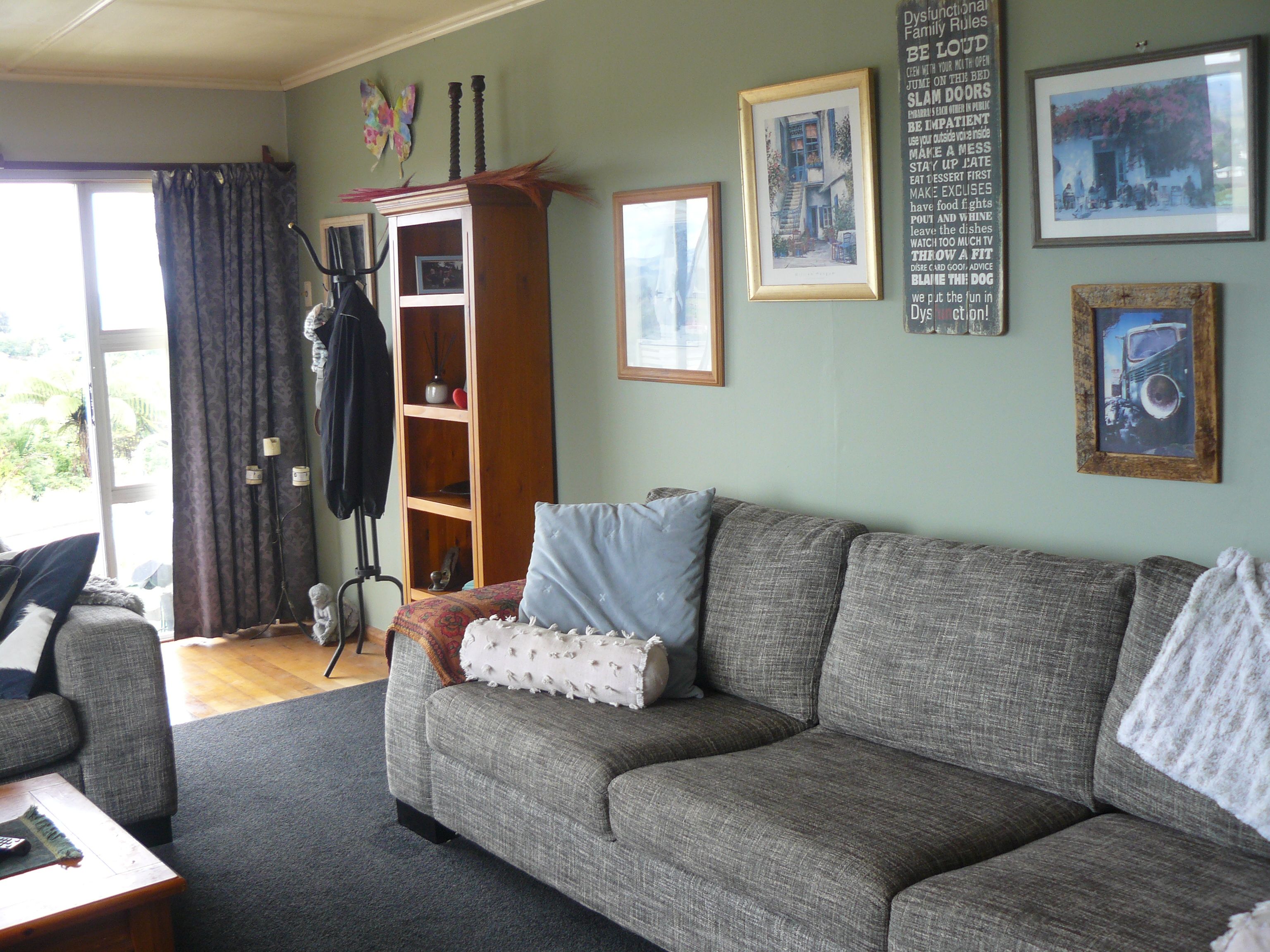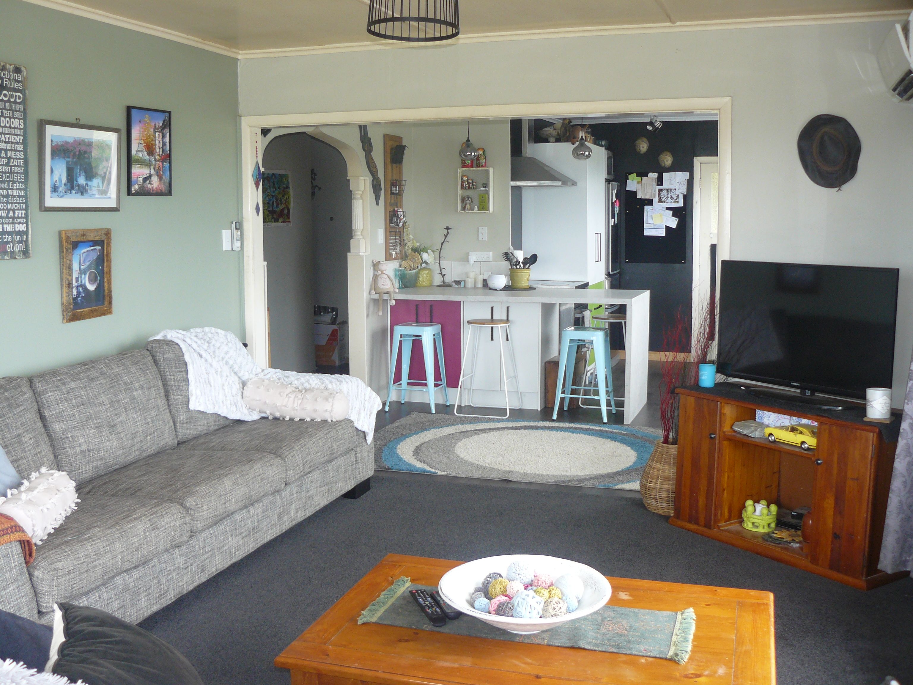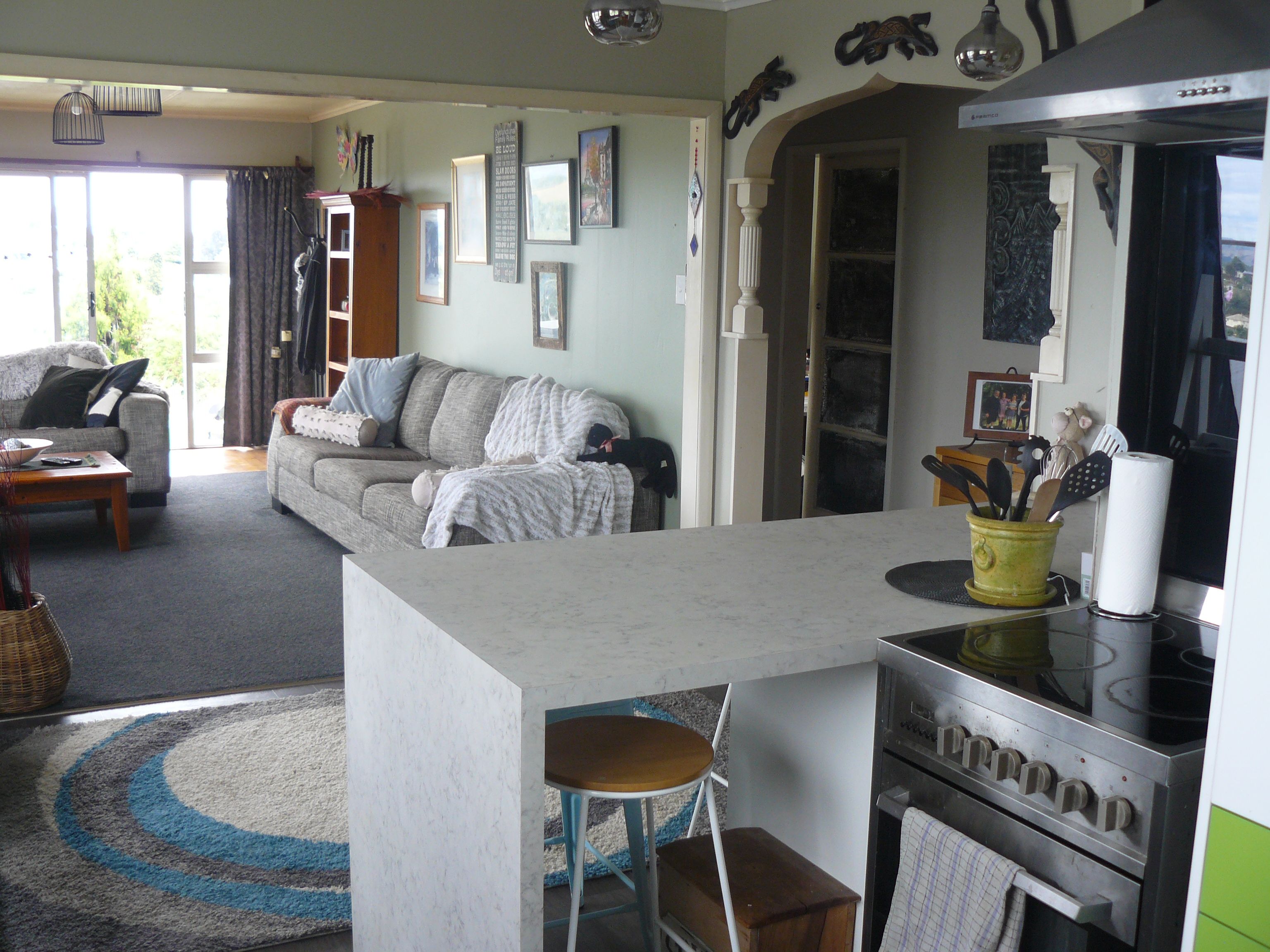 This is a three bedroom home with potential. Most renovations are completed including new floor coverings and kitchen units. Open plan living, heat pump, top and bottom insulation, and VIEWS. The garage includes a work bench and pit, with an extra room attached which has a heat pump and exterior ranch-slider.