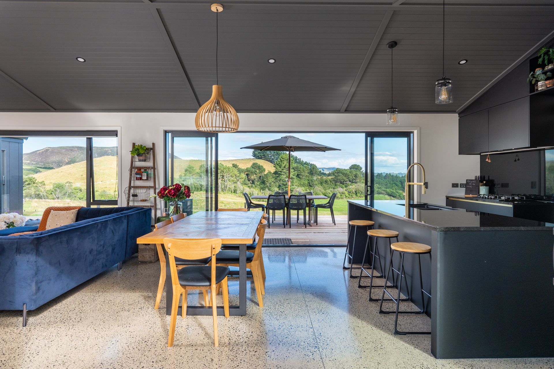 The seamless flow of open-plan living creates a warm and inviting atmosphere for both relaxation and entertainment. The kitchen, which offers a spacious scullery and stylish finishes, is a culinary haven that complements the home's contemporary design. Natural light floods the living spaces, enhancing the sense of openness and connection to the breathtaking rural vista that surrounds the property.