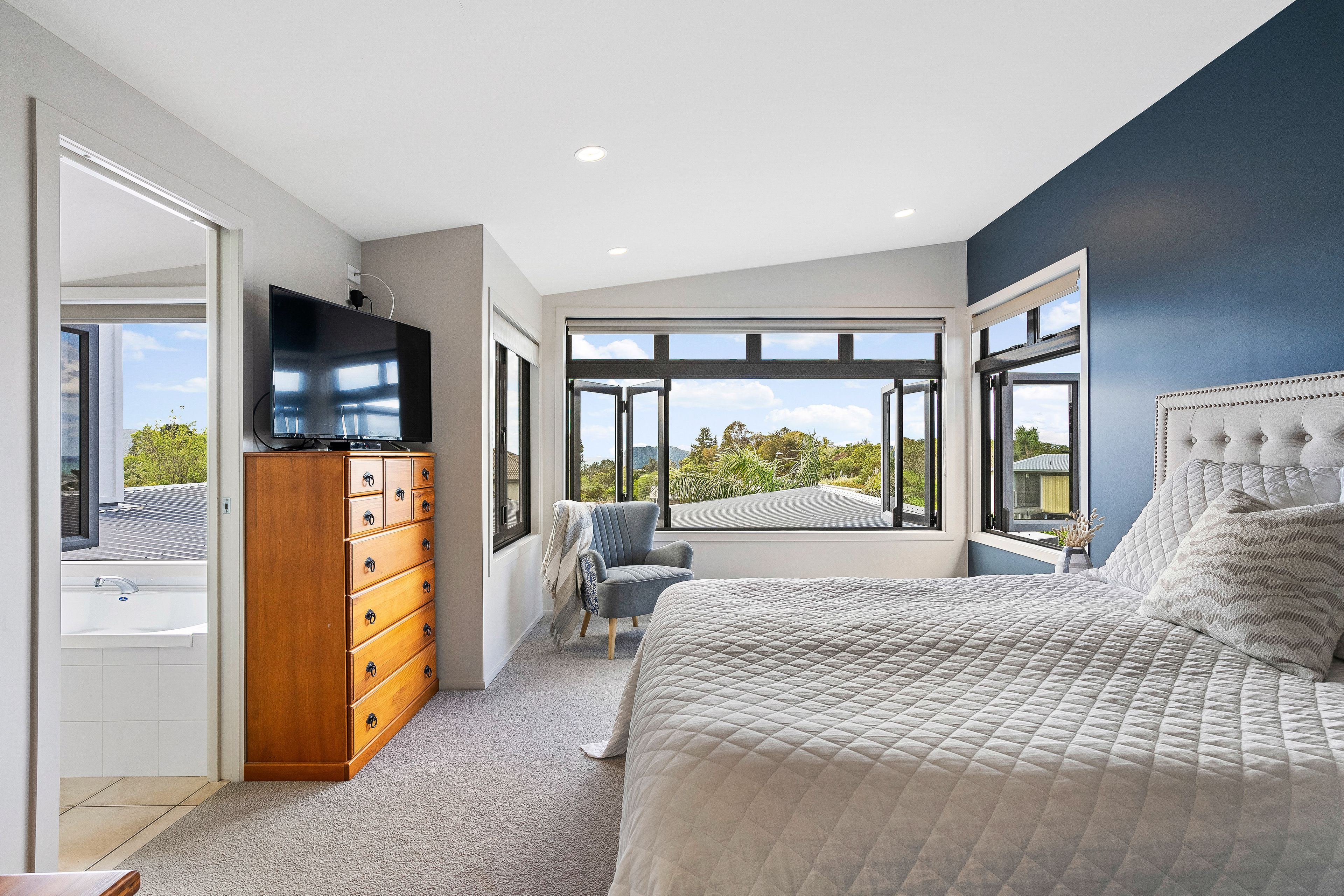 • Exquisite Master bedroom, including a luxurious ensuite - Sea views, spa bath and walk in wardrobe.