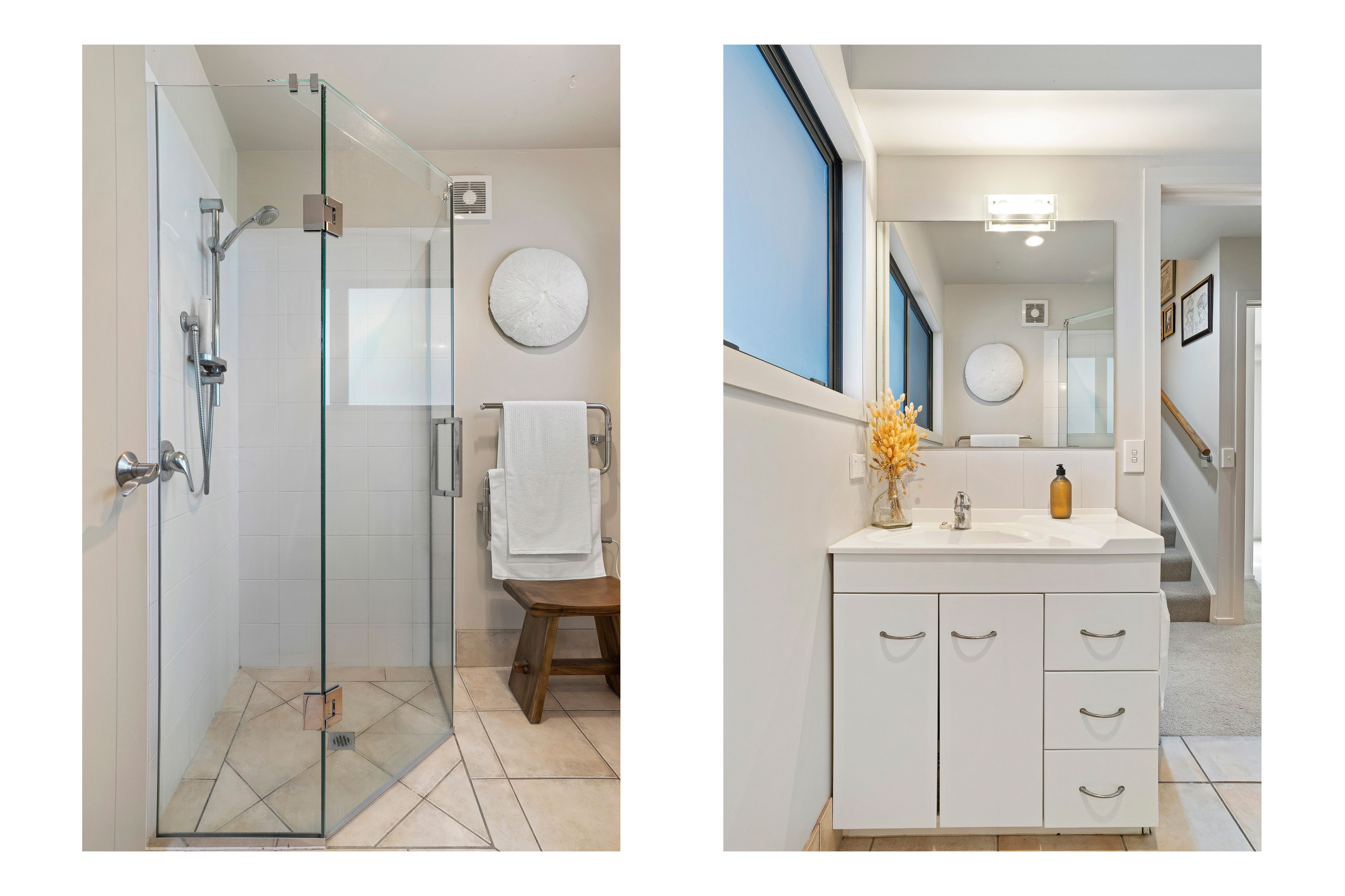 • well-appointed bathroom downstairs, featuring separate toilet for added convenience.