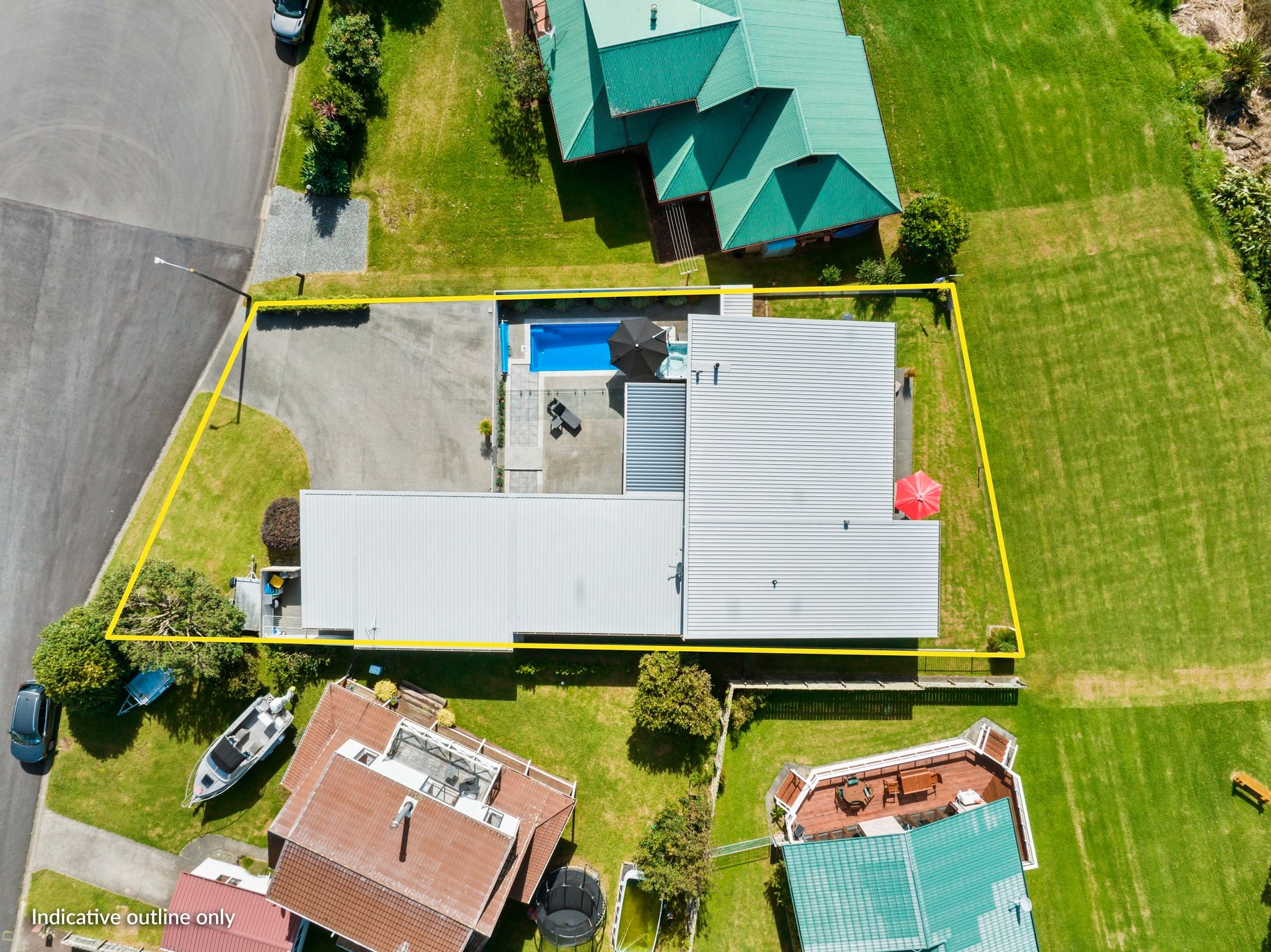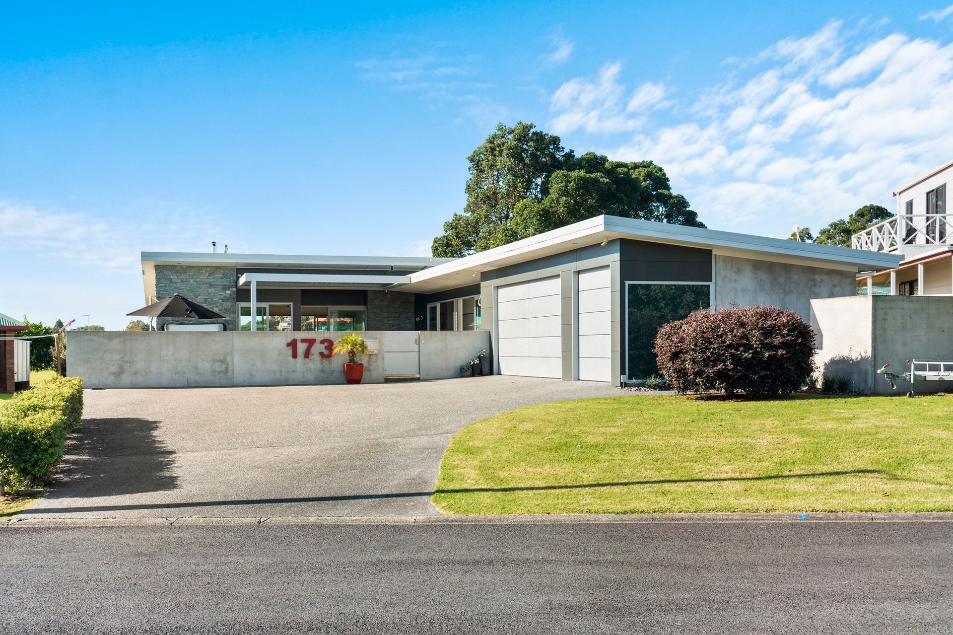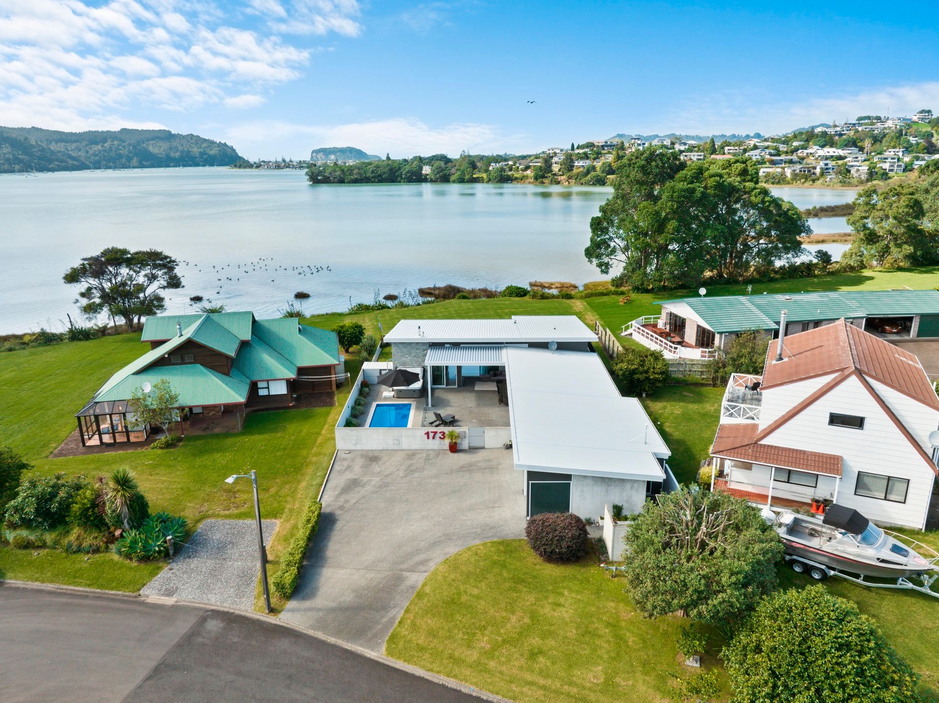 Soak in the unobstructed views of the Whangamata harbour from the comfort of this modern waterfront home. Located in a prime position on the reserve, the resort style courtyard is enclosed, private from passers-by for relaxation and entertaining. Featuring a heated in ground pool, spa pool, water feature and louvres for shade, the property is designed for all year round comfort and seamless indoor outdoor living. Glass sliders throughout flood the home with natural light for maximum views, fully fenced for security and landscaped for minimal maintenance.