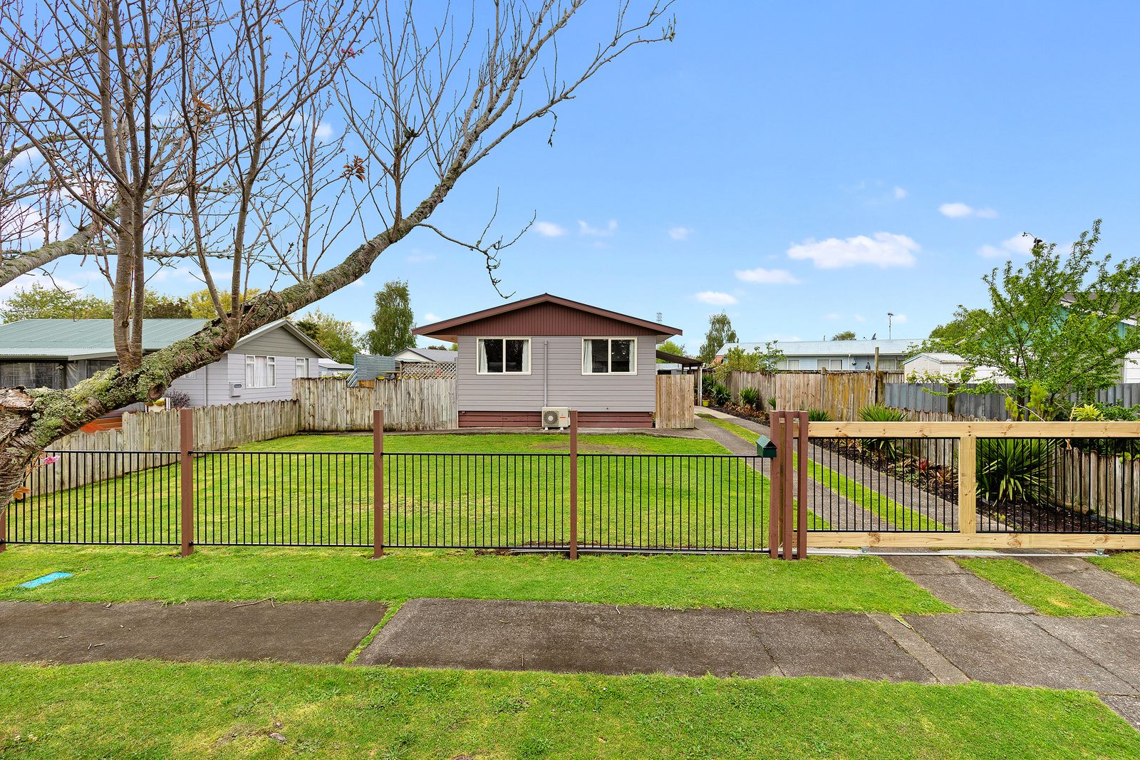 Brand new appliances have been installed throughout. These include an electric cooktop, large electric oven, rangehood, dishwasher, waste disposal unit, heat pump in the lounge and extractor fan in the bathroom.