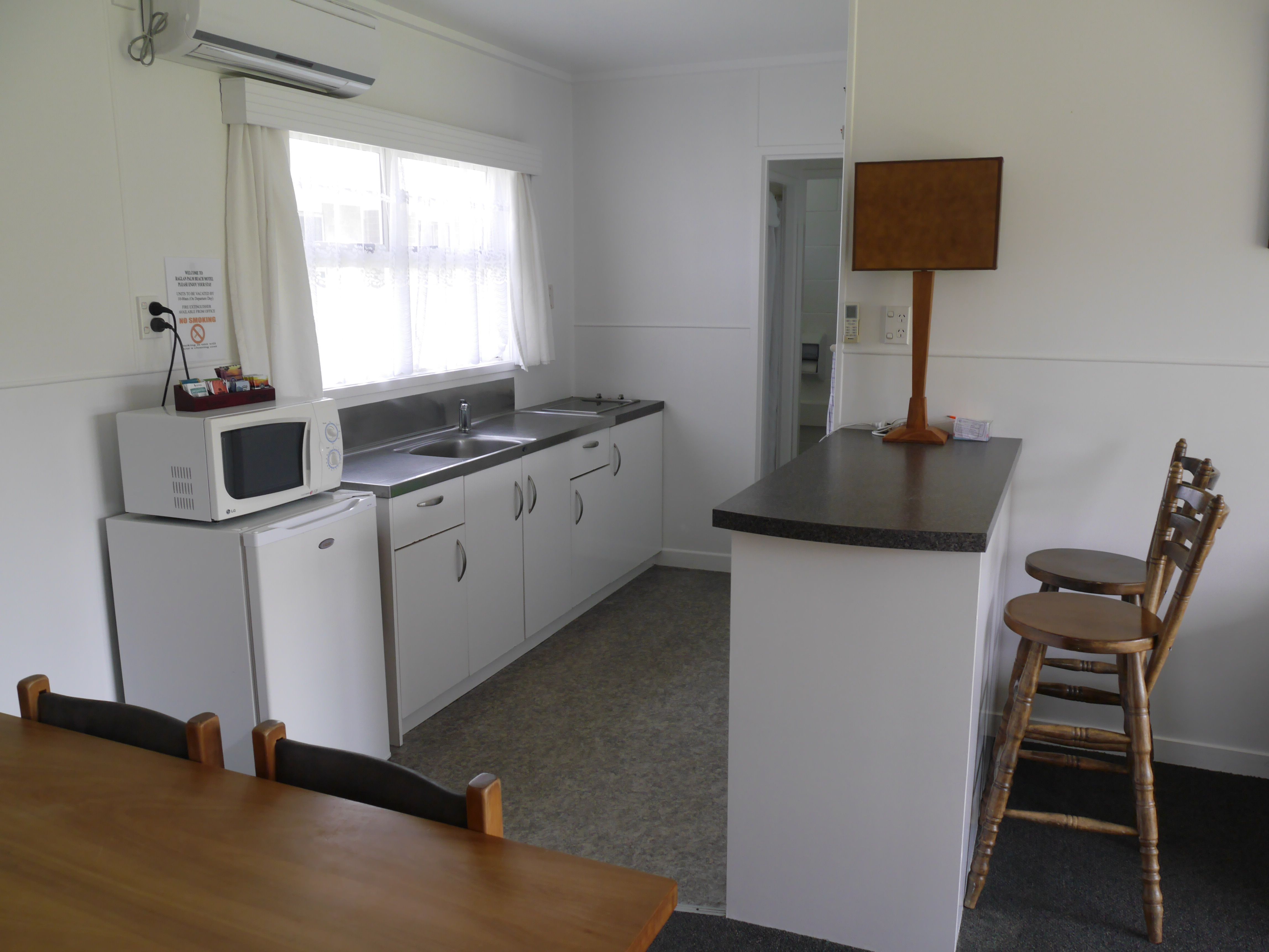The Raglan Palm Beach Motel is a retro batch styled accommodation facility, consisting of 8 self-contained 1 and 2 bedroom apartment-style units.