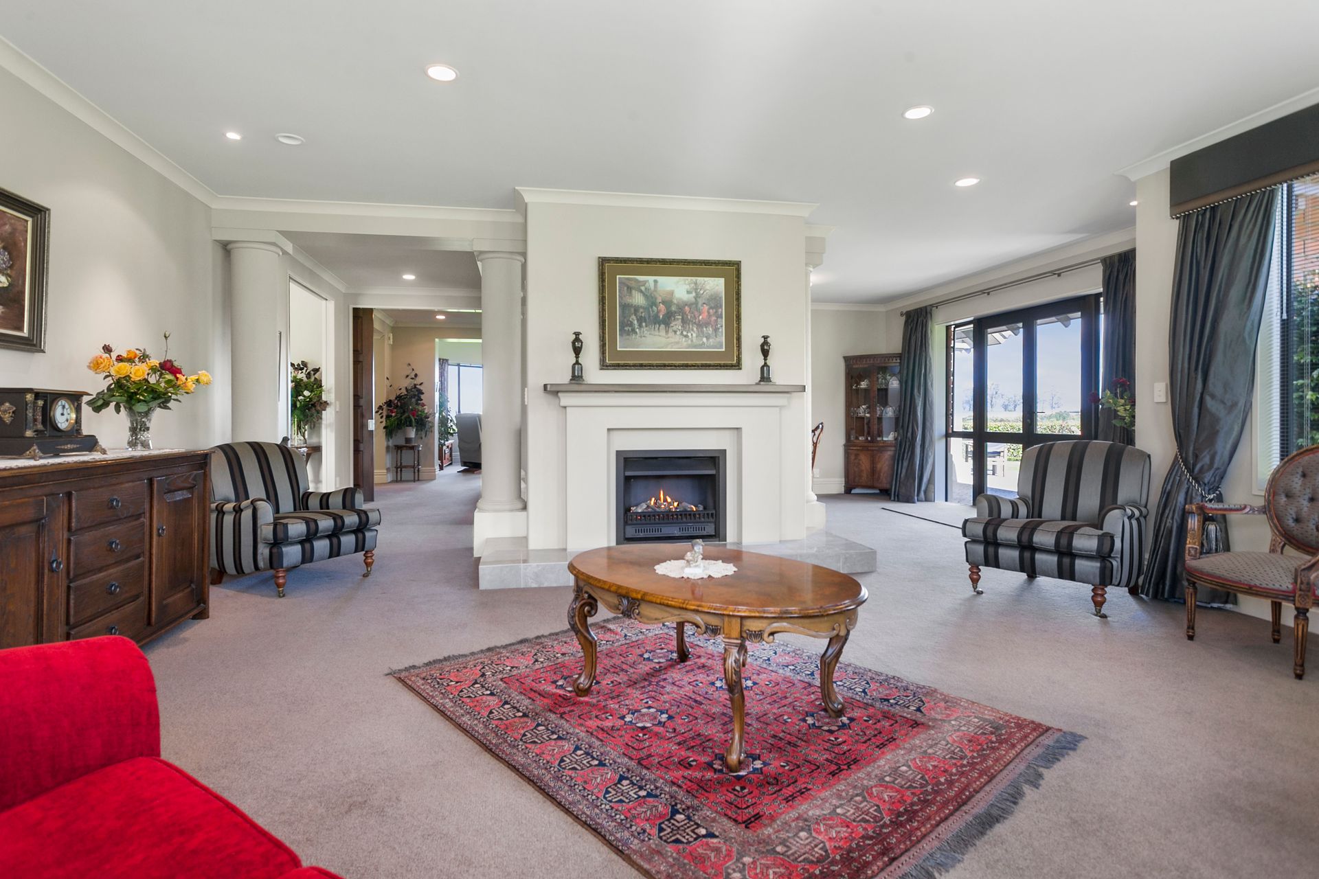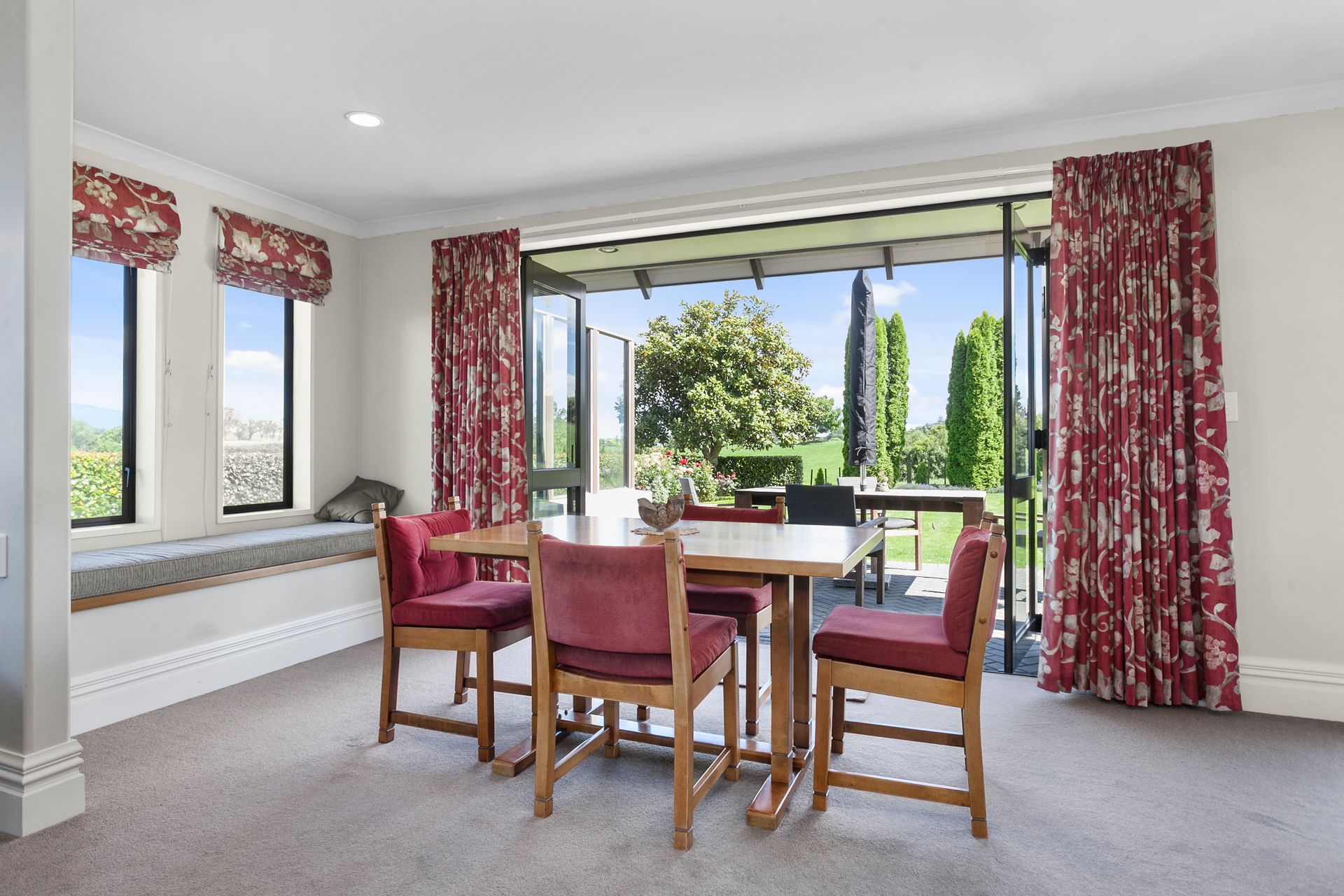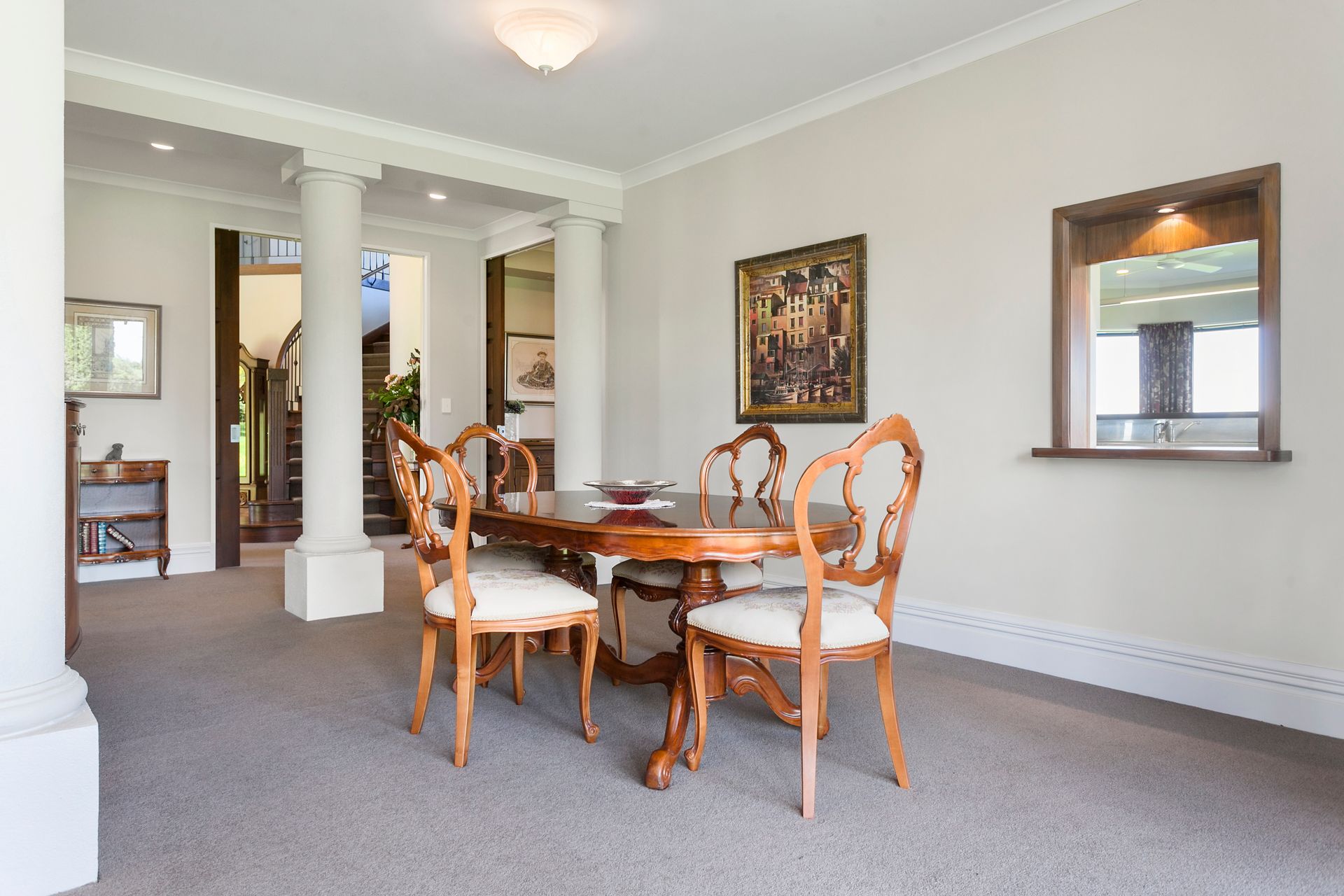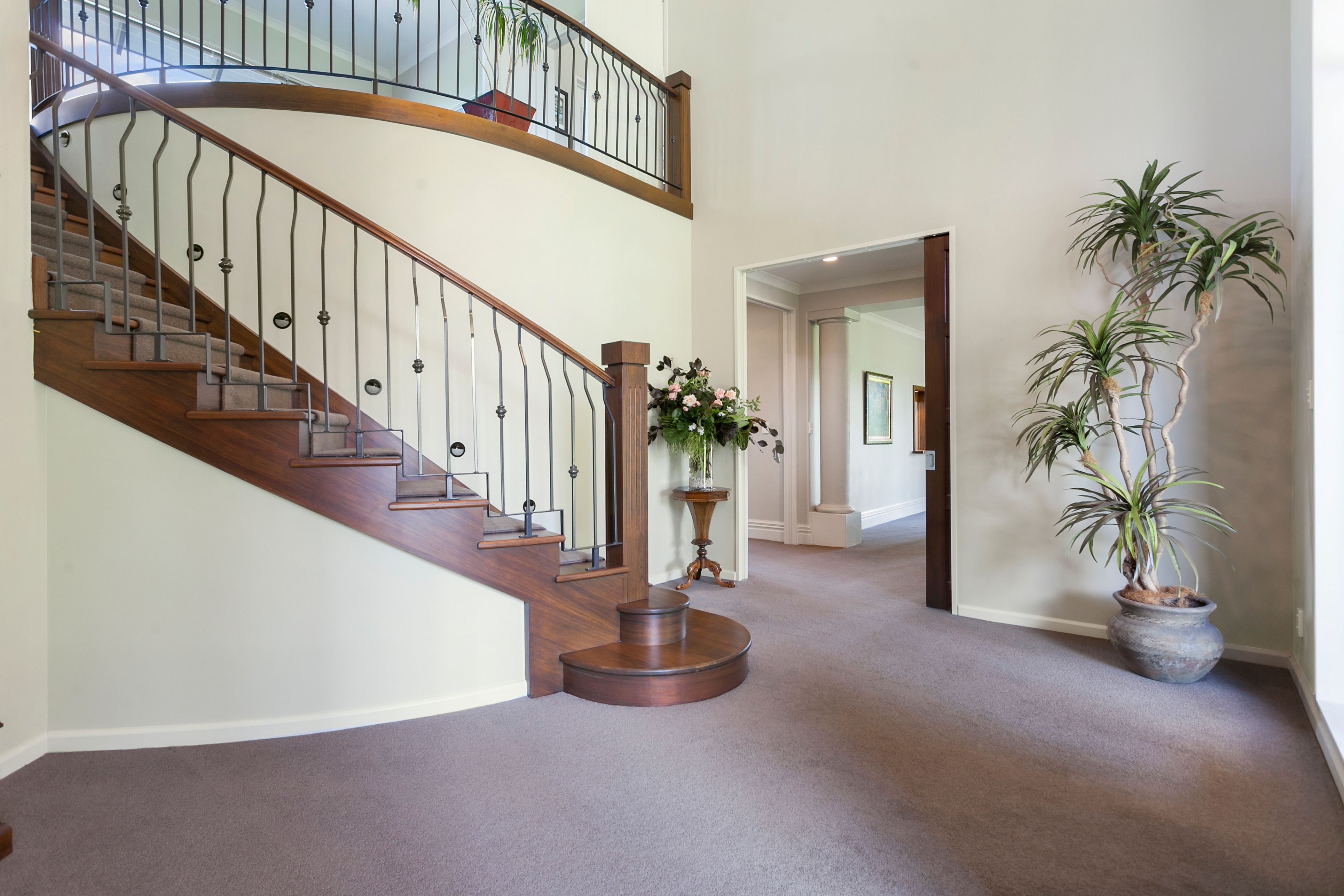 This magnificent architecturally designed property makes an impact on arrival. Drive through park like grounds with well planned, established gardens that lead you to a home like no other. From the grand covered entry with curved ceiling above and the beautiful wooden staircase this home has presence, however, maintains a welcoming and comfortable feel. Live and entertain effortlessly with formal lounge and dining separate to the family room and rumpus all with outdoor living spaces. The property flows easily from formal lounge with gas open fire place for ambience and formal dining. Windows throughout the property frame the surrounding picturesque rural views and gardens providing a fresh perspective room to room.