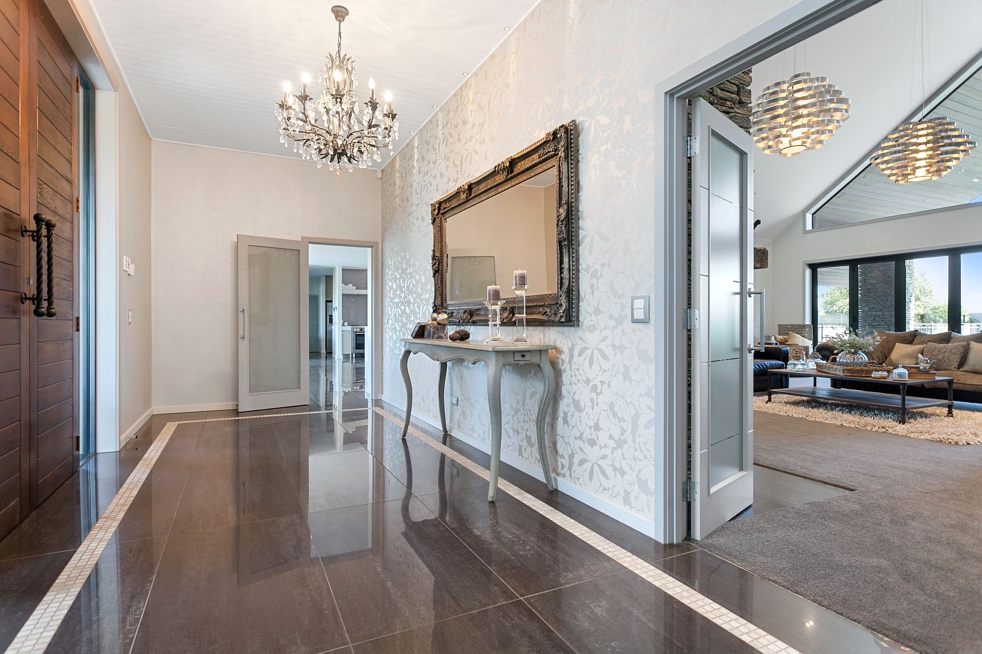 The sound system is hardwired throughout the home, as is the data and TV connections. With a heat pump in almost every bedroom and underfloor heating throughout the downstairs area plus double glazing, this home is a comfortable temperature all year round.