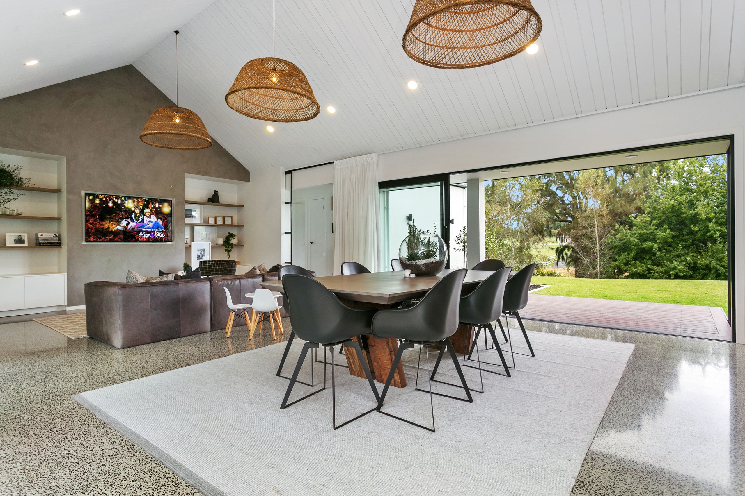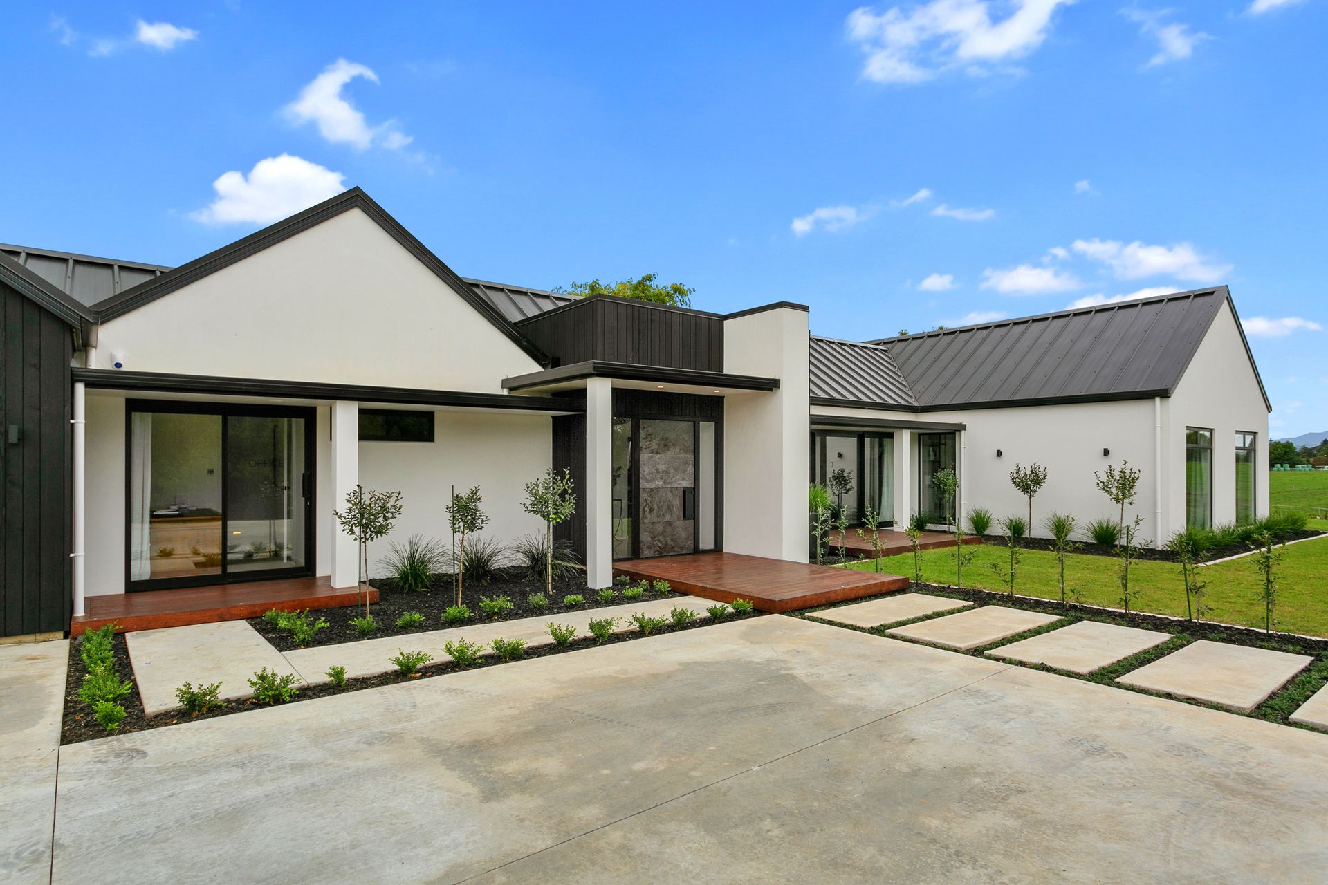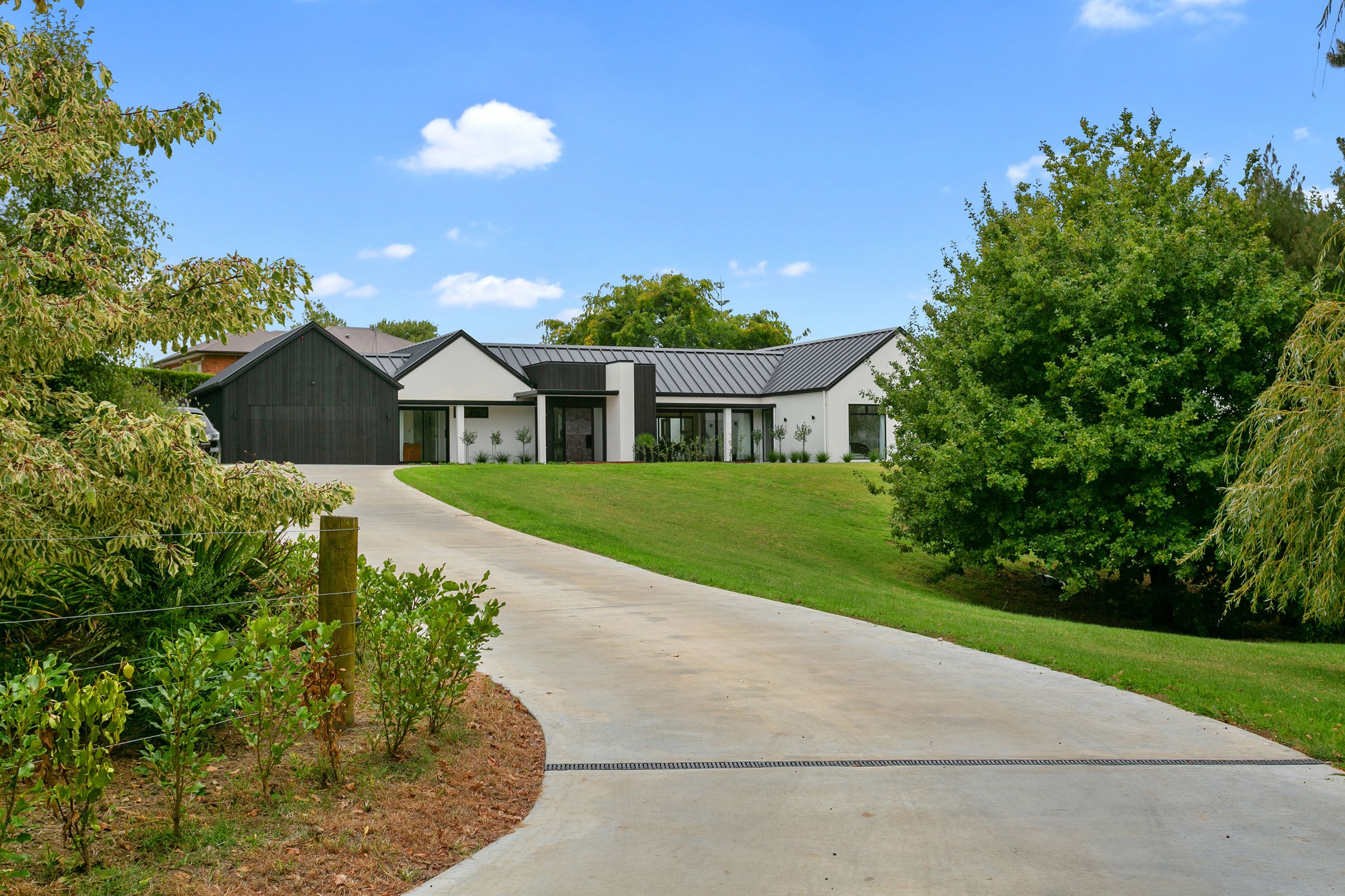 Very recently built exceptional lifestyle property. Luxuriously welcoming with attention to detail in all aspects. From the elevated position on its 7548sqm section, overlooking the well established pond to the thoughtful future planning. The day to day is made effortless through the design, with large open plan living and executive design kitchen, dining space and family living room. Also with scullery that has great access for practical use. This home opens wide to the sunny outdoors, the inside seamless to the exterior living, wonderful for the family and entertaining. Spacious lounge room which can be part of the open plan living or closed off with an open gas fire for cosy evenings in. Four bedrooms and office all with their own picturesque views. The master at one end of the home with large walk in robe room and generous tiled ensuite with double shower and freestanding bath. Excellent separate laundry, brilliant storage, completed by large double garage with third garage also internal access at rear. Even a mud room. Fitted with state of the art heating and technology. This is a home that exudes modern chic and will be forever on your mind.